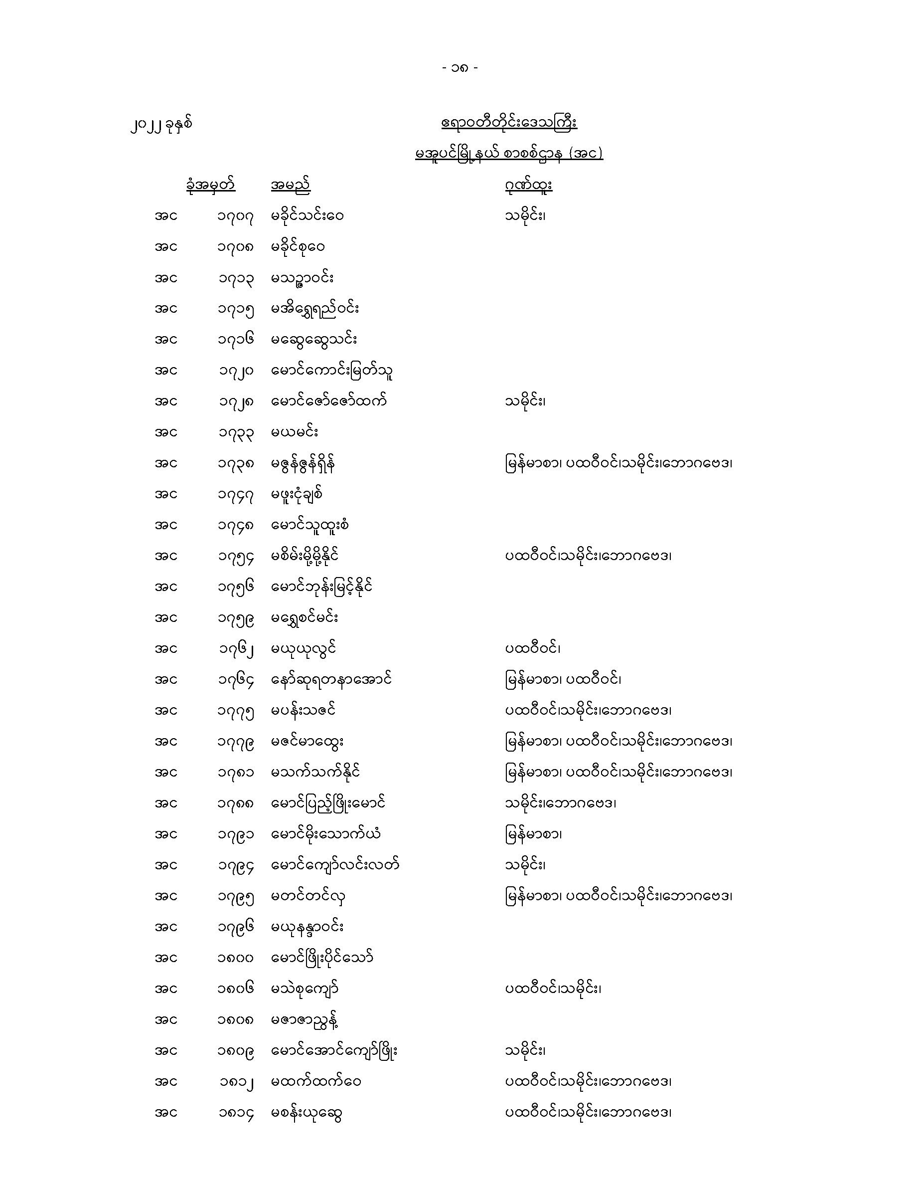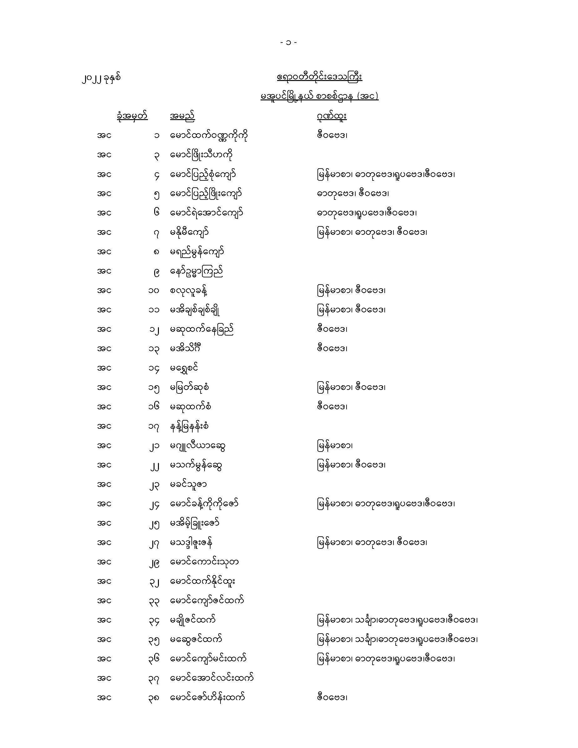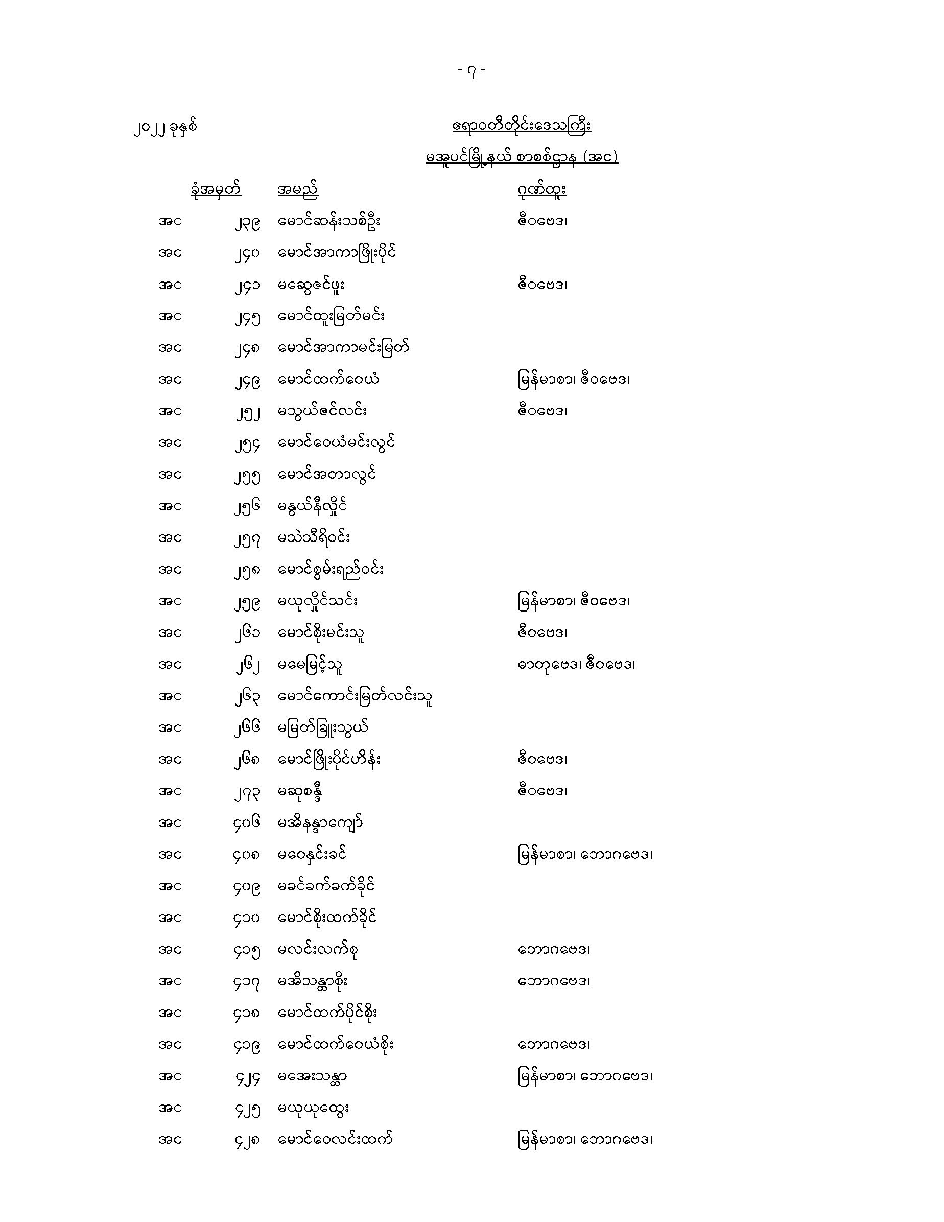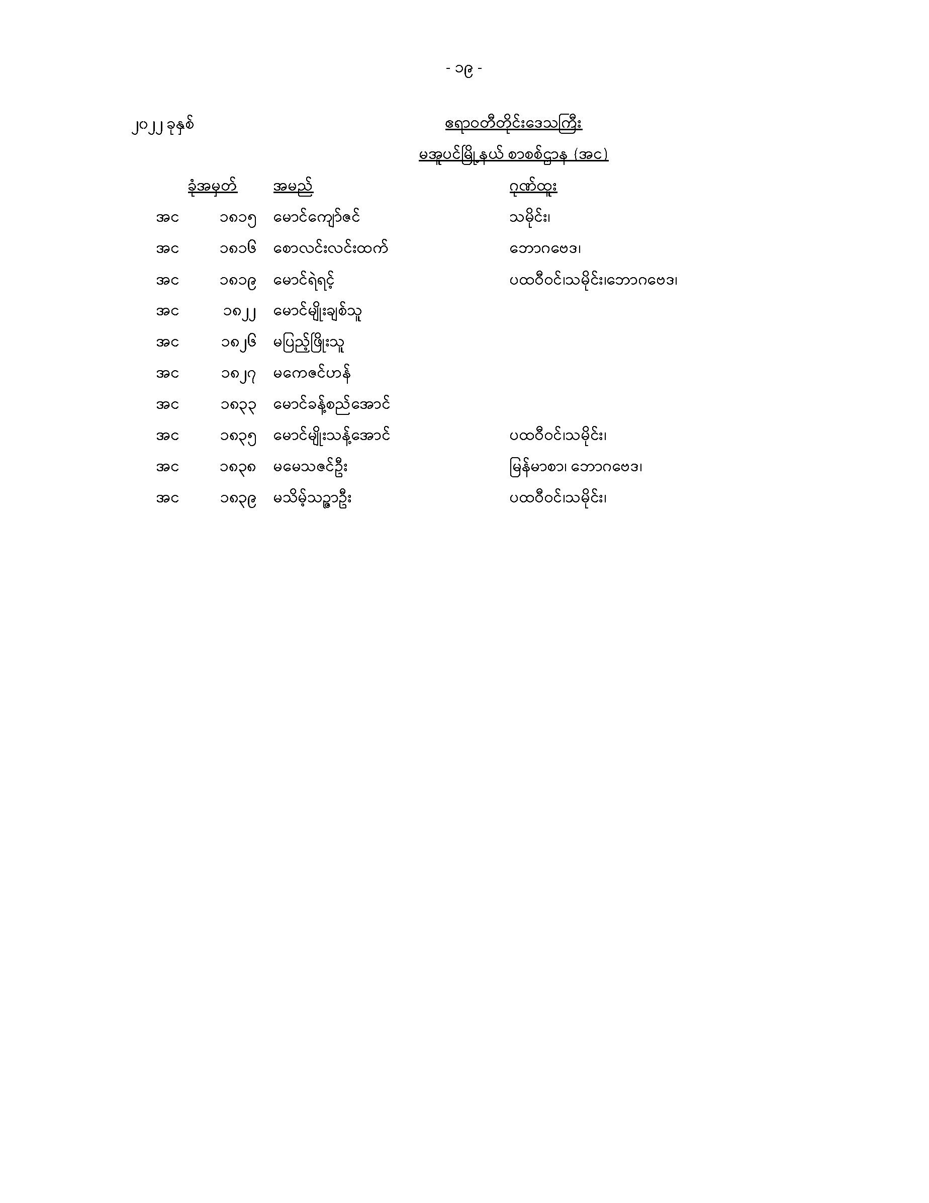 မအူပင်မြို့နယ်တက္ကသိုလ်ဝင်စာမေးပွဲအောင်စာရင်း