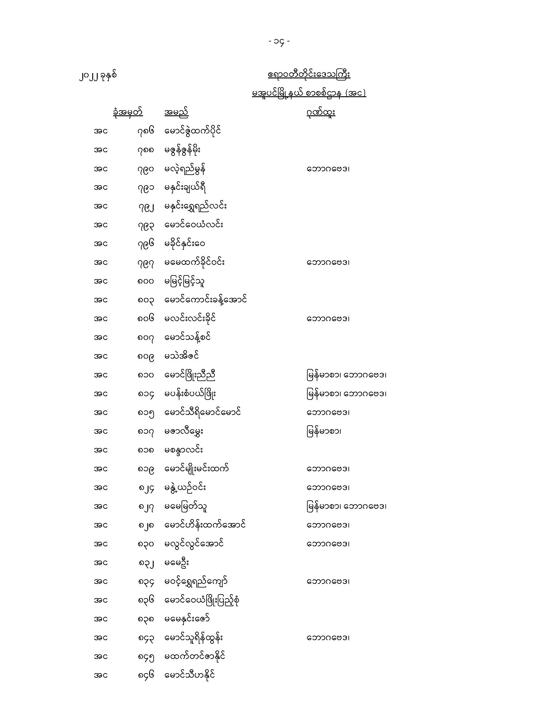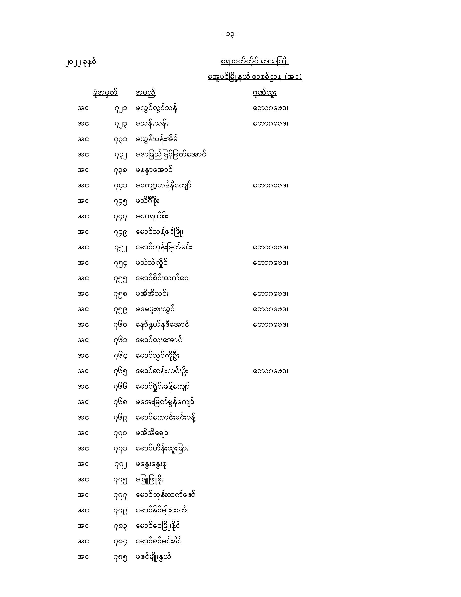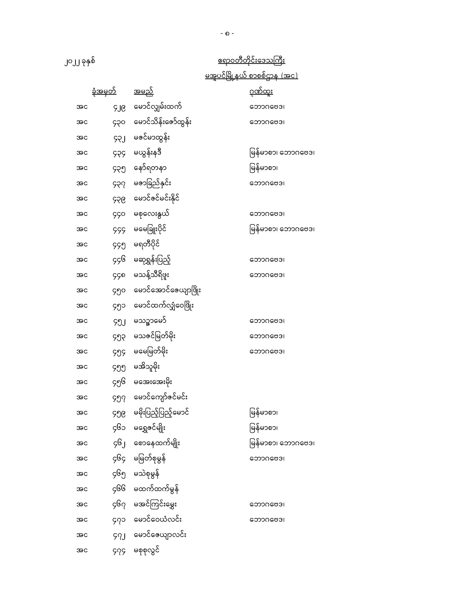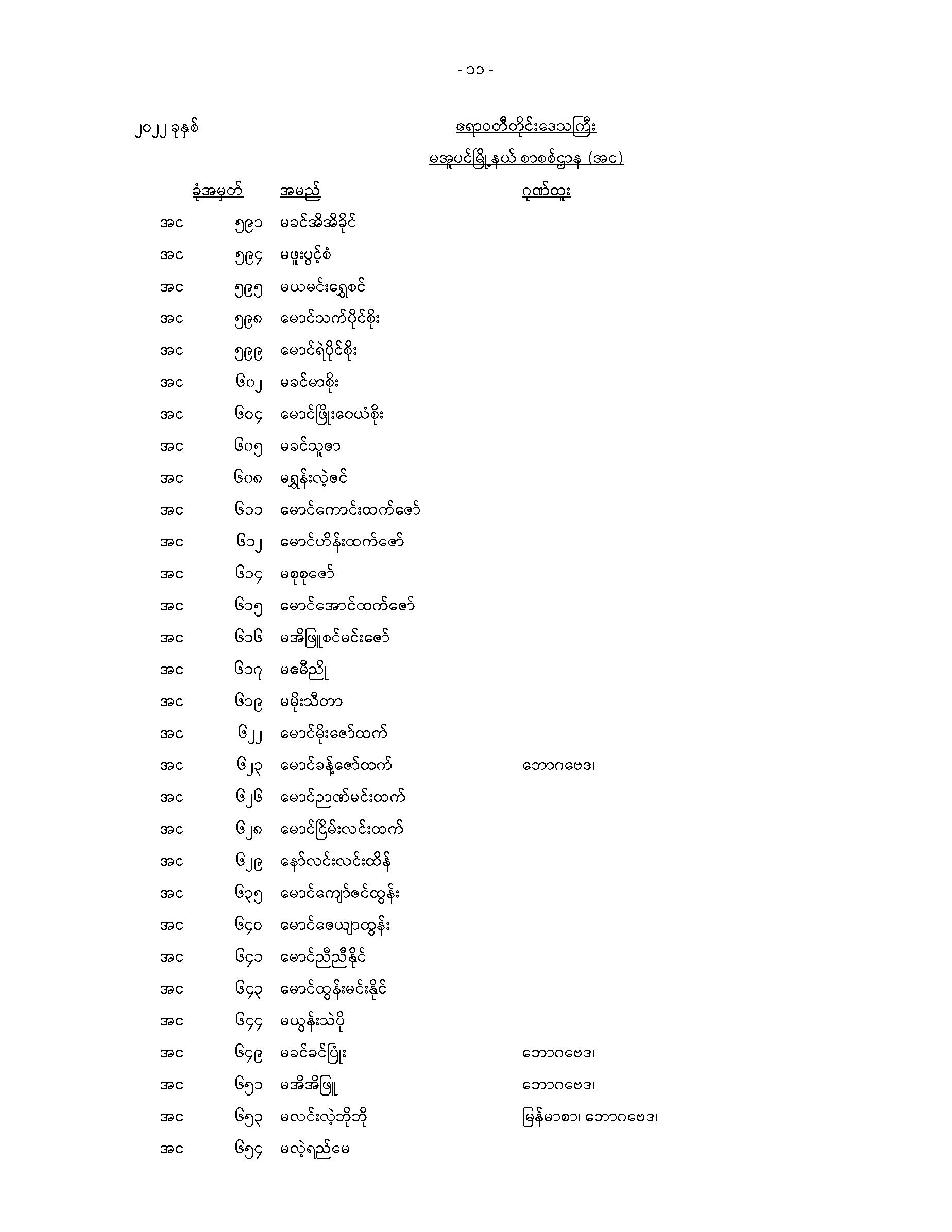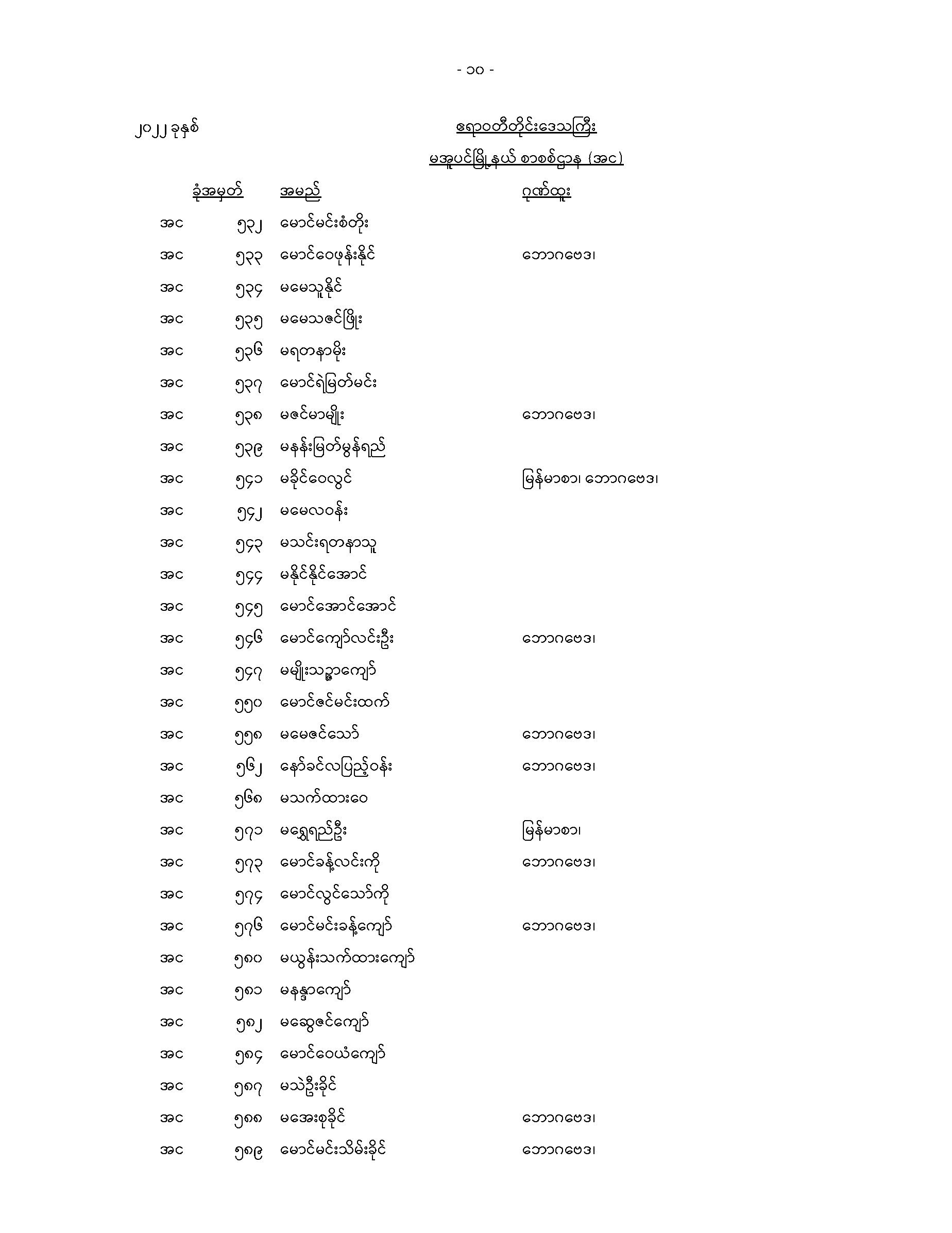 မအူပင်မြို့နယ်တက္ကသိုလ်ဝင်စာမေးပွဲအောင်စာရင်း