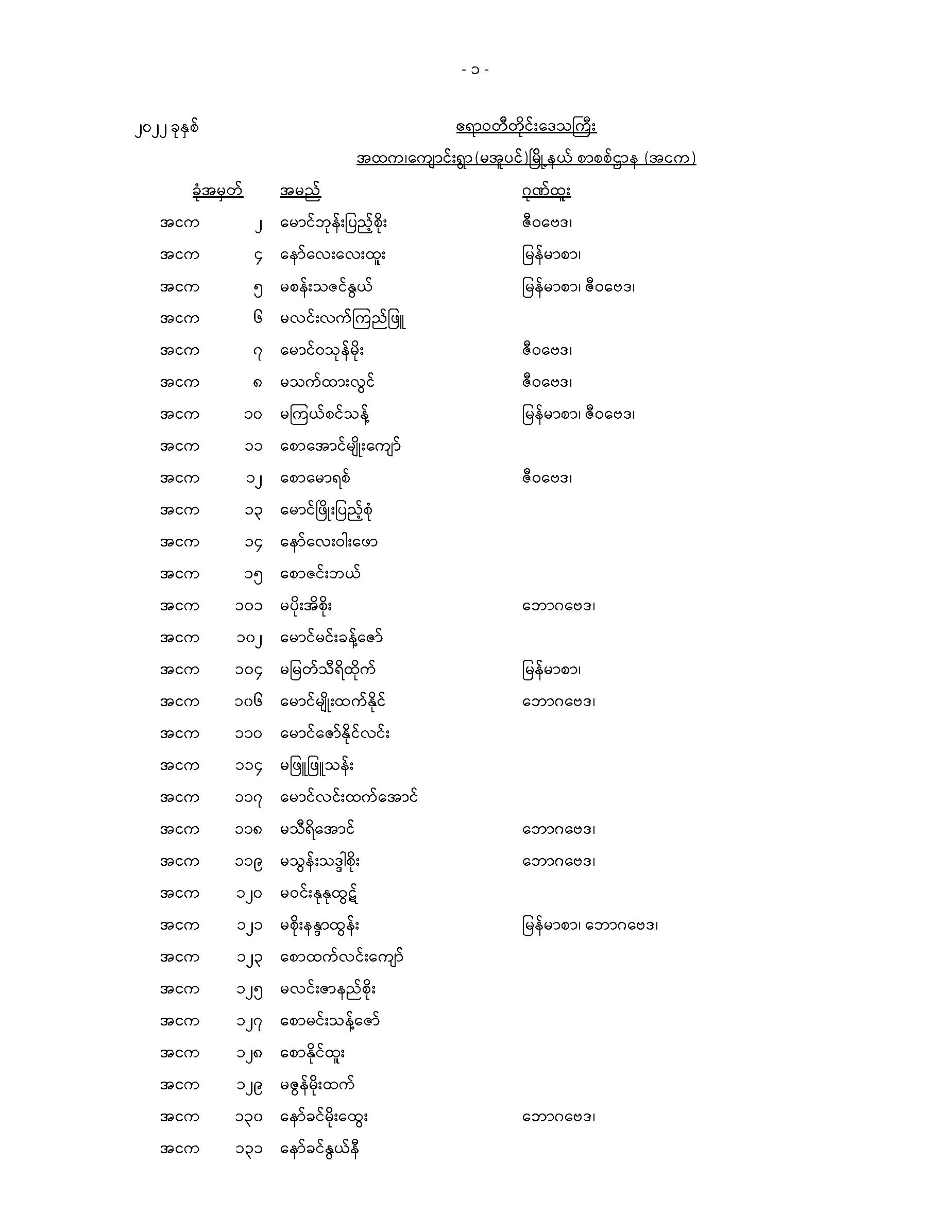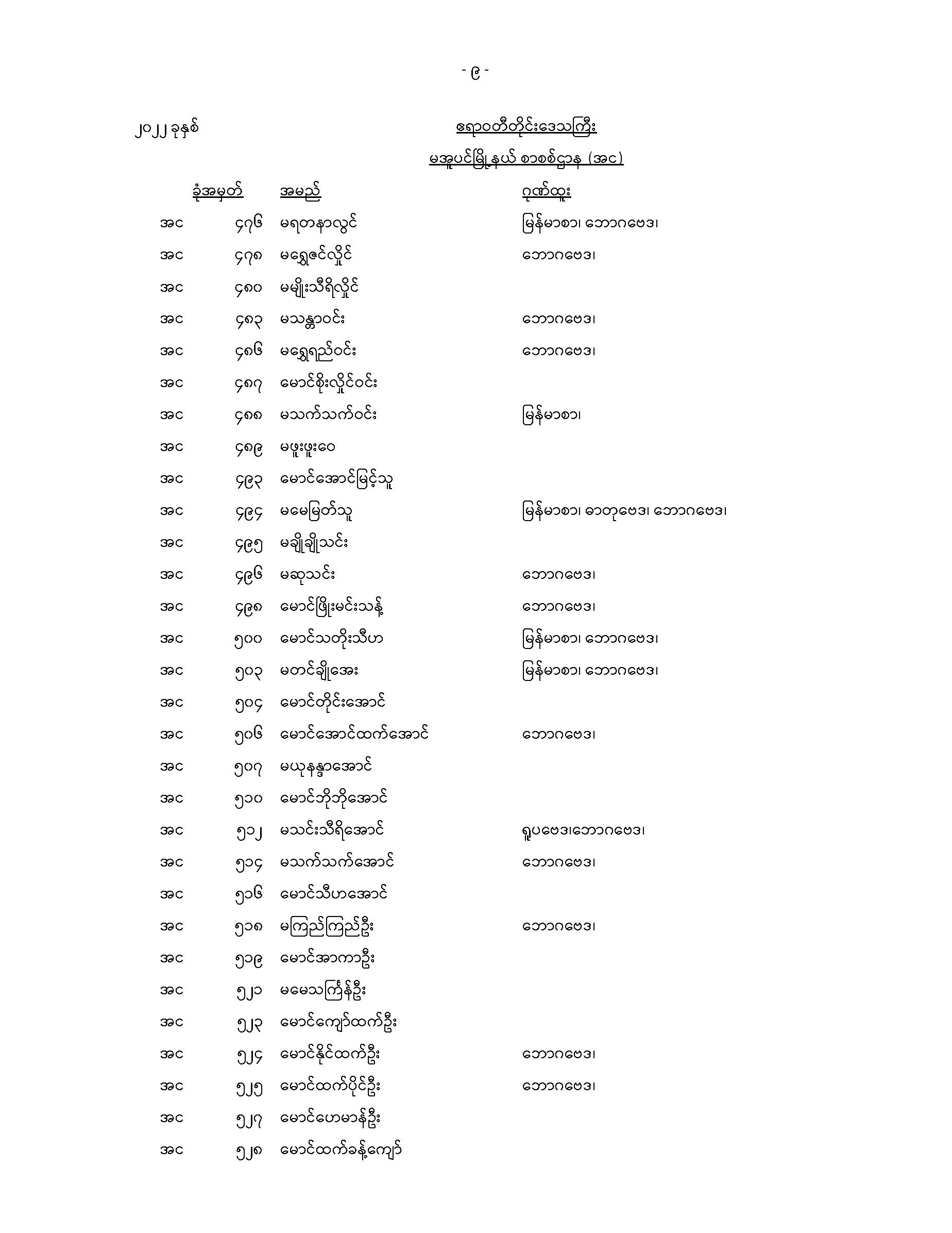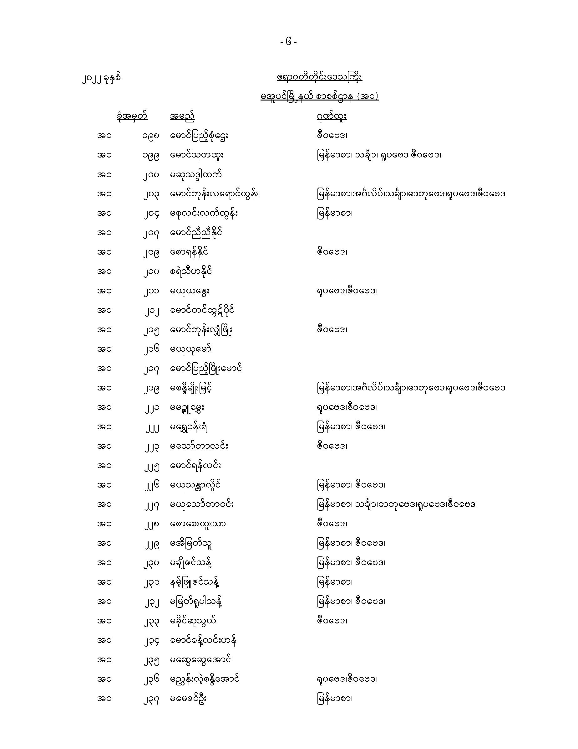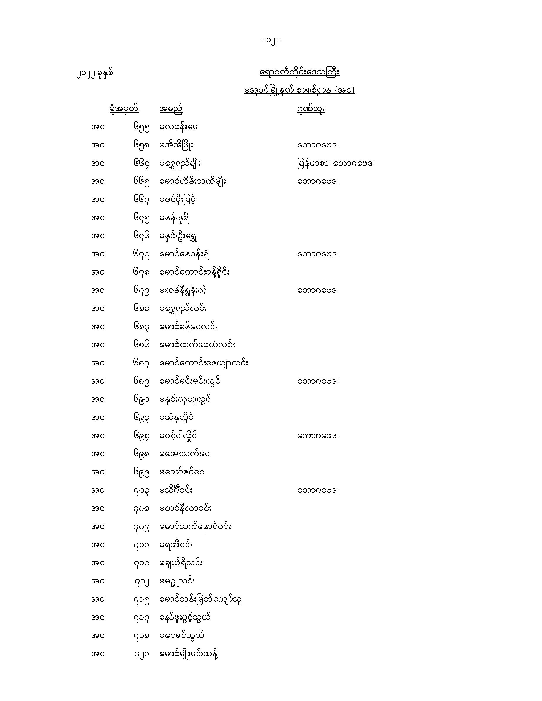 မအူပင်မြို့နယ်တက္ကသိုလ်ဝင်စာမေးပွဲအောင်စာရင်း