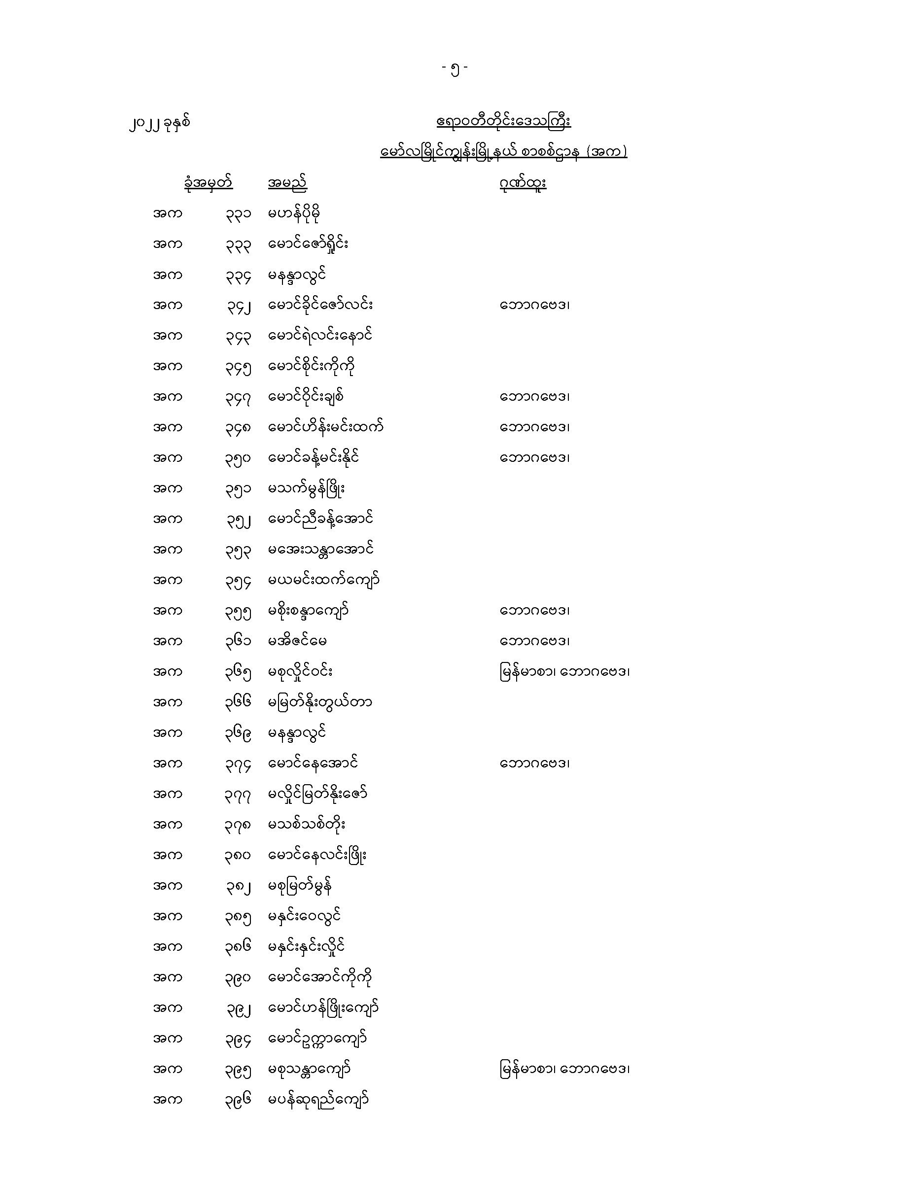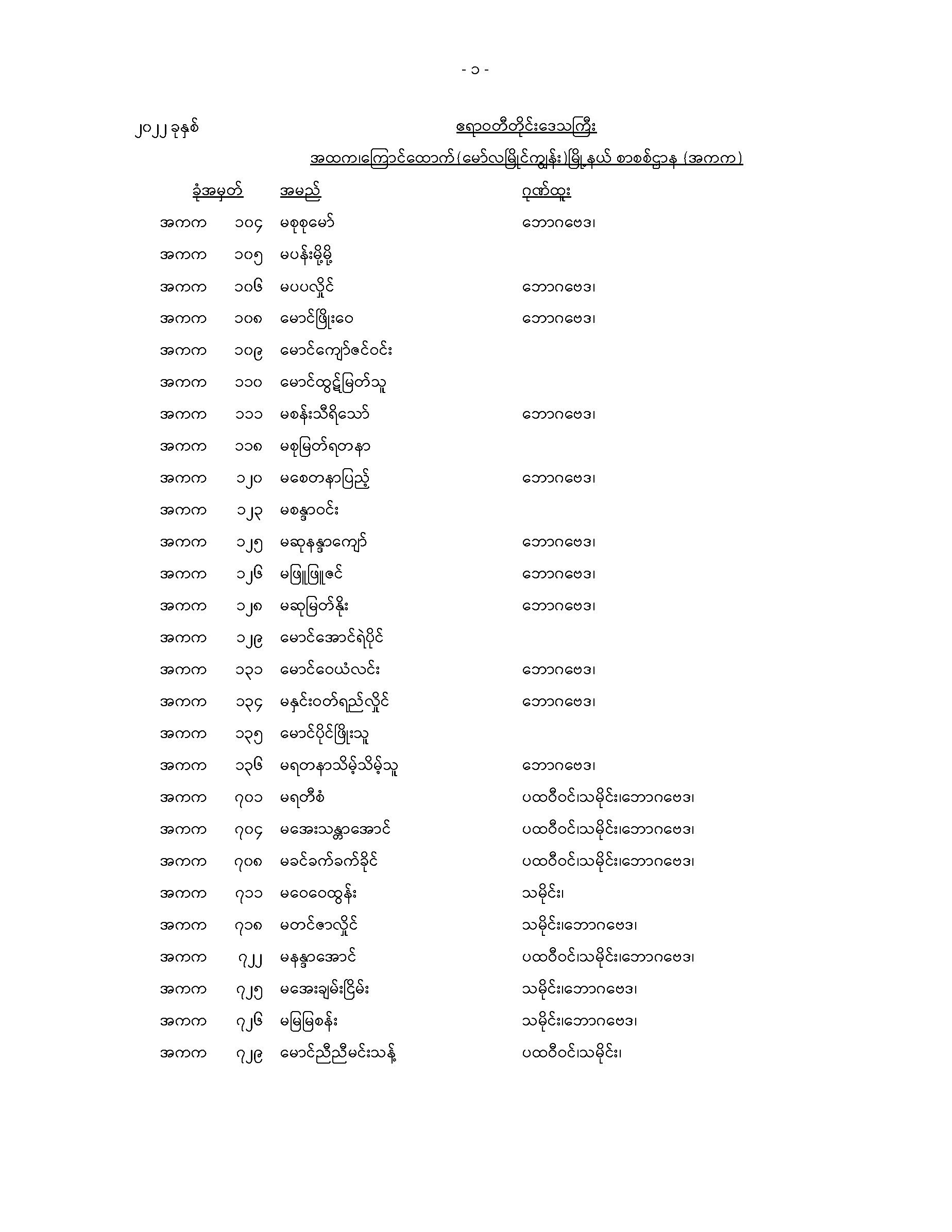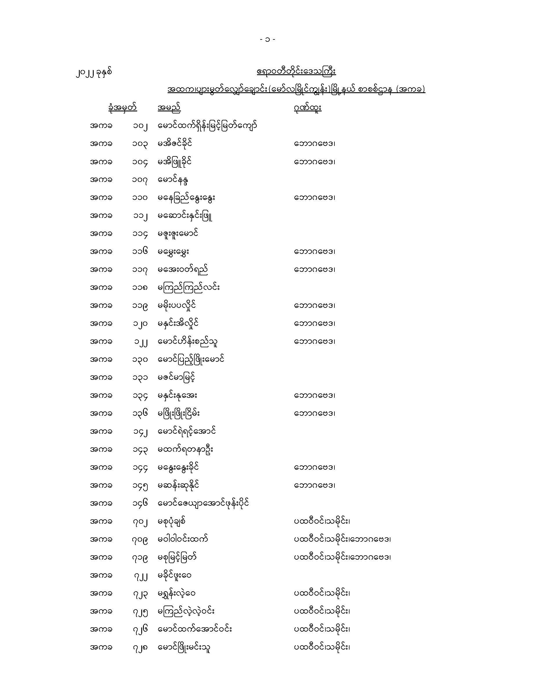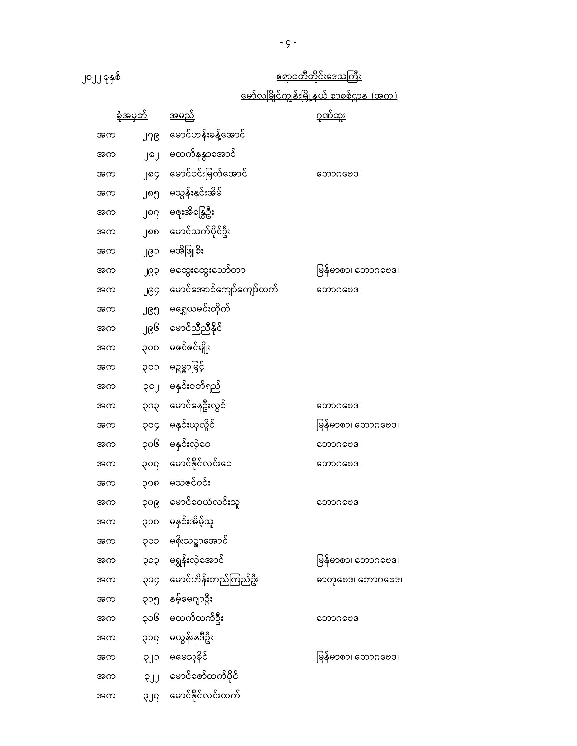မော်လမြိုင်ကျွန်းမြို့နယ်တက္ကသိုလ်ဝင်စာမေးပွဲအောင်စာရင်း
