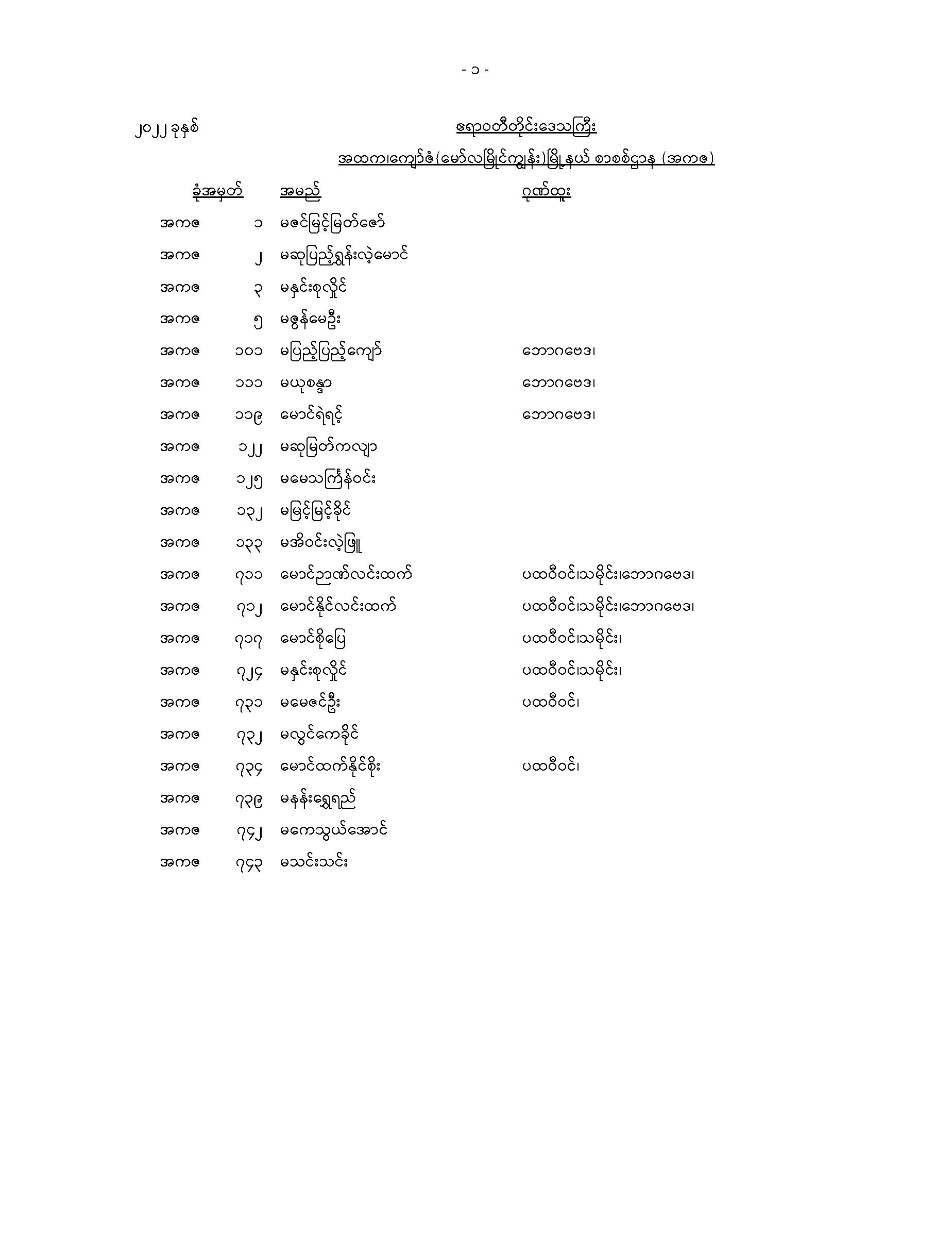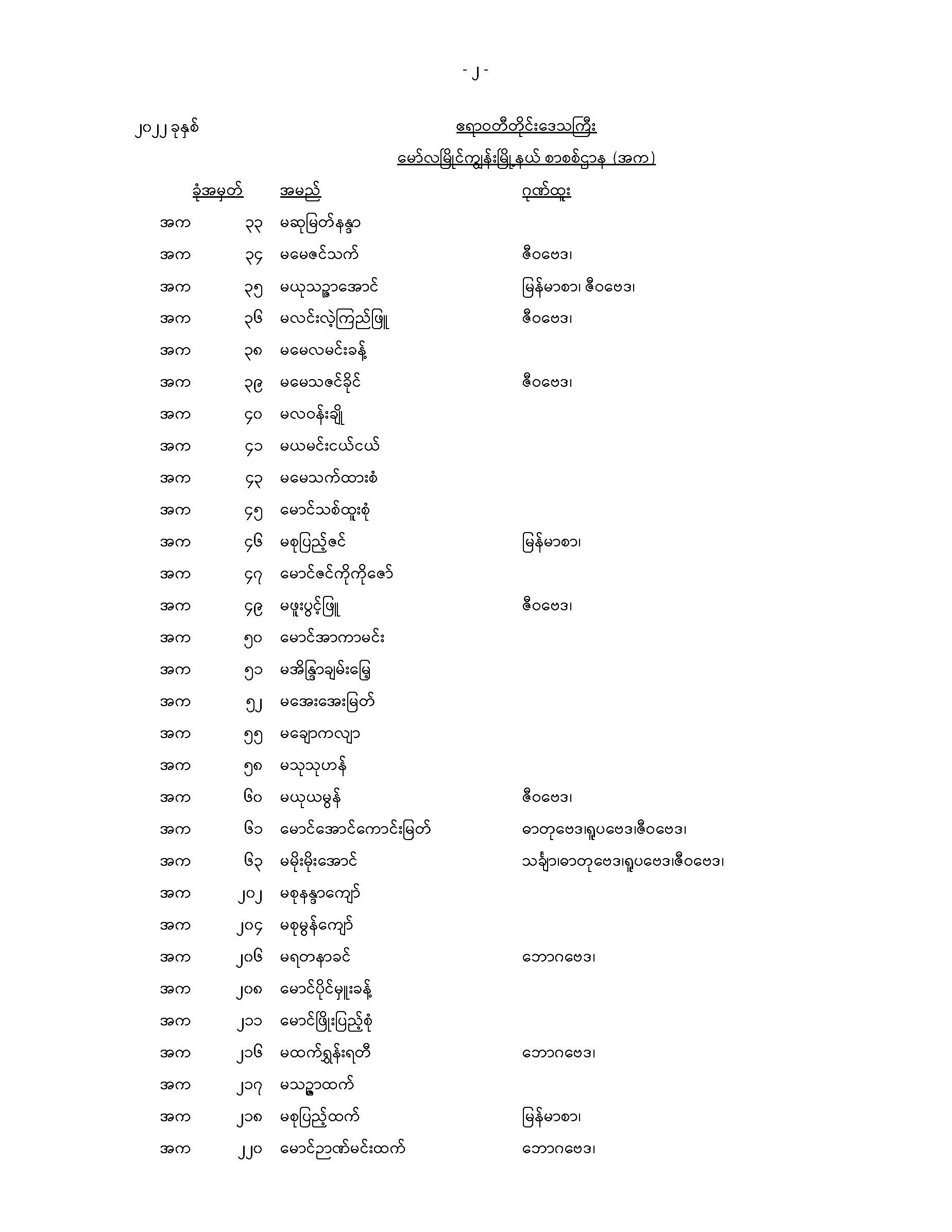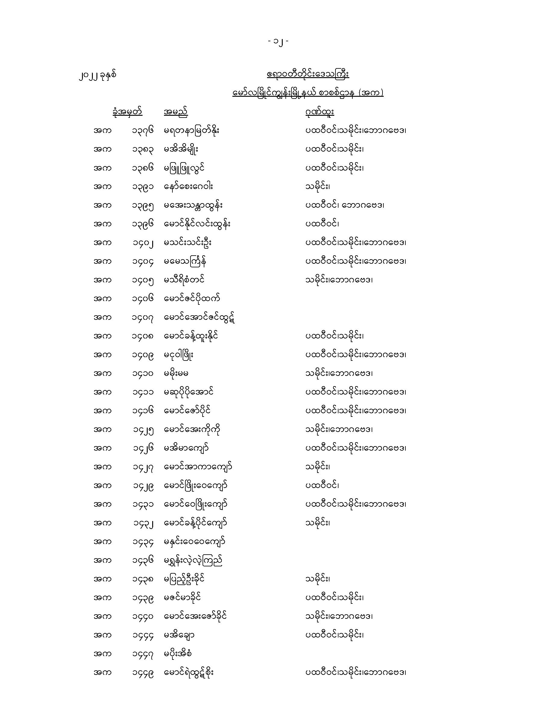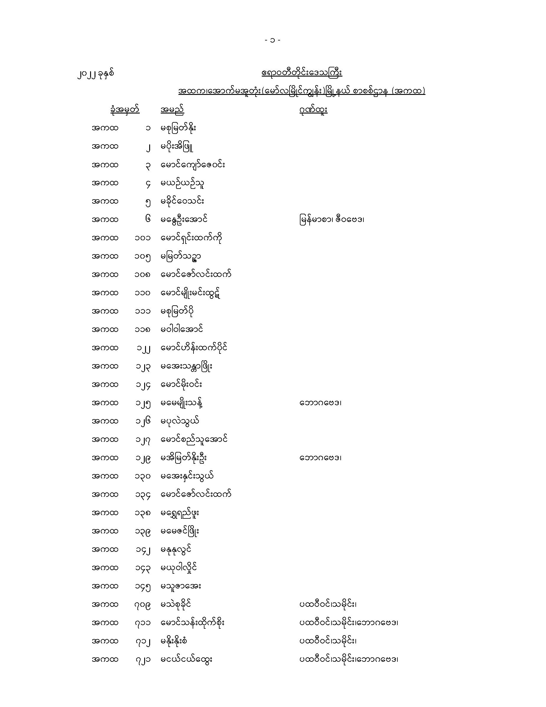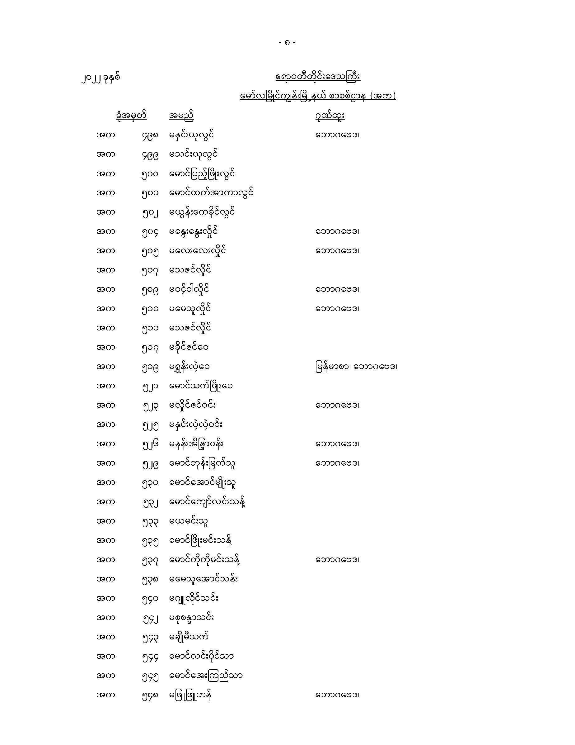 မော်လမြိုင်ကျွန်းမြို့နယ်တက္ကသိုလ်ဝင်စာမေးပွဲအောင်စာရင်း