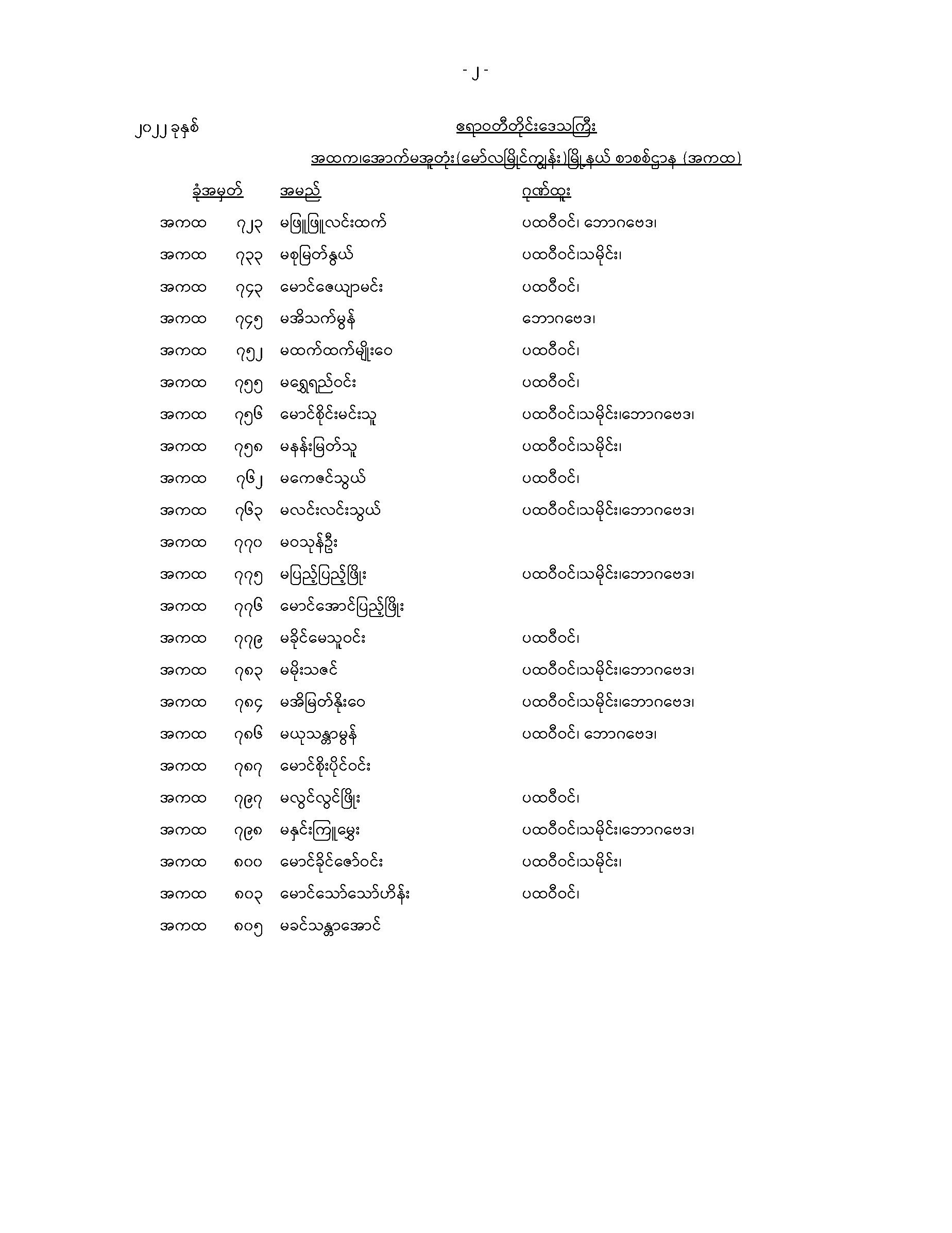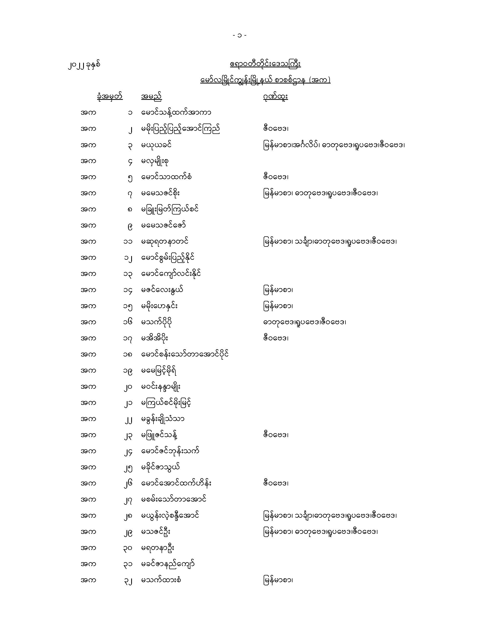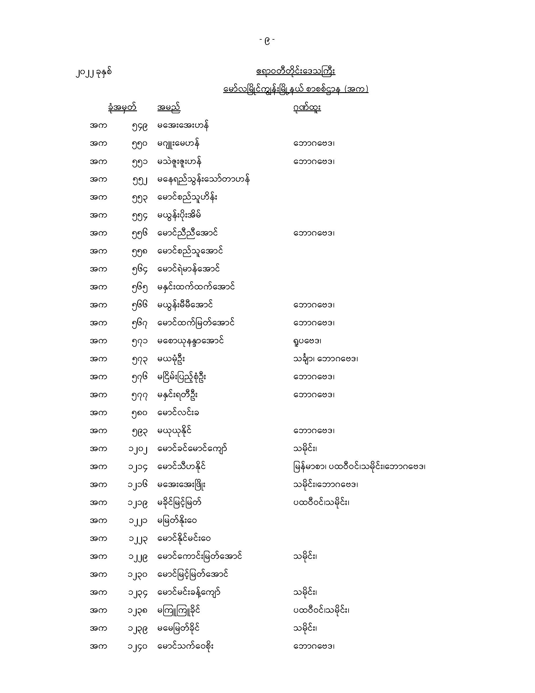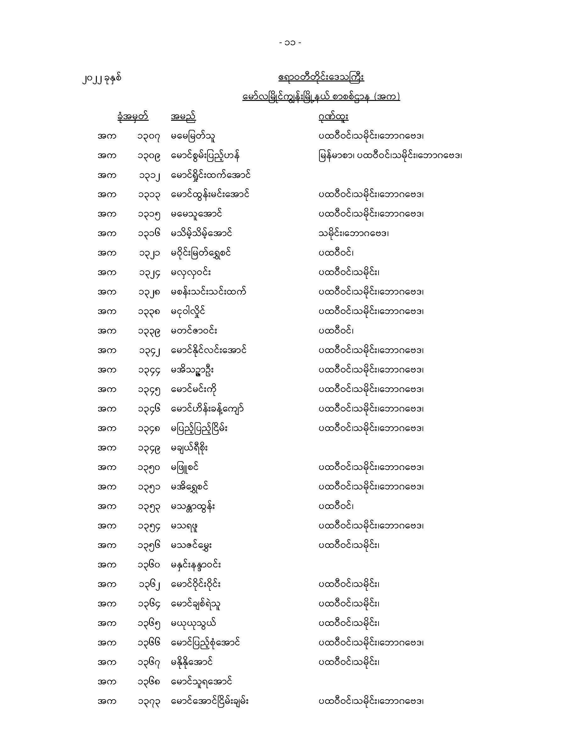 မော်လမြိုင်ကျွန်းမြို့နယ်တက္ကသိုလ်ဝင်စာမေးပွဲအောင်စာရင်း