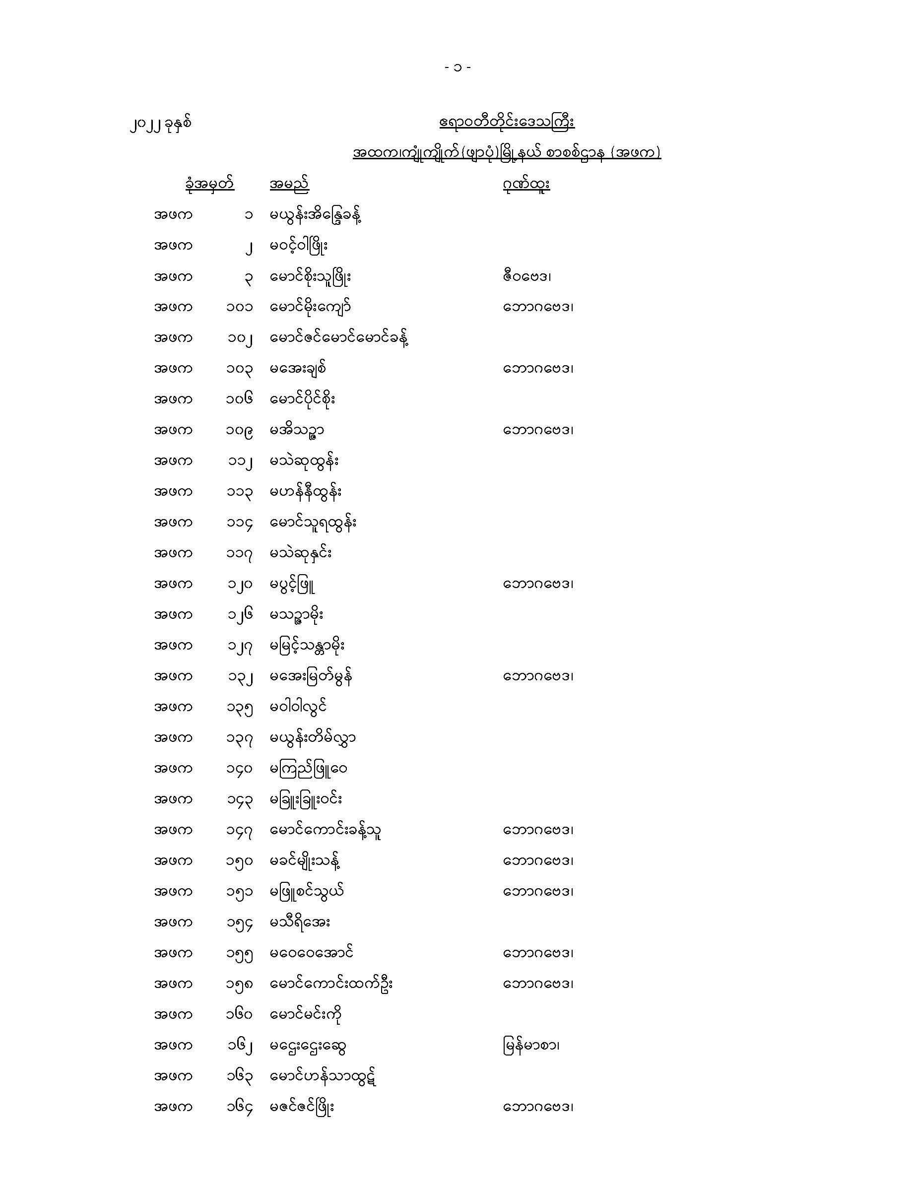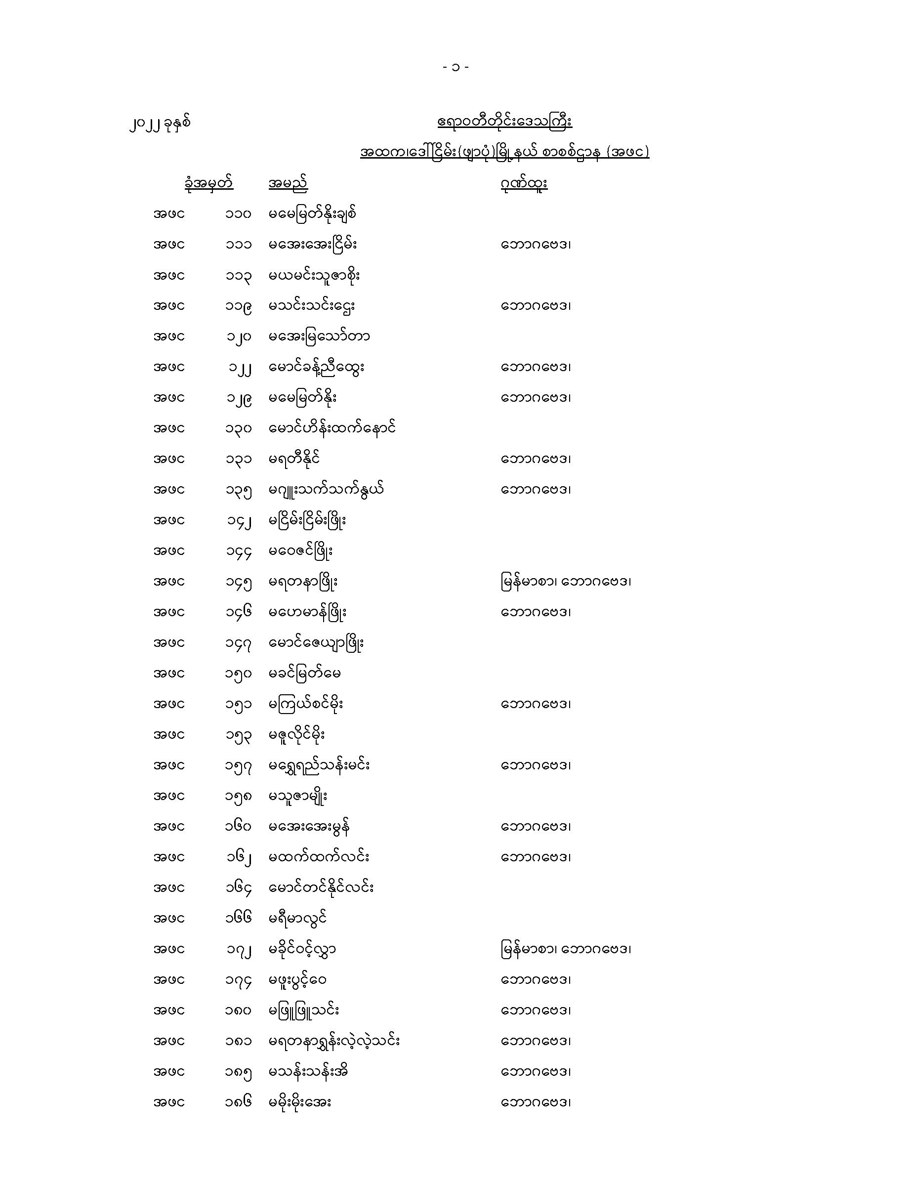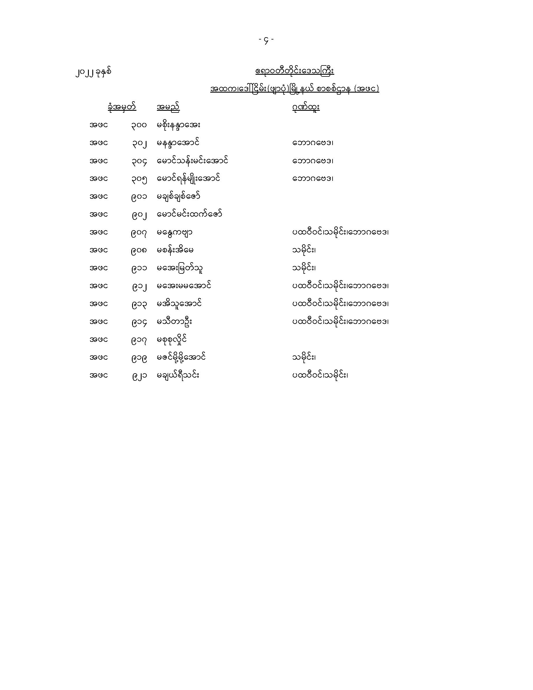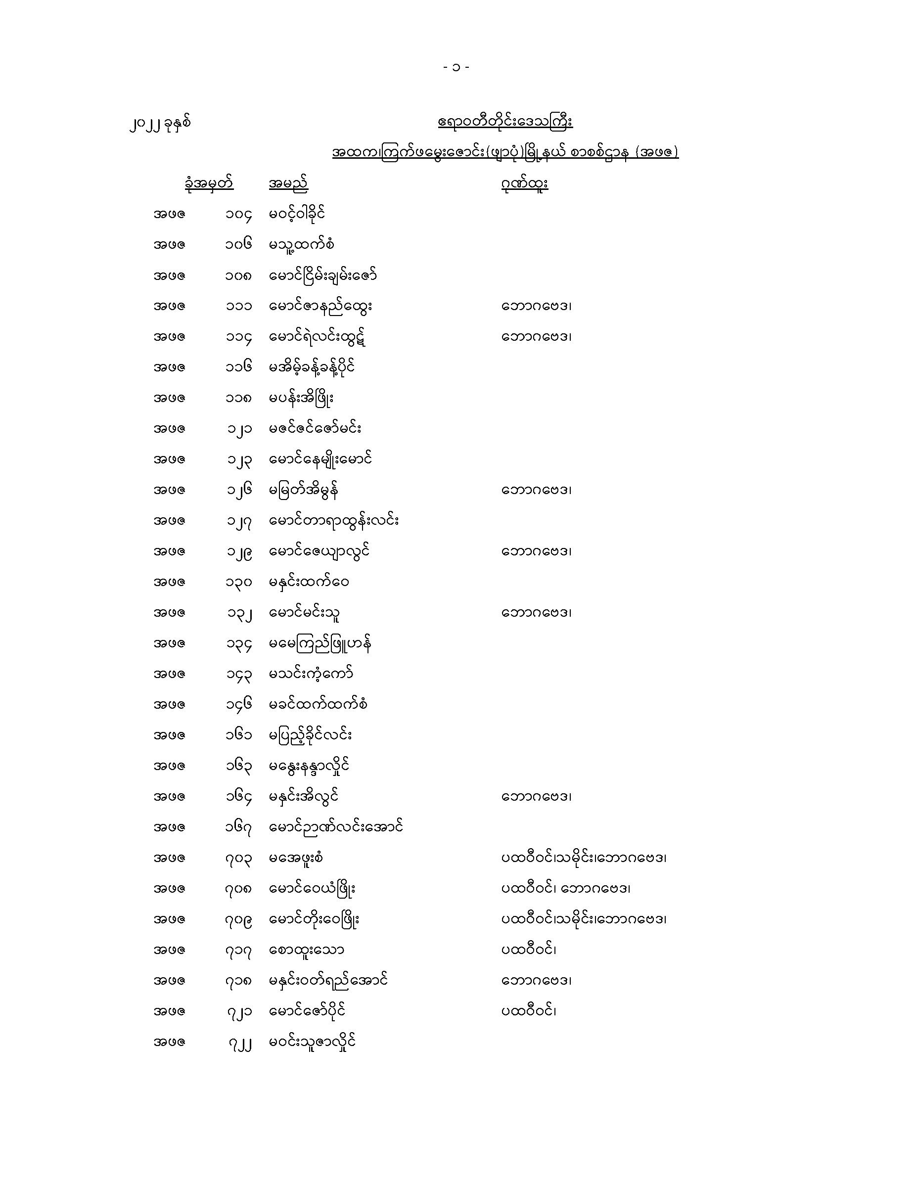 ဖျာပုံမြို့နယ်တက္ကသိုလ်ဝင်စာမေးပွဲအောင်စာရင်း