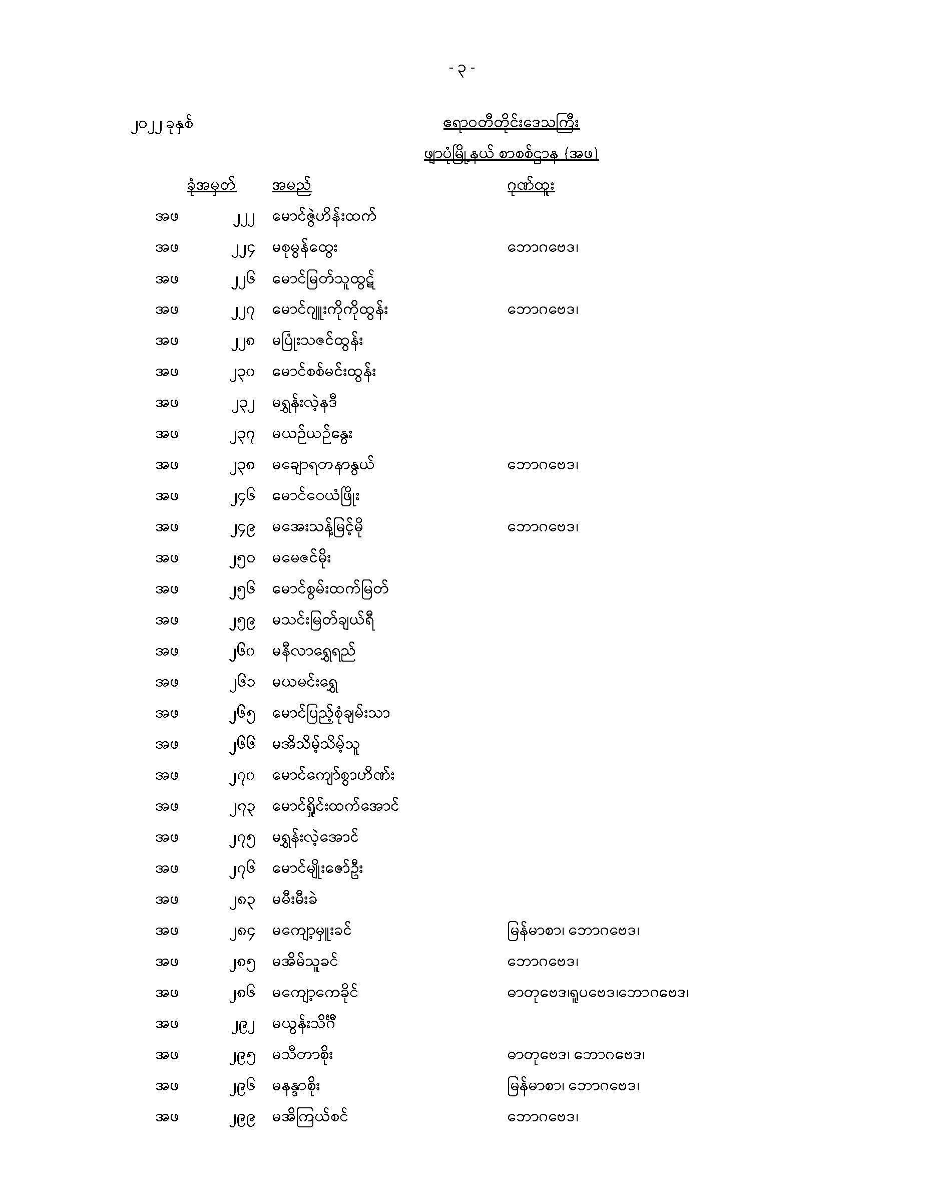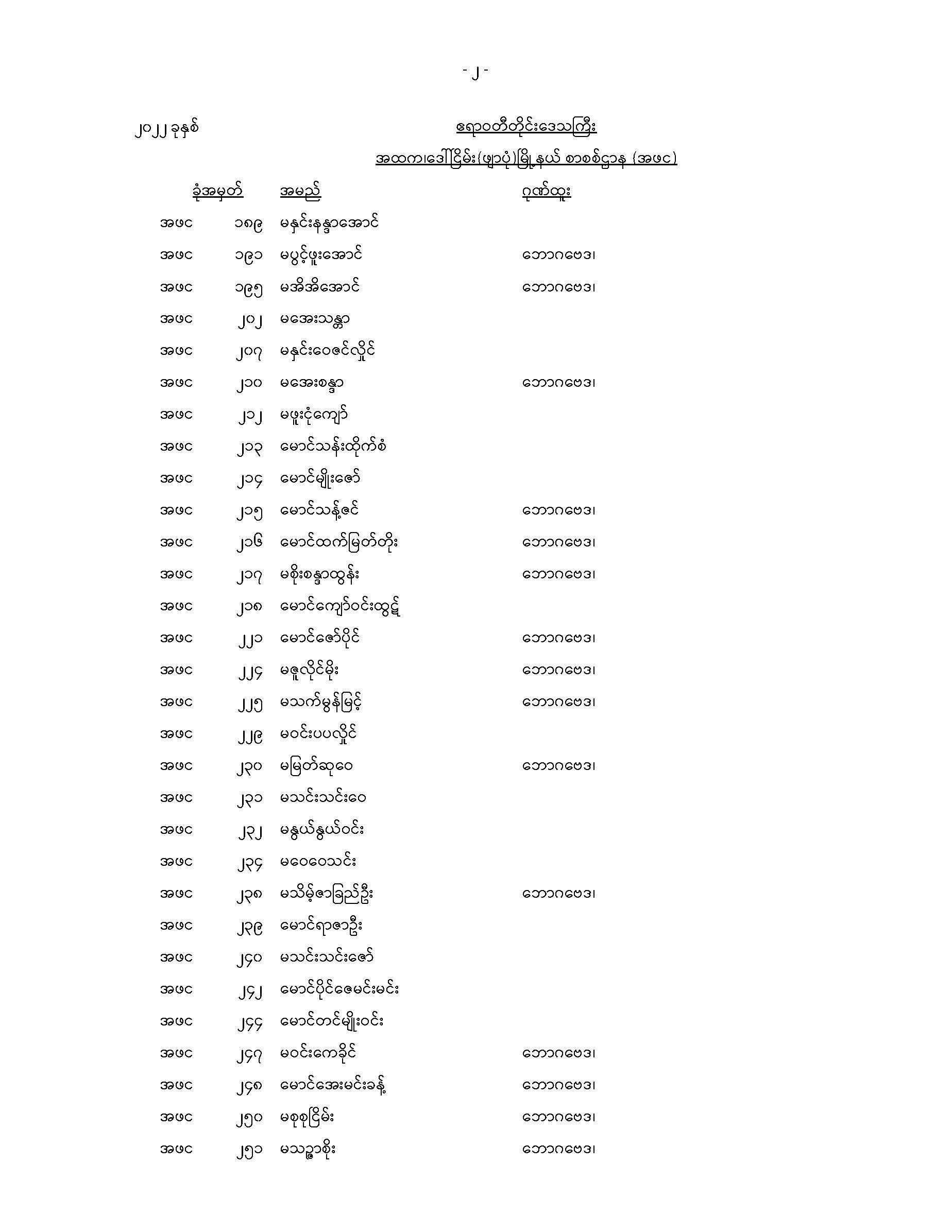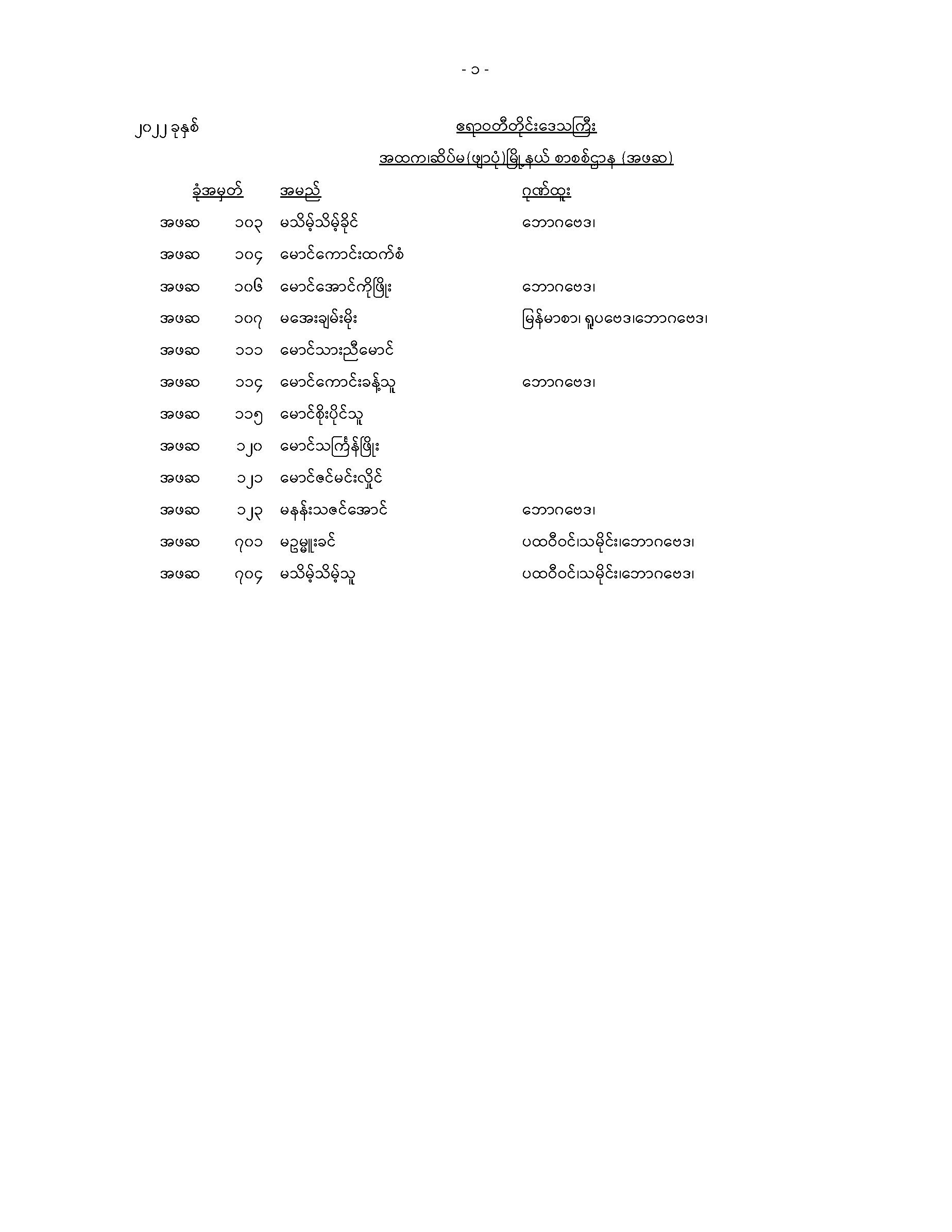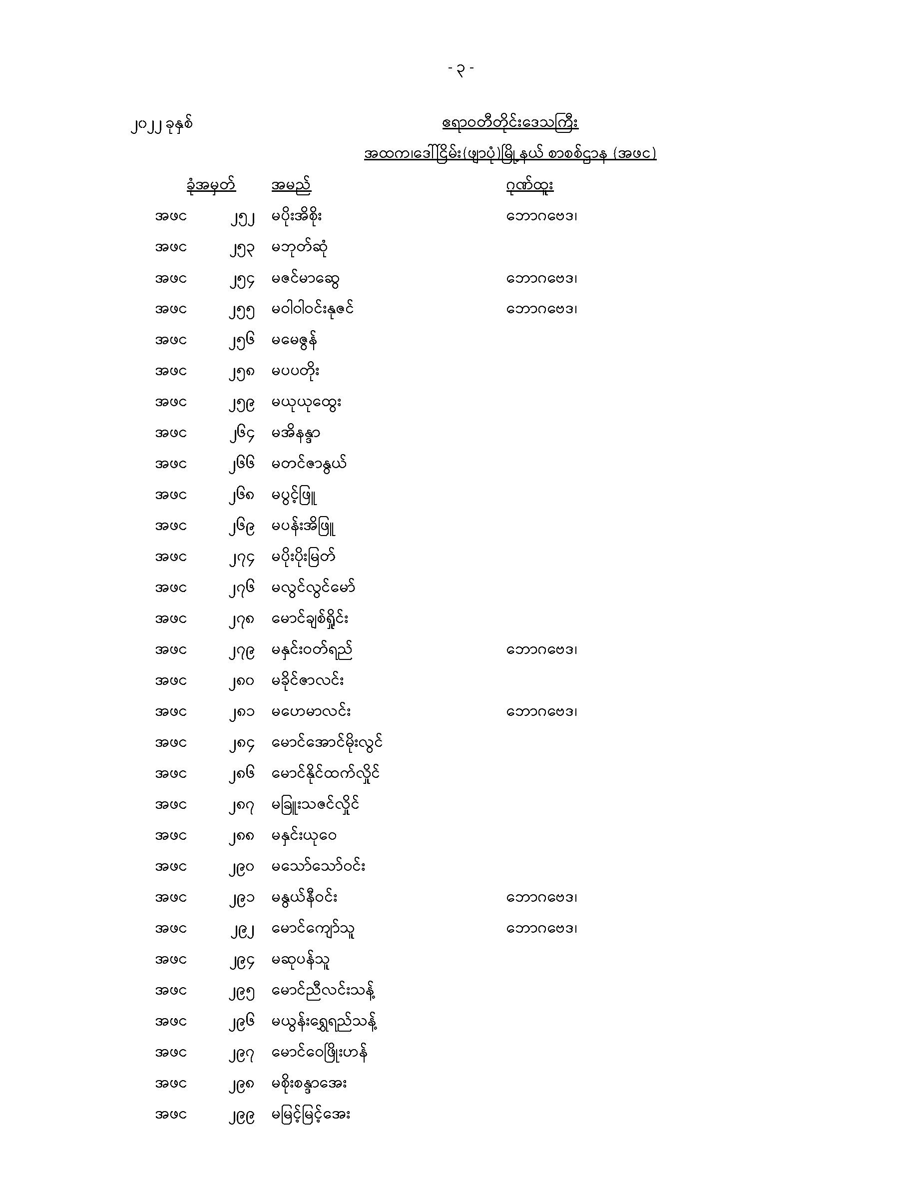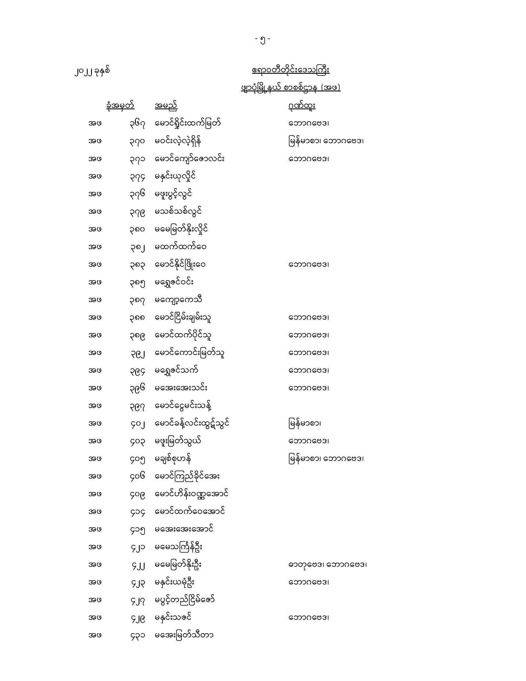 ဖျာပုံမြို့နယ်တက္ကသိုလ်ဝင်စာမေးပွဲအောင်စာရင်း