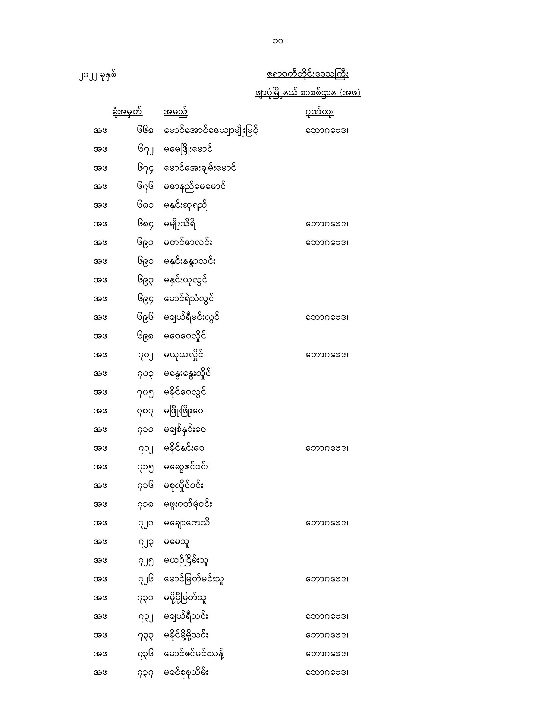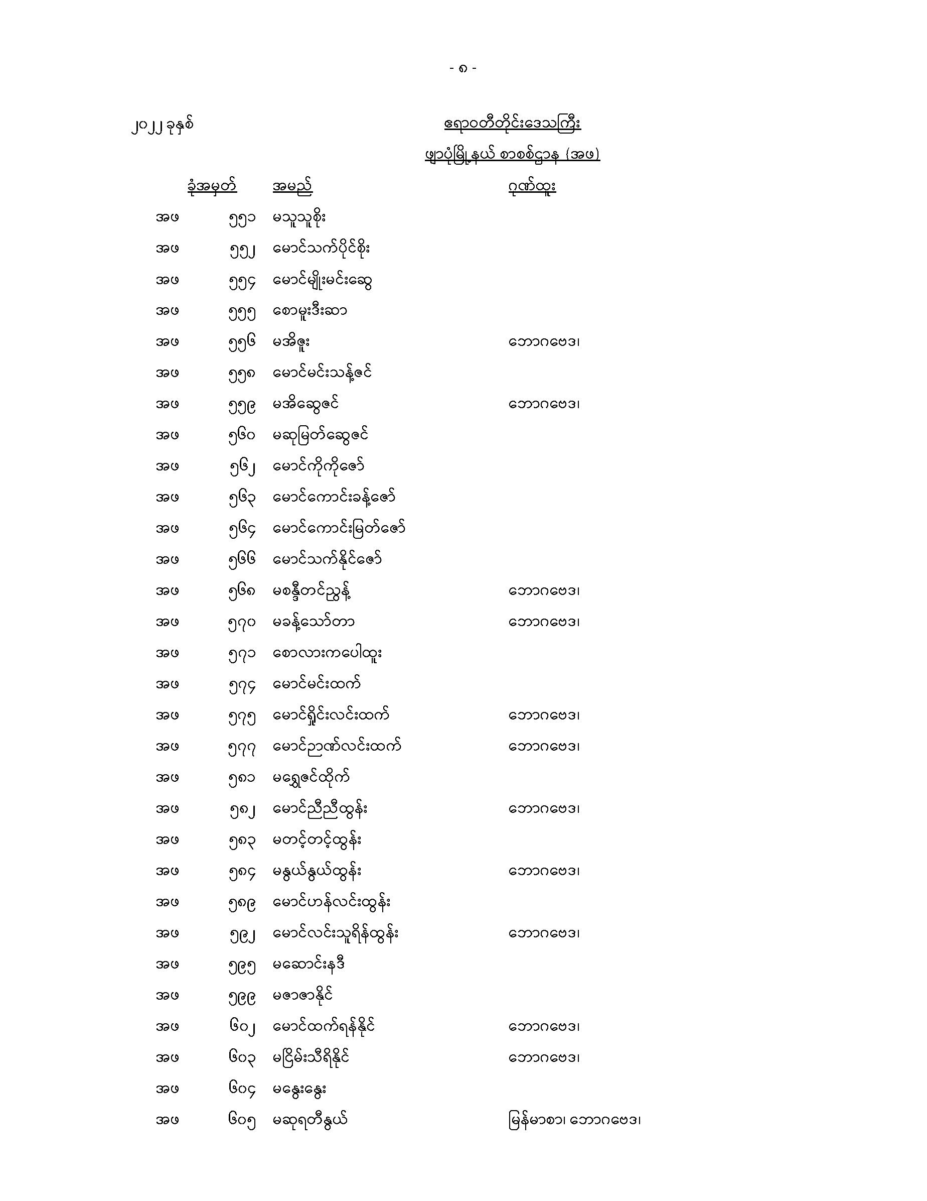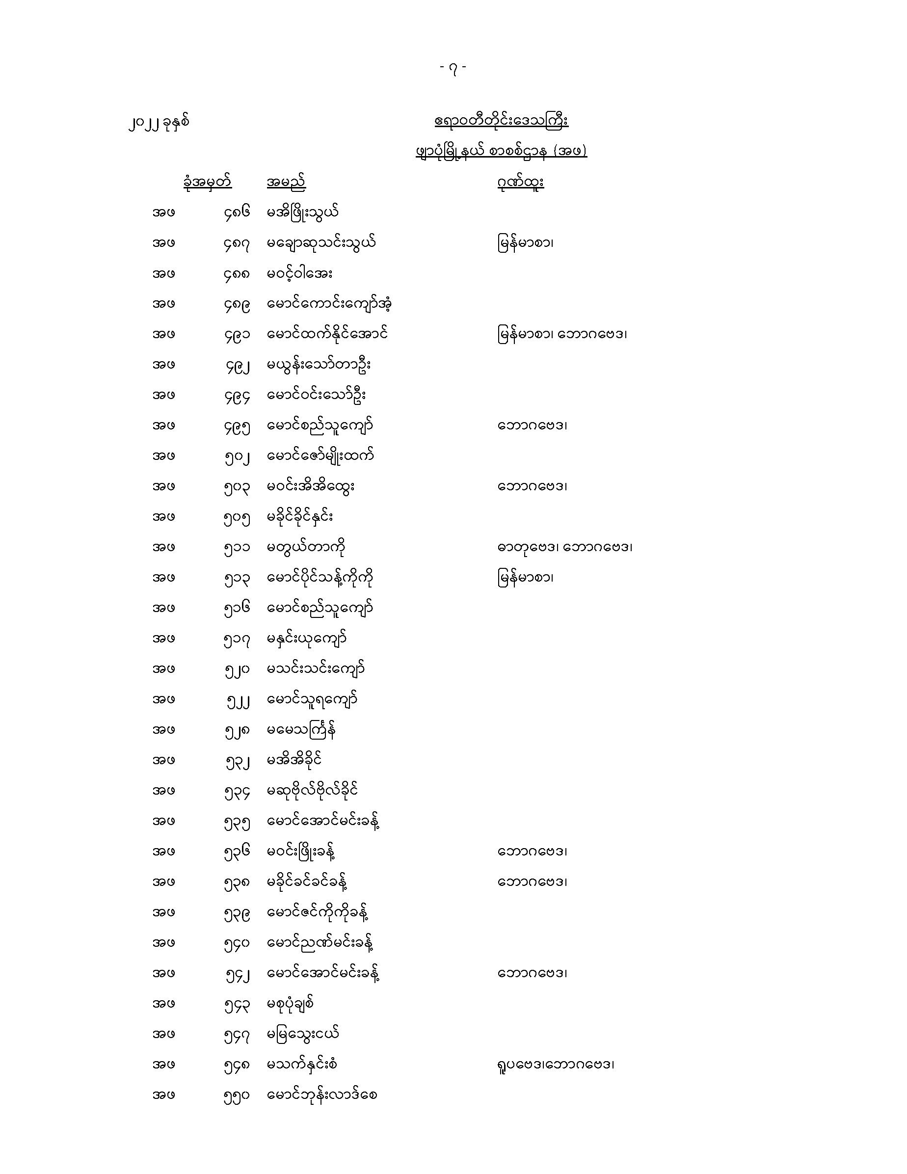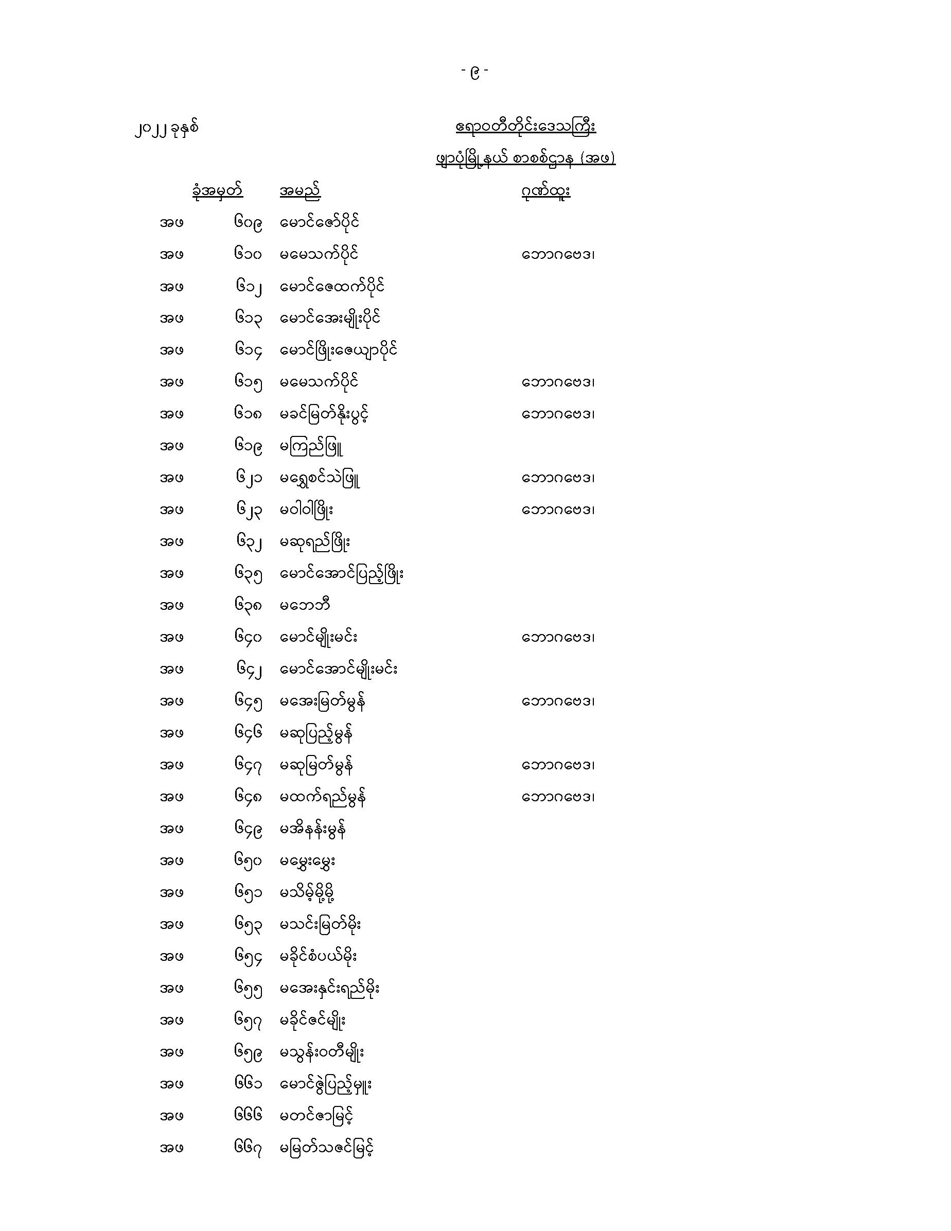 ဖျာပုံမြို့နယ်တက္ကသိုလ်ဝင်စာမေးပွဲအောင်စာရင်း