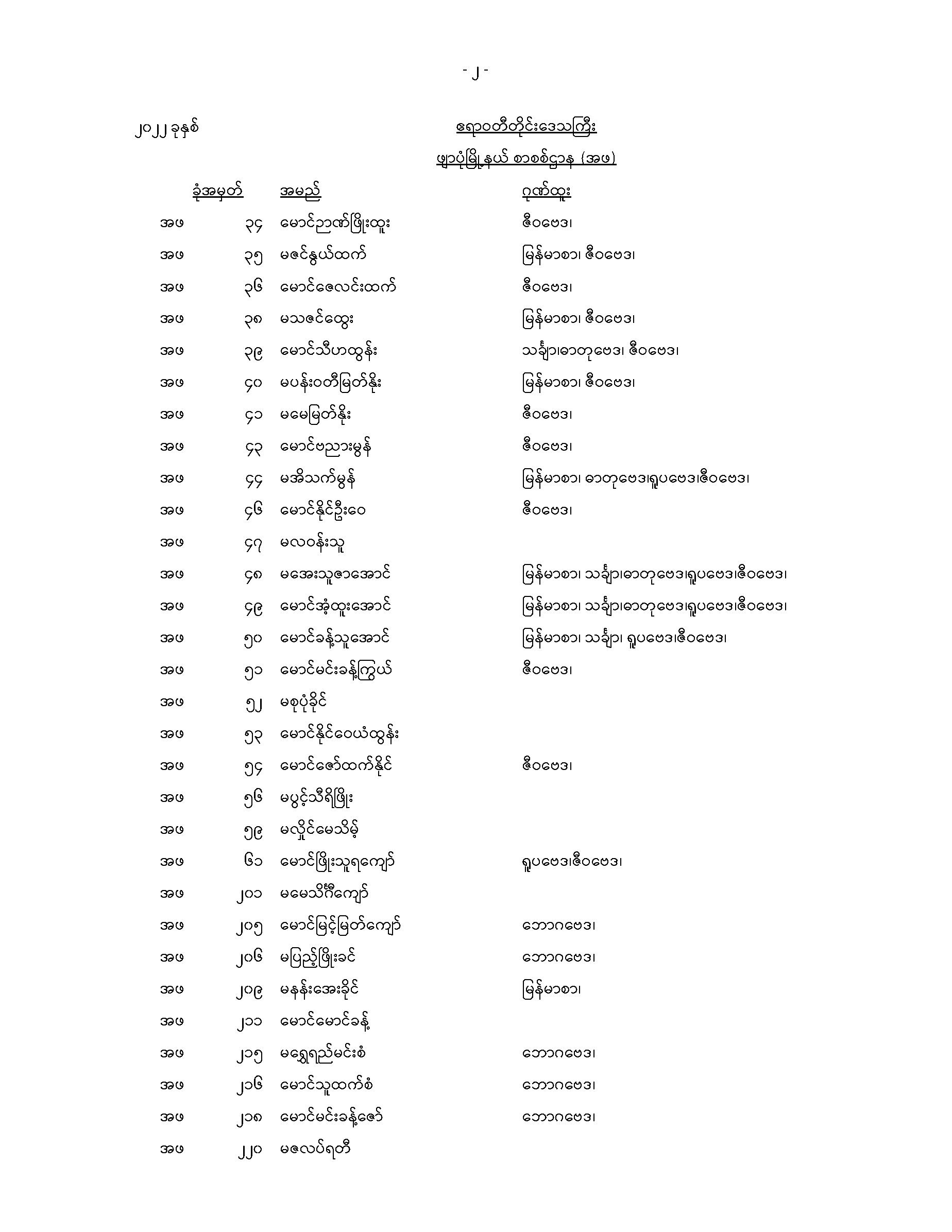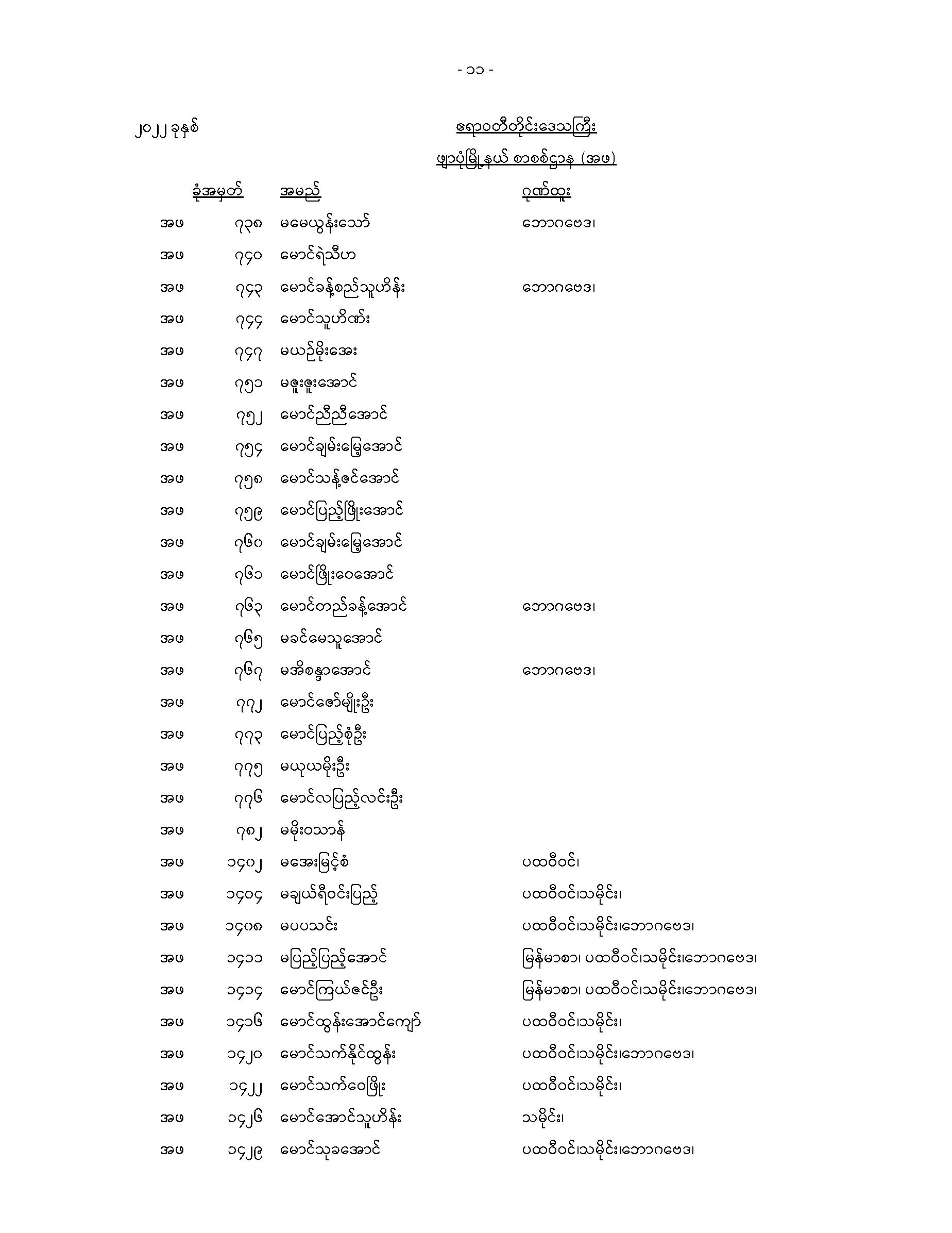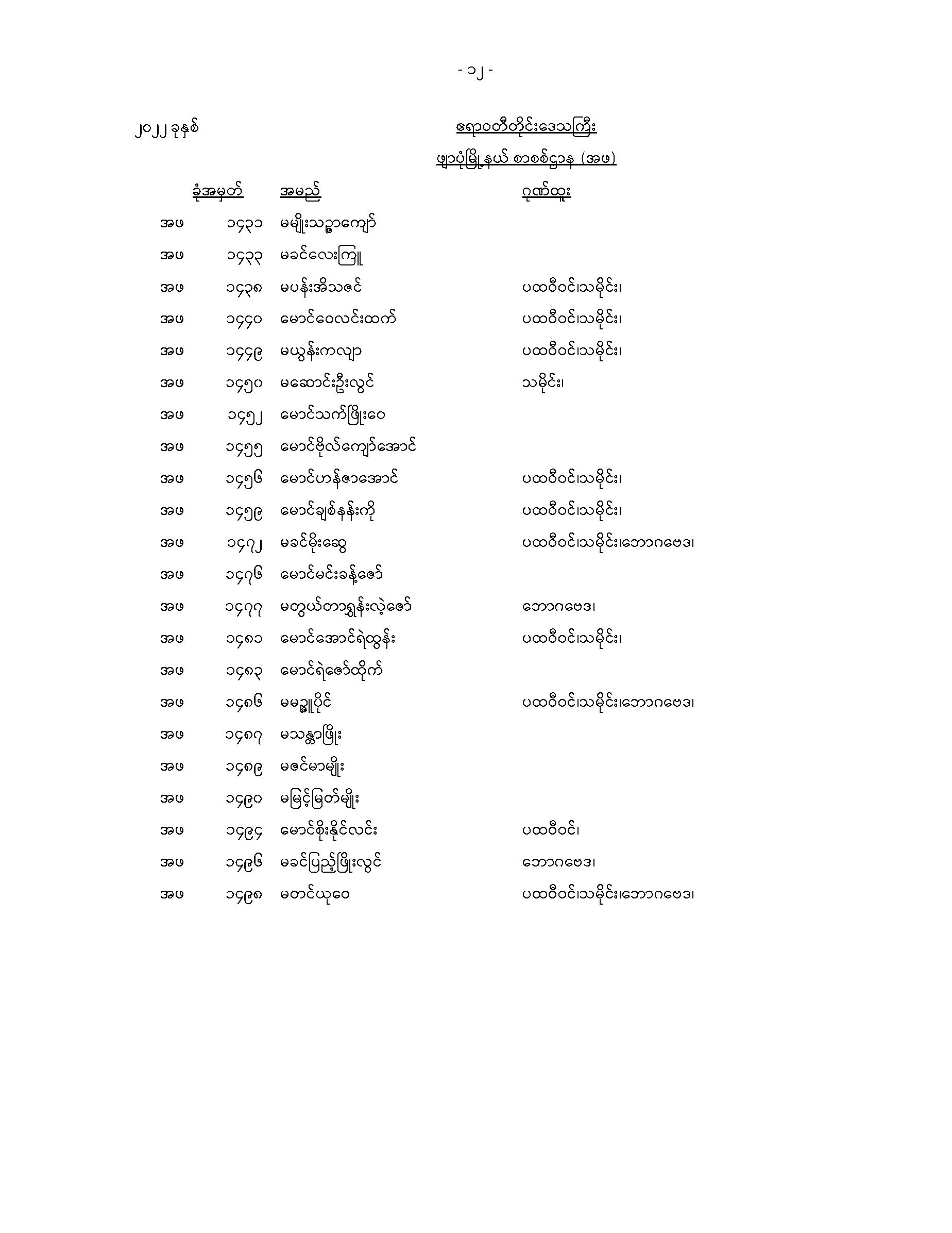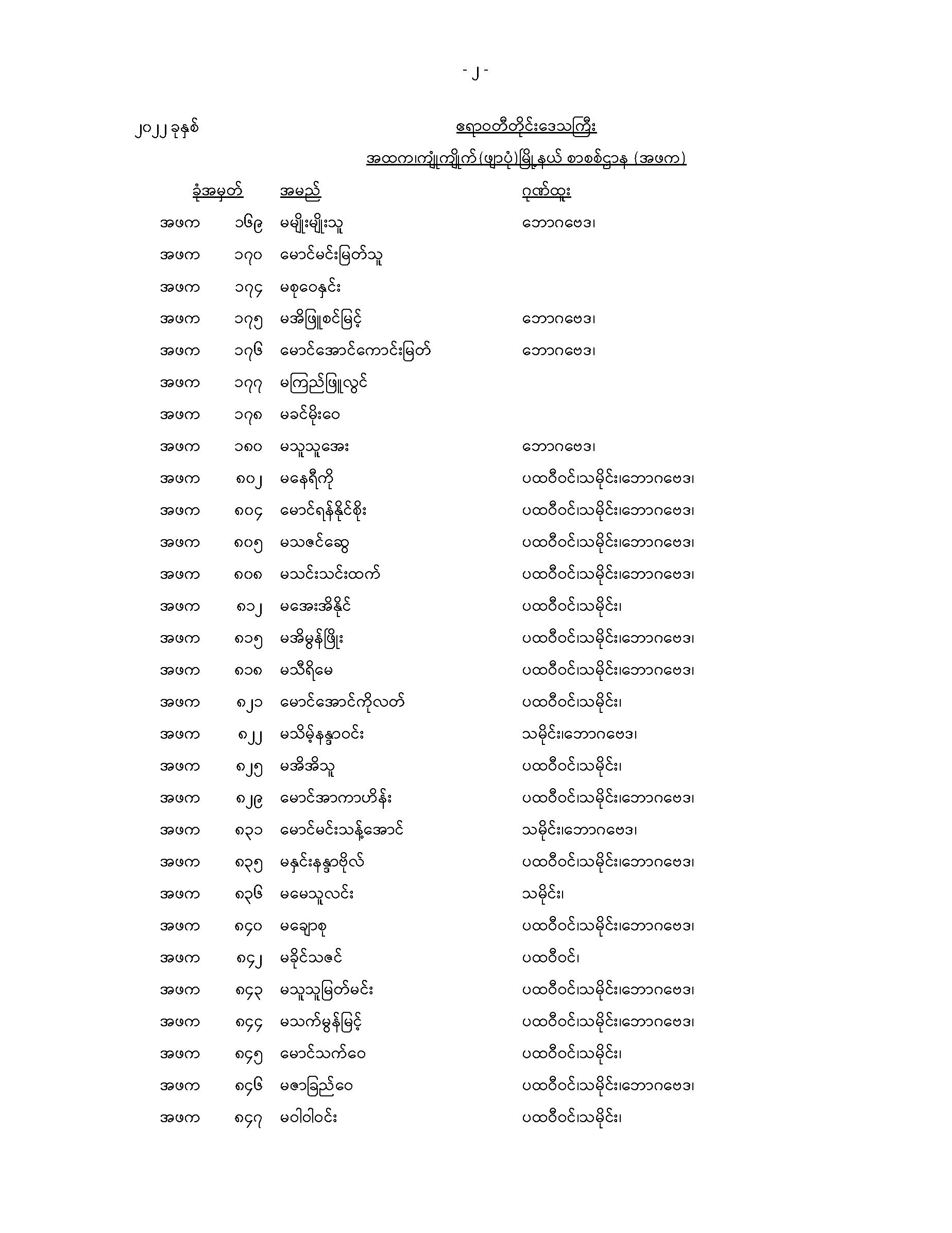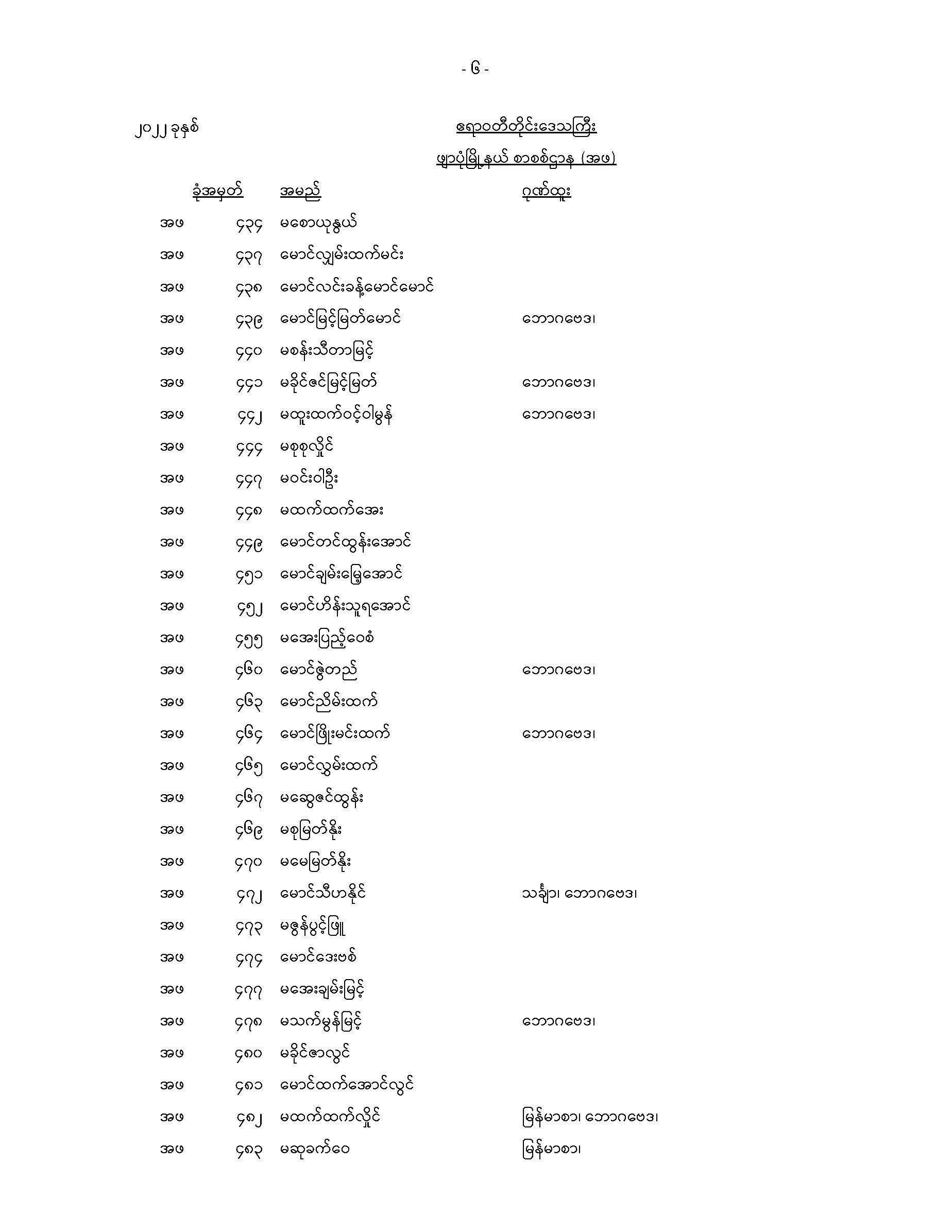 ဖျာပုံမြို့နယ်တက္ကသိုလ်ဝင်စာမေးပွဲအောင်စာရင်း