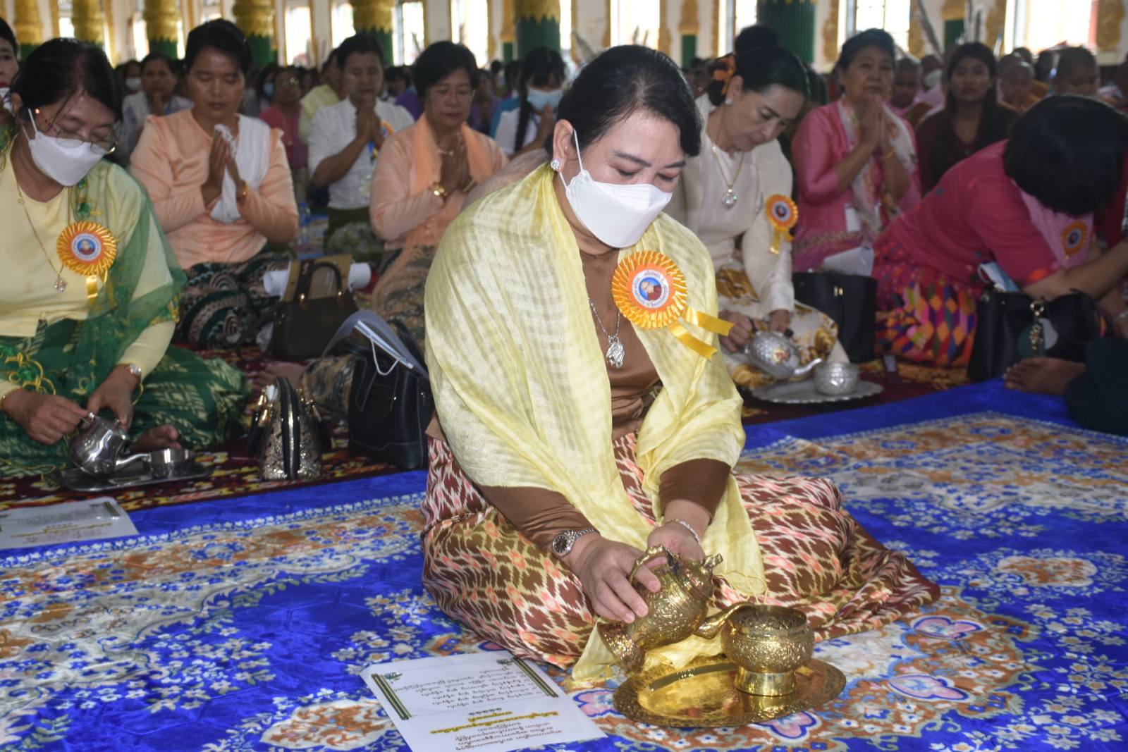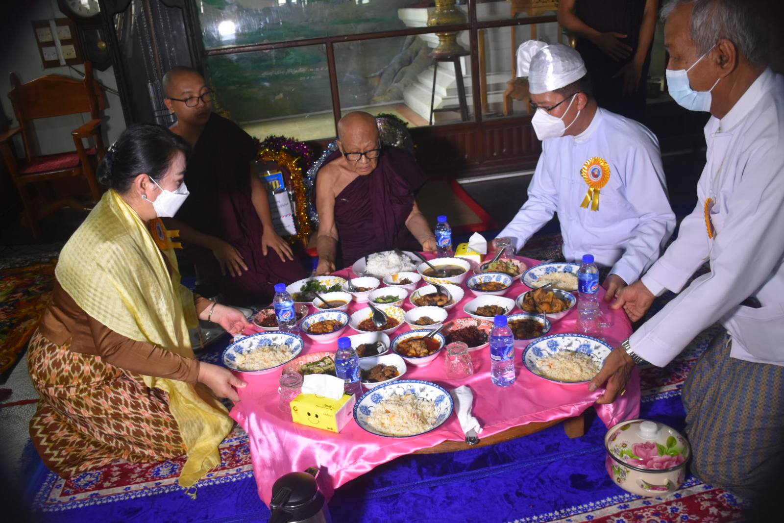 ထို့နောက် ဓမ္မဒူတဇေတဝန်တောရဆေကိန္ဒါရာမကျောင်းတိုက်၊ အဂ္ဂမဟာပဏ္ဍိတ၊ အပြည်ပြည်ဆိုင်ရာထေရဝါဒဗုဒ္ဓသာသနာပြုတက္ကသိုလ် ဒုတိယပါမောက္ခချုပ်ဆရာတော် ဒေါက်တာအရှင်ဆေကိန္ဒမှ အနုမောဒနာတရားချီးမြှင့်၍ လှူဒါန်းမှုအစုစုအတွက် ရေစက် သွန်းလောင်းအမျှပေးဝေခဲ့ပြီး ဗုဒ္ဓသာသနံ စိရံတိဌတု(၃)ကြိမ်ရွတ်ဆိုဆုတောင်း၍ အခမ်းအနားအား အောင်မြင်စွာ ရုပ်သိမ်းခဲ့ကာ ဆရာတော်အရှင်သူမြတ်များအား နေ့ဆွမ်းဆပ်ကပ်လှူဒါန်းခဲ့ကြပါသည်။