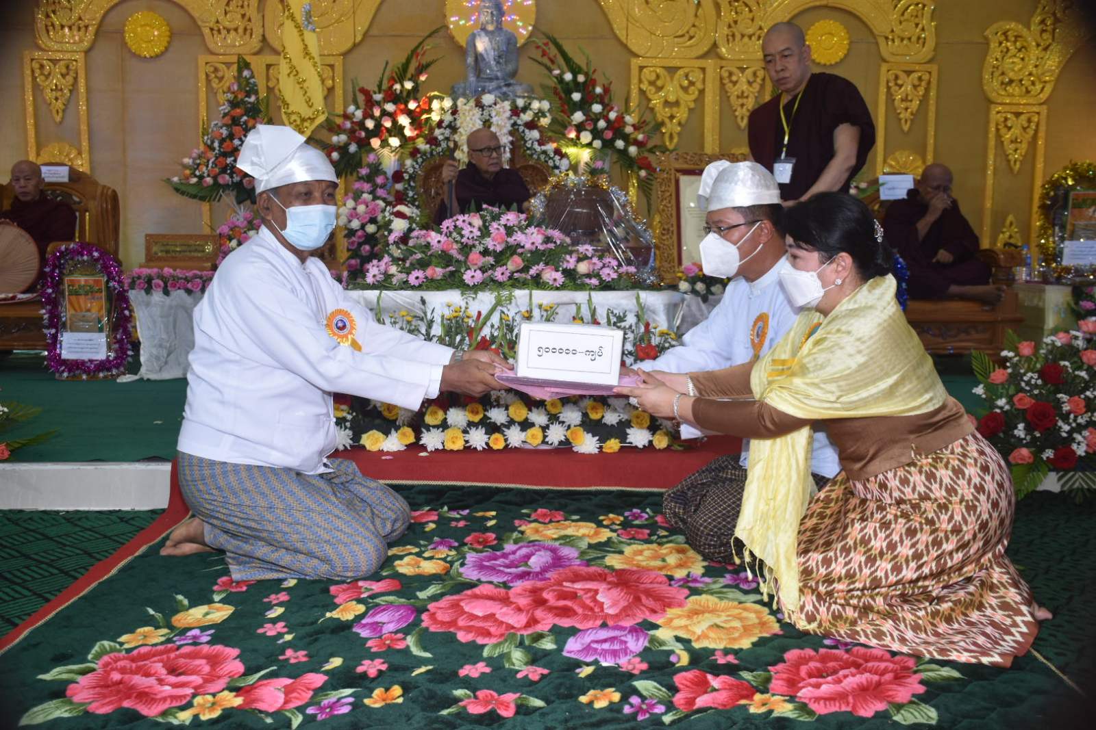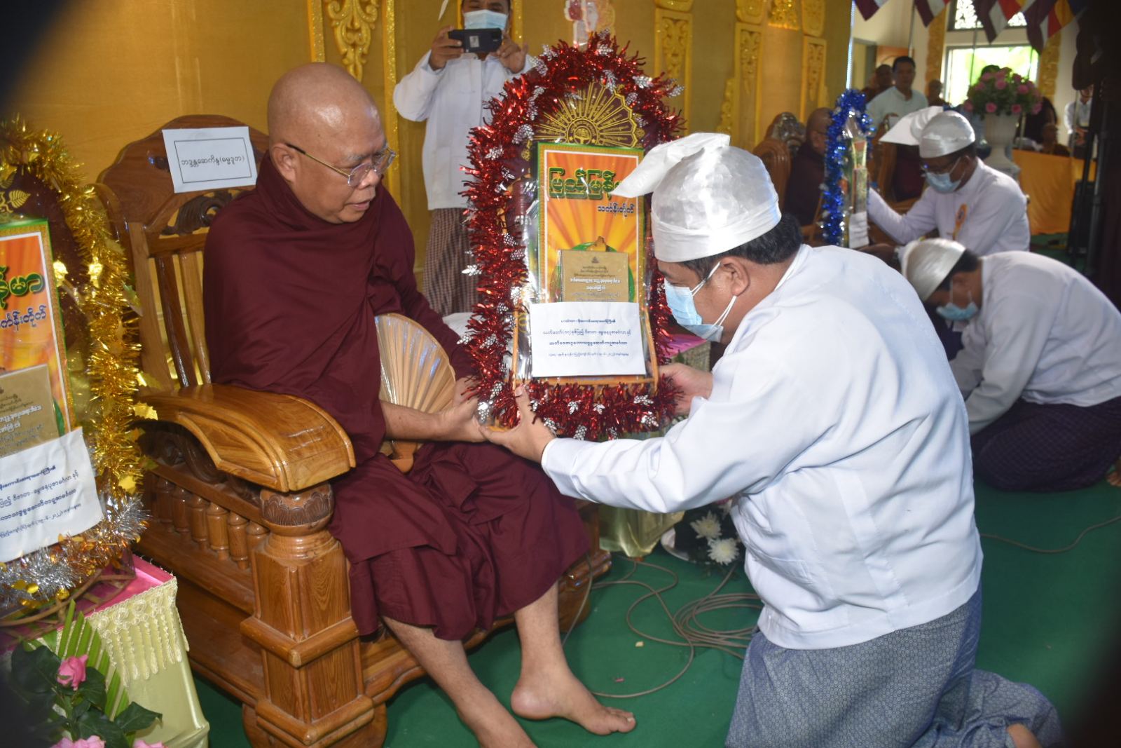 ရှေးဦးစွာအခမ်းအနားကို နမောတဿ သုံးကြိမ်ရွတ်ဆိုဘုရားကန်တော့၍ ဖွင့်လှစ်ခဲ့ပြီး ဟင်္သာတမြို့၊ မေဃဝတီပရိယတ္တိစာသင်တိုက် ဦးစီးပဓာနနာယက၊အဂ္ဂမဟာပဏ္ဍိတ၊ ဘဒ္ဒန္တသုမနာဘိဝံသအရှင်သူမြတ်ထံမှ ငါးပါးသီလခံယူဆောက်တည်ခဲ့ကြပြီး ဟင်္သာတမြို့၊ မိုးကောင်းပရိယတ္တိစာသင်တိုက်၏ ဦးစီးပဓာနနာယကအဂ္ဂမဟာပဏ္ဍိတ၊ အဘိဓဇမဟာရဋ္ဌဂုရု၊ အဘိဓဇအဂ္ဂမဟာသဒ္ဓမ္မဇောတိက၊ ဘဒ္ဒန္တသုဓမ္မာစာရာဘိဝံသမဟာထေရ်အရှင်သူမြတ် က သြဝါဒကထာချီးမြှင့်တော်မူပါသည်။ ဆက်လက်၍ တိုင်းဒေသကြီးဝန်ကြီးချုပ်မှ သာသနာရေးဆိုင်ရာများလျှောက်ထားခဲ့၍ (နိုဗယ်စကူးလ်) ဓမ္မဗိမာန်ကျောင်းတိုက်ဆရာတော် ဘဒ္ဒန္တဉာဏာလင်္ကာရမှ မိုးကောင်းပရိယတ္တိစာသင်တိုက်၊ ဦးစီးပဓာနနာယကဆရာတော် ဘဒ္ဒန္တသုဓမ္မာစာရာဘိဝံသမဟာထေရ်မြတ်၏ ထေရုပ္ပတ္တိကို ဖတ်ကြားပူဇော်ခဲ့ပြီး ရန်ကုန်တိုင်းဒေသကြီး၊ လှိုင်သာယာမြို့နယ်၊ အကျော်ပရိယတ္တိစာသင်တိုက်ဆရာတော် ဘဒ္ဒန္တရေဝတက ဂုဏဘိတ္ထဝ ဝန္ဒနာဂါထာနှင့် ထုတိထောမနာဂုဏပူဇာဂါထာတို့အားဖတ်ကြားပူဇော်ခဲ့ကာ တေးသံရှင်များက ရတုပိုဒ်စုံတို့ဖြင့်သီဆိုပူဇော်ကြပါသည်။ ထို့နောက် တိုင်းဒေသကြီးဝန်ကြီးချုပ်နှင့်ဇနီး၊ အစိုးရအဖွဲ့ဝင်များ၊ အလှူရှင်များမှ မိုးကောင်းပရိယတ္တိစာသင်တိုက်၏ ဦးစီးပဓာနနာယကဆရာတော် ဘဒ္ဒန္တ သုဓမ္မာစာရာဘိဝံသမဟာထေရ်မြတ်အား အဘိဓဇအဂ္ဂမဟာသဒ္ဓမ္မဇောတိကဘွဲ့တံဆိပ်တော် ထပ်ဆင့်ဆပ်ကပ်လှူဒါန်းခြင်း၊ ပင့်သံဃာတော်အရှင်သူမြတ်တို့အား လှူဖွယ်ဝတ္ထုပစ္စည်းများဆပ်ကပ်လှူဒါန်းခြင်းနှင့် အလှူငွေများအသီးသီးပေးအပ်လှူဒါန်းခဲ့ကြပါသည်။