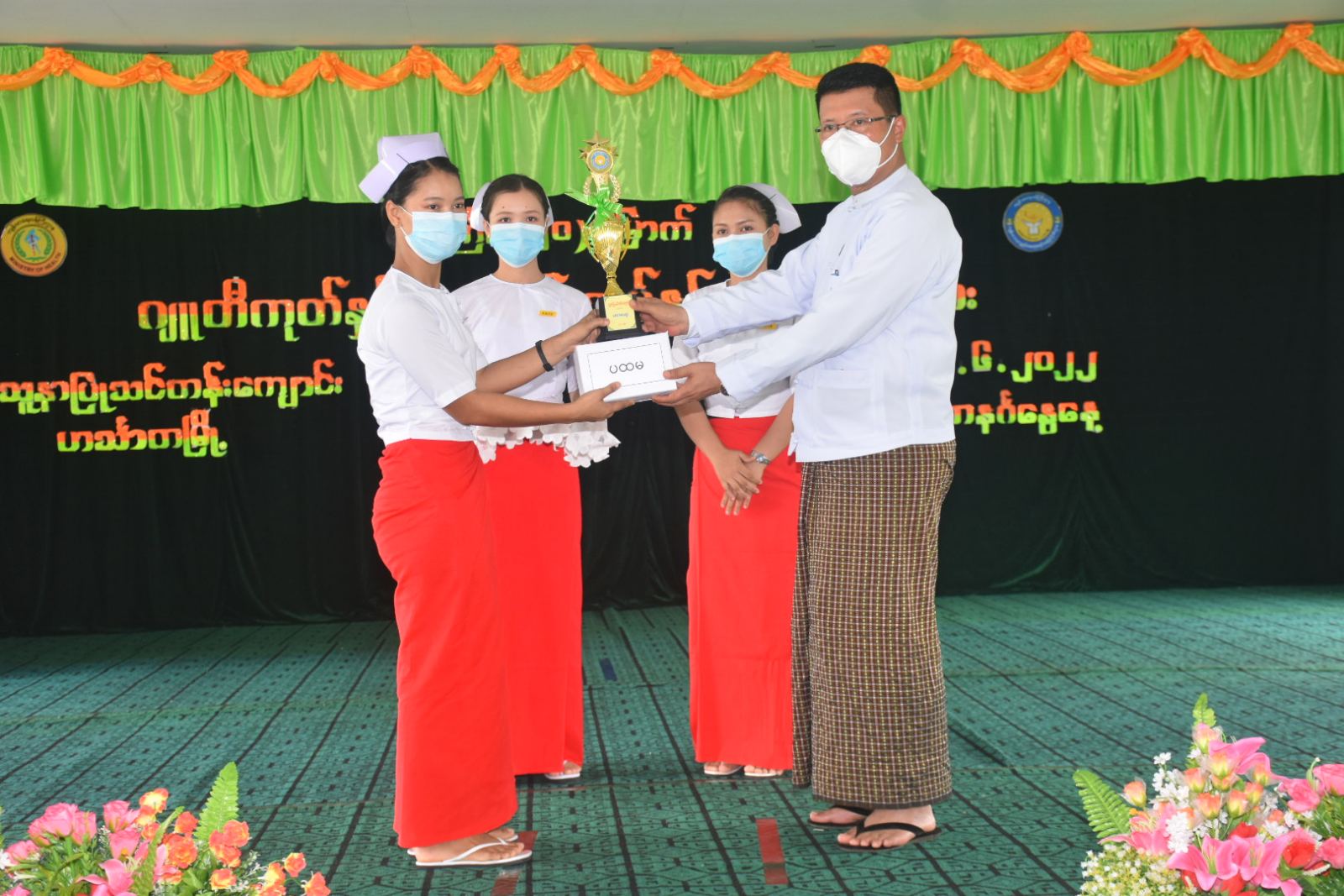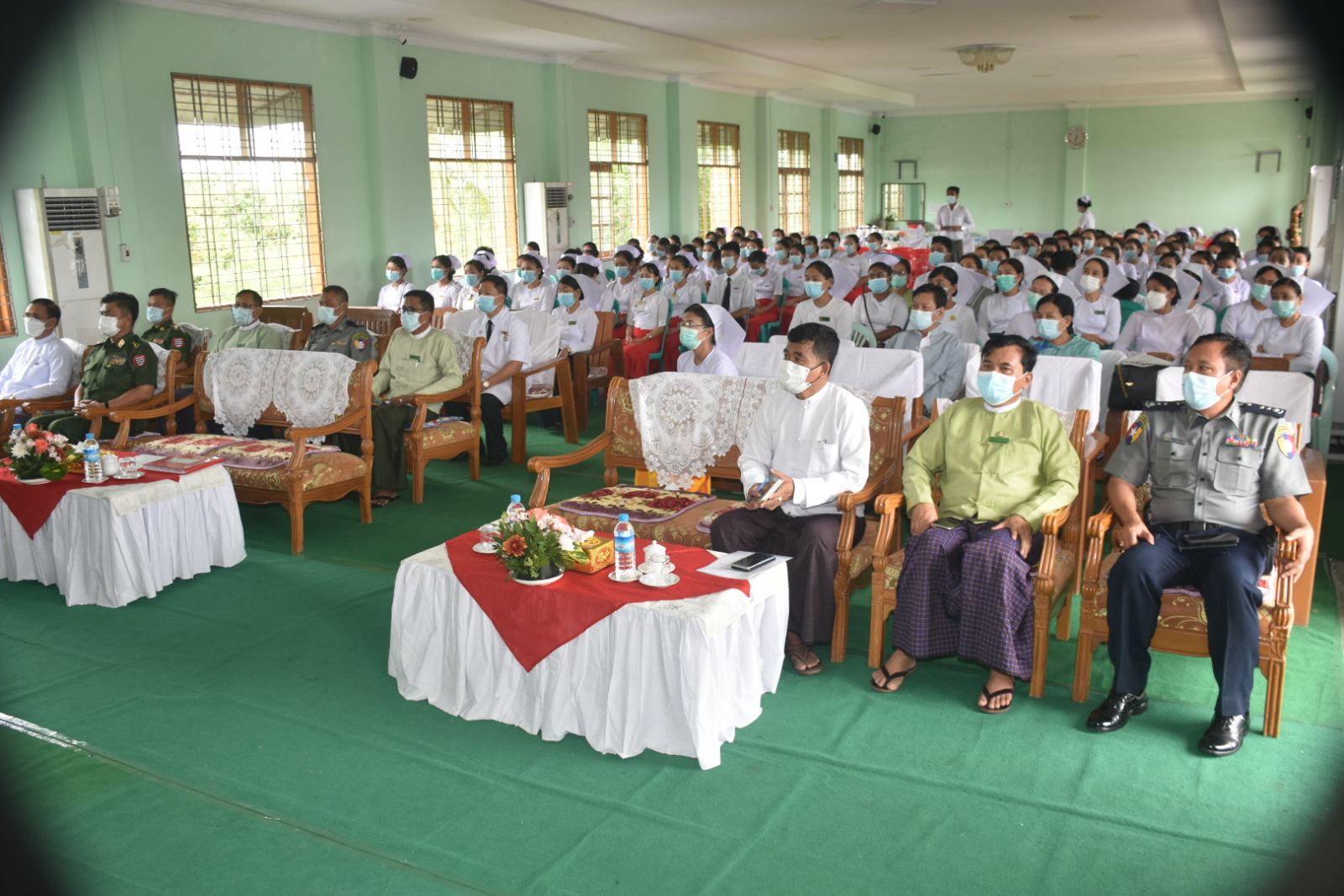 ရှေးဦးစွာ တိုင်းဒေသကြီးဝန်ကြီးချုပ်မှ သူနာပြု-သားဖွားများအနေဖြင့် တာဝန်အရမဟုတ်ဘဲ ကိုယ်ချင်းစာတရား၊ စာနာစိတ်အပြည့်ဖြင့် လူနာများအပေါ် ပြုစုစောင့်ရှောက်ကြသူများဖြစ်ပါကြောင်း၊ နိုင်ငံတော်၏ လူမှုရေးဦးတည်ချက်တစ်ခုဖြစ်သည့် တစ်မျိုးသားလုံးကျန်းမာကြံ့ခိုင်ရေးနှင့် ပညာရည်မြင့်မားရေးအတွက် အကောင်အထည် ဖော်ဆောင်ရွက်ရာတွင် ကျန်းမာရေးဝန်ထမ်းများ၏ ကဏ္ဍသည် လွန်စွာအရေးပါပါကြောင်း၊ တိုင်းဒေသကြီး၏ဒေသခံပြည်သူများအတွက် ကျန်းမာရေးစောင့်ရှောက်ပေးနိုင်ရေး သင်တန်းသူသင်တန်းသားများ၏ အင်အားများလိုပါကြောင်း၊ သင်တန်းသူသင်တန်းသားများအနေဖြင့်တိုင်းဒေသကြီး၏ ကျန်းမာရေးစောင့်ရှောက်မှုလုပ်ငန်းများတွင် ပါဝင်အားဖြည့်ဆောင်ရွက်ကြပြီး နိုင်ငံတော်နှင့်တိုင်းဒေသကြီးအတွက် အားကိုးအားထားပြုနိုင်သည့် ကျန်းမာရေးဝန်ထမ်းများဖြစ်ကြပါစေကြောင်းပြောကြားခဲ့ပါသည်။