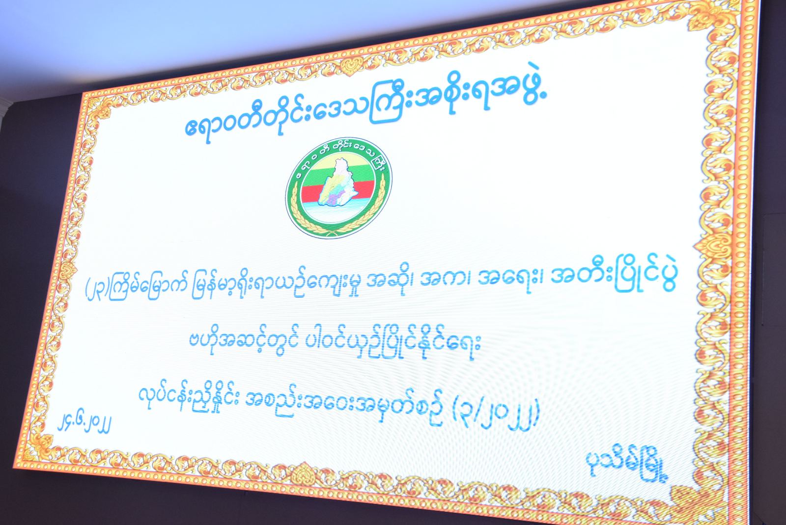 (၂၃)ကြိမ်မြောက်မြန်မာ့ရိုးရာယဉ်ကျေးမှု အဆို၊ အက၊အရေး၊ အတီးပြိုင်ပွဲ ဗဟိုအဆင့်တွင် ပါဝင်ယှဉ်ပြိုင်နိုင်ရေး တတိယအကြိမ် လုပ်ငန်းညှိနှိုင်းဆွေးနွေးပွဲကို တိုင်းဒေသကြီးအစိုးရအဖွဲ့ရုံး အစည်းအဝေးခန်းမ(၁)၌ ကျင်းပပြုလုပ်ရာ တိုင်းဒေသကြီးဝန်ကြီးချုပ် ဦးတင်မောင်ဝင်း၊ အစိုးရအဖွဲ့ဝင် ဝန်ကြီးများနှင့် (၂၃)ကြိမ်မြောက်မြန်မာ့ရိုးရာယဉ်ကျေးမှု အဆို၊အက၊အရေး၊အတီးပြိုင်ပွဲ ဗဟိုအဆင့်တွင် ပါဝင်ယှဉ်ပြိုင်နိုင်ရေးဦးစီးကော်မတီဝင်များ ၊ခရိုင်စီမံအုပ်ချုပ်ရေးမှူးများ တက်ရောက်ခဲ့ကြသည်။