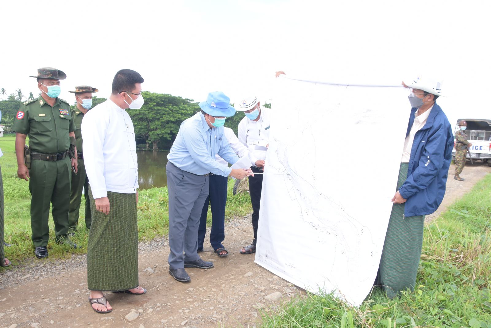 ထို့နောက် ဧရာဝတီ-ဟင်္သာတတာ တာတိုင် ၃/၀ ရှိ ရေကင်းစခန်းအမှတ်(၈) အိပ်ပျက်တာနယ်နှင့်ဟင်္သာတ ကမ်းနားတာ ဦးပါရဲရေကင်းစခန်းများရှိ မိုးရာသီ ရေဘေးကာကွယ်ရေး တာတမံ ကြိုတင်ပြင်ဆင်ခြင်း လုပ်ငန်းများအား တာတမံလုပ်သားများဖြင့်ဆောင်ရွက်နေမှုအခြေအနေ များ အရေးပေါ်ပစ္စည်းများ စုဆောင်းထားရှိမှုအခြေအနေများနှင့် ရေမှတ်တိုင်နှင့် ရေမှတ် မှတ်တမ်းရေးသွင်းထားမှုအားကြည့်ရှုစစ်ဆေးပြီးတိုင်းဒေသကြီးဝန်ကြီးချုပ်မှ မြစ်ရေမြင့်တက်လာပြီး စိုးရိမ်ရေမှတ်သို့ရောက်ရှိပါက ရေဘေးကာကွယ်ရေး တာတမံများ၏ အရေးပေါ်အခြေအနေ ကြိုတင်စီမံခန့်ခွဲမှုအစီအစဉ်အရ လွှင့်ထူရမည့် သတိပေးအချက်ပြအလံအစိမ်းရောင်၊ အဝါရောင်နှင့် အနီရောင်လွှင့်ထူဆောင်ရွက်ရမည့်အခြေအနေများသိရှိနားလည်ထားကြရန်၊ သဘာဝဘေးအန္တရာယ်များကို အချိန်မီကြိုတင်ကာကွယ်နိုင်ရန်အတွက် တာတမံများတာဝန်ချထားသည့်ရေကင်းအဖွဲ့များ၊ ဌာနဆိုင်ရာကြီးကြပ်ရေးအဖွဲ့များ၊ ဒေသခံပြည်သူများက ရေဘေးကာကွယ်ရေးနည်းလမ်းများအတိုင်း ဂရုတစိုက်စောင့်ကြည့်ကြရန်၊ မြစ်ရေမှတ်တမ်းရေးသွင်းခြင်းများကိုစနစ်တကျ ရေးသွင်းဆောင်ရွက်ရန်နှင့် ထူးခြားမှုရှိပါကသတင်းပေးပို့ခြင်းလုပ်ငန်းများကိုမြန်ဆန်မှန်ကန်စွာ တက်ညီလက်ညီပူး ပေါင်းဆောင်ရွက်ကြရန်ပြောကြားခဲ့သည်။