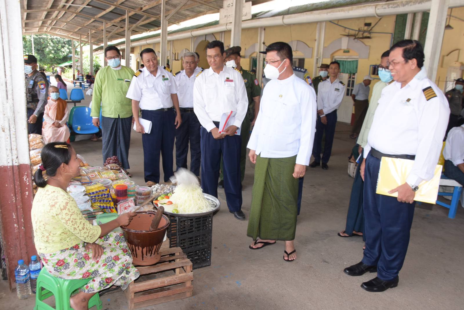 ဆက်လက်၍ တိုင်းဒေသကြီးဝန်ကြီးချုပ်နှင့်အဖွဲ့သည် သင်္ဟာတဘူတာသို့သွားရောက်၍ ဘူတာရုံအတွင်း လှည့်လည်ကြည့်ရှုစစ်ဆေးခဲ့ပြီး ခရီးသွားပြည်သူများနှင့် ရင်းရင်းနှီးနှီးတွေ့ဆုံခဲ့ကာ သွားလာမှုအခြေအနေများမေးမြန်းခဲ့ပြီး ဘူတာရုံးခန်းတွင် မြန်မာ့မီးရထားလုပ်ငန်း တိုင်းတာဝန်ခံမှ ခရီးစဉ်ပြေးဆွဲမှု၊ ခရီးသည်များစီးနင်းလိုက်ပါမှု၊ ကုန်စည်တင်ဆောင်မှုများအား ရှင်းလင်းတင်ပြခဲ့ရာ တိုင်းဒေသကြီးဝန်ကြီးမှ ခရီးသွားပြည်သူများ အဆင်ပြေစွာသွားလာနိုင်ရေး၊ ကုန်စည်တင်ဆောင်မှုများပိုမိုဆောင်ရွက်နိုင်စေရေး၊ ဘူတာရုံသန့်ရှင်းသာယာရေးဆောင်ရွက်ထားရှိရန်မှာကြားခဲ့သည်။
