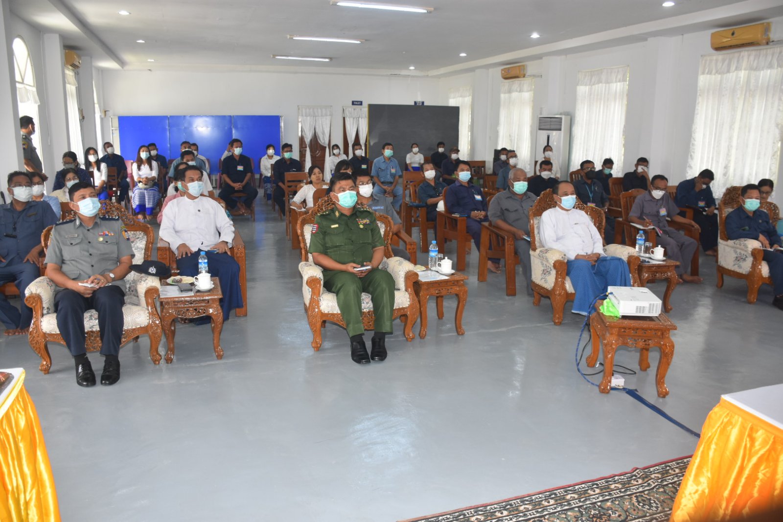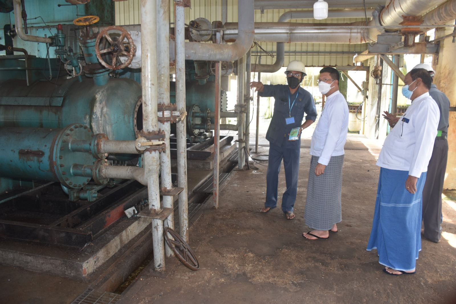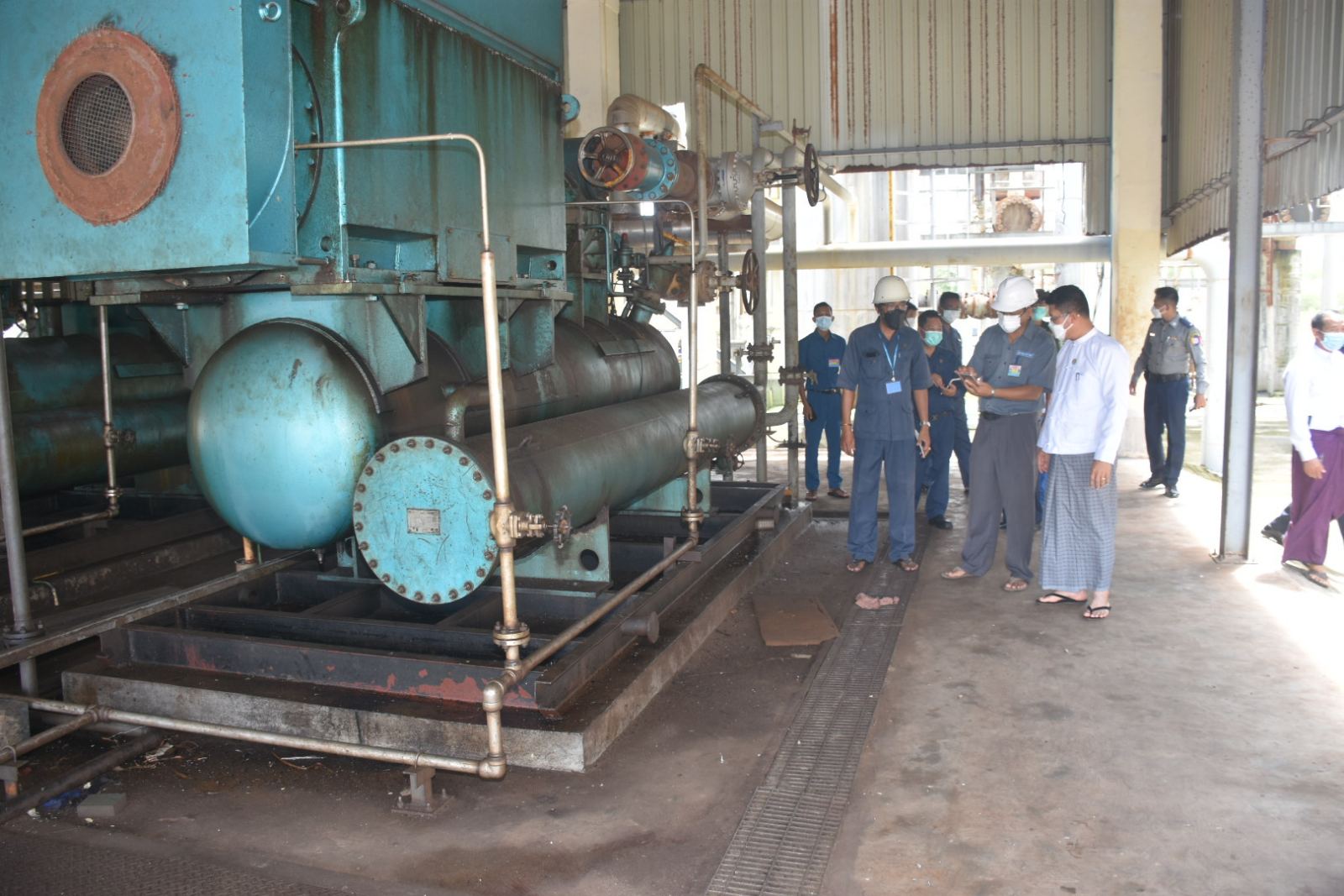 ရှေးဦးစွာ ခေတ္တစက်ရုံမှူးက ဝန်ထမ်းခန့်ထားမှု အခြေအနေများ၊ ထုတ်လုပ်နိုင်မှုစွမ်းရည်နှင့် ကုန်ကြမ်းလိုအပ်ချက်အခြေအနေများ၊ အမိုးနီးယားနှင့် ယူရီးယားထုတ်လုပ်ပုံအဆင့်ဆင့်၊ ဘဏ္ဍာနှစ်အလိုက် ယူရီးယားဓာတ်မြေဩဇာ ထုတ်လုပ်မှုအခြေအနေများနှင့် ဖြန်ဖြူးမှု အခြေအနေများ၊ စက်လည်ပတ်ရေးအတွက် ပြင်ဆင်ဆောင်ရွက်ခဲ့မှုနှင့် စက်ပြုပြင်မှုမှတ်တမ်းများအား Power Point ဖြင့်ရှင်းလင်းတင်ပြသည်။ ယင်းနောက် တိုင်းဒေသကြီးဝန်ကြီးချုပ်က “ မိမိတို့အစိုးရအဖွဲ့အနေဖြင့် ယခင်စက်ရုံပြန်လည်လည်ပတ်နိုင်ရေး ပြင်ဆင်ဆောင်ရွက်နေသည့်ကာလများကပင် စက်ရုံဝန်ထမ်းများနှင့်လာရောက် တွေ့ဆုံအားပေးခဲ့ပြီး အမြန်ဆုံးလည်ပတ်နိုင်ရေး သက်ဆိုင်ရာတာဝန်ရှိသူများ၊ ဌာနဆိုင်ရာများကို တွန်းအားပေးဆောင်ရွက်ခဲ့ပါကြောင်း၊ စက်ရုံမှူးနှင့် ဝန်ထမ်းများ၏ ကြိုးစားမှုကြောင့် ပြန်လည်လည်ပတ်နိုင်ခဲ့ပြီးတန်ချိန်၂ သောင်းကျော် ထုတ်လုပ်နိုင်ခဲ့ကာ နွေစပါးစိုက်ရာသီတွင် တောင်သူများထံသို့ စျေးနှုန်းသက်သာစွာဖြင့် ဆက်လက်ဖြန့်ဖြူးပေးနိုင်ခဲ့ကြောင်း၊ စက်ရုံနှစ်ပတ်လည်စက်ပြုပြင်မှု(Annual Shutdown) ကာလအတွင်း စက်ရုံလည်ပတ်နိုင်ရေး ပြင်ဆင်ဆောက်ရွက်ခြင်းများအဆင့်သင့်ဖြစ်စေရေး လာရောက်ကြည့်ရှုစစ်ဆေးခြင်းဖြစ်ကြောင်း၊ မကြာမီဓာတ်ငွေ့ပိုလွှတ်တော့မည်ဖြစ်၍ ဓာတ်မြေသြဇာထုတ်လုပ်နိုင်ရေး ပြင်ဆင်ရမည့် အစိတ်အပိုင်းများပြင်ဆင်ထားရှိပြီး စွမ်းအားပြည့်လည်ပတ်နိုင်ရေးဆောင်ရွက်ရန်လိုပါကြောင်း၊ လျှပ်စစ်ဓာတ်အား လိုအပ်ချက်ကို ပြန်လည်ပို့လွှတ်နိုင်ရေးကြိုတင် ညှိနှိုင်း ဆောင်ရွက်ထားရန်လည်းလိုအပ်မည်ဖြစ်ကြောင်း၊ စက်ရုံကောင်းမွန်စွာလည်ပတ်နိုင်ရေးနှင့် ဓာတ်မြေဩဇာများ ပြန်လည်ထုတ်လုပ်နိုင်ပါက နိုင်ငံတော်နှင့် တိုင်းဒေသကြီးအတွက်သာမက ဒေသခံတောင်သူများအတွက်ပါ သွင်းအားစု လိုအပ်ချက်များနှင့် ဈေးနှုန်းကြီးမြင့်မှုများအား အတိုင်းတာတစ်ခုအထိ ပံ့ပိုးပေးနိုင်မည်ဖြစ်ကြောင်းနှင့် စက်ရုံလုံခြုံရေး၊ သန့်ရှင်းသာယာလှပရေးအတွက် အလေးထားဆောင်ရွက်ရွက်ရန်လိုပ်အပ်ကြောင်း”ပြောကြားပြီး ဝန်ထမ်းများအတွက် ကြက်ဥ၊ခေါက်ဆွဲခြောက်၊ကော်ဖီမစ် အစရှိသည့် စားသောက်ဖွယ်ရာများအား ထောက်ပံ့ပေးအပ်ကာ စက်ရုံအတွင်း စက်ရုံလည်ပတ်နိုင်ရေး ပြင်ဆင်ဆောင်ရွက်ထားရှိမှုများကို လှည့်လည်ကြည့်ရှုစစ်ဆေးခဲ့ပါသည်။
