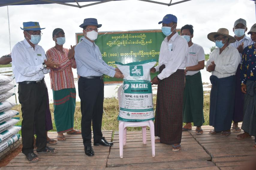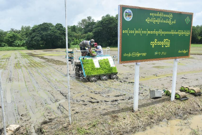 ဧရာဝတီတိုင်းဒေသကြီးအစိုးရအဖွဲ့ဝန်ကြီးချုပ်ဦးတင်မောင်ဝင်းသည် ဇူလိုင်လ ၁၀ ရက်နေ့ နေ့လည်ပိုင်းတွင် တိုင်းဒေသကြီးအစိုးရအဖွဲ့ဝင်များ၊ တိုင်းဒေသကြီး၊ ခရိုင်နှင့်မြို့နယ်အဆင့်ဌာနဆိုင်ရာများလိုက်ပါလျက် ဝါးခယ်မမြို့နယ်၊ သဲကုန်း/ ကြာဖြူကျေးရွာ၊ တောင်သူဦးရွှေပွား၏ လယ်မြေတွင် စိုက်ပျိုးရေးဦးစီးဌာနမှဆောက်ရွက်သည့် ပျိုးဗန်းဖြင့်ပျိုးထောင်ထားသည့်ပျိုးပင်များကို ကောက်စိုက်စက်ဖြင့်စိုက်ပျိုးခြင်း ကွင်းသရုပ်ပြပွဲတက်ရောက်ခဲ့ပြီး ကောက်စိုက်စက်ဖြင့် စိုက်ပျိုးမှုကို ကြည့်ရှုအားပေးခဲ့ကာ တောင်သူများနှင့်တွေ့ဆုံ၍ တိုင်းဒေသကြီးအနေဖြင့် မိုးစပါး၊ နွေစပါးများကိုပန်းတိုင်အထွက်နှုန်းများရရှိစေရေးကြိုးပမ်းဆောင်ရွက်လျက်ရှိပါကြောင်း၊ တောင်သူများအနေဖြင့် အထွက်တိုး မျိုးကောင်းမျိုးသန့်များသုံးစွဲကြရန်၊ စနစ်တကျမြေပြင်ခြင်းလုပ်ငန်းများဆောင်ရွက်ကြရန်၊ သဘာဝမြေသြဇာနှင့် ဓာတ်မြေသြဇာများကိုအချိုးကျသုံးစွဲကြရန်၊ မိရိုးဖလာစိုက်ပျိုးနည်းများအပြင်ခေတ်မီစိုက်ပျိုးနည်းစနစ်များ၊ ခေတ်မီစက်ကိရိယာများအသုံးပြုဆောင်ရွက်ကြရန်မှာကြားခဲ့ပြီး တစ်ဧက တင်း၁၀၀ထွက်ရှိရေး ဧက၁၀၀ စံပြကွက် တောင်သူများသို့ ဓာတ်မြေသြဇာအိတ် ၁၀၀ ပေးအပ်ခဲ့သည်။