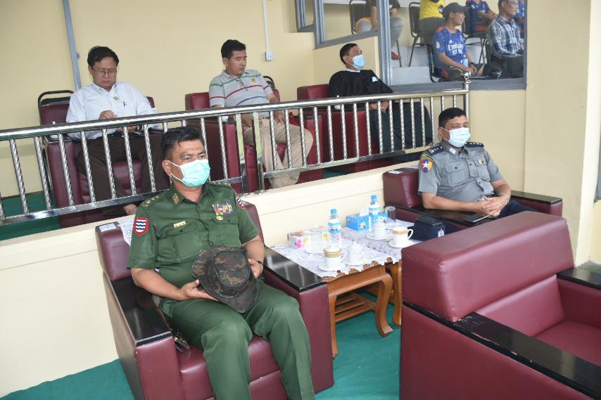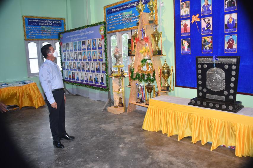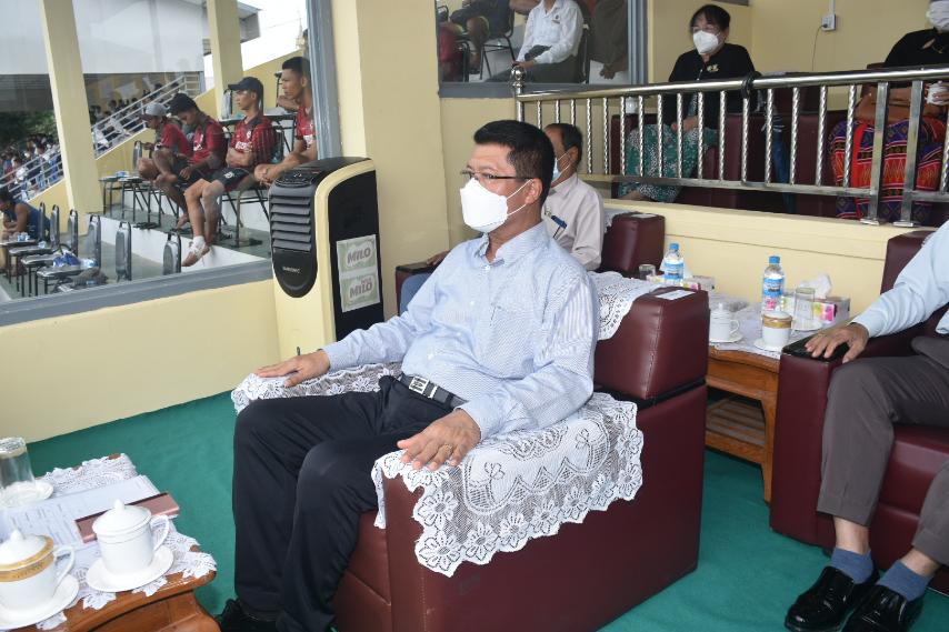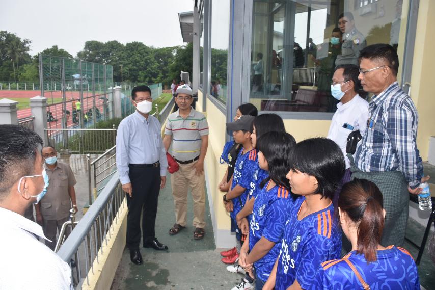 ဆက်လက်၍ ၂၀၂၂ခုနှစ်၊ ပြည်နယ်နှင့်တိုင်းဒေသကြီး အသက်၁၉နှစ်အောက် အမျိုးသားဘောလုံးပြိုင်ပွဲသို့ဝင်ရောက်ယှဉ်ပြိုင်မည့် တိုင်းဒေသကြီး အသက်၁၉နှစ်အောက် အမျိုးသားဘောလုံးလက်ရွေးစင်အသင်းနှင့် ရွှေကျွန်းကလပ် အသင်းတို့၏ ခြေစမ်းပွဲယှဉ်ပြိုင်ကစားမှုများကို ကြည့်ရှုအားပေးသည်။ ထို့နောက် ခြေစွမ်းပွဲယှဉ်ပြိုင်ကစားမှုများ လာရောက်ကြည့်ရှုအားပေးသည့် ပုသိမ်တက္ကသိုလ် ဘာသာရပ်အလိုက်အမျိုးသား၊ အမျိုးသမီး အသင်းအားကစားသမား၊ တိုင်းဒေသကြီး အသက်၁၉နှစ်အောက် အမျိုးသားဘောလုံးလက်ရွေးစင်အသင်းအားကစားသမားများနှင့် ရင်းရင်းနှီးနှီးတွေ့ဆုံ၍ စနစ်တကျသင်ယူလေ့ကျင့်ကြရန်၊ နည်းစနစ်မှန်မှန်လေ့ကျင့်ကြရန်၊ နည်းပြများ၏ လေ့ကျင့်သင်ကြားပေးမှု များကိုလိုက်နာဆောင်ရွက်ကြရန်နှင့် ကျန်းမာကြံ့ခိုင်မှုရှိစေရေး အလေးထားဆောင်ရွက်ရန်နှင့် လိုအပ်သည်များကို ဖြည့်ဆည်းဆောင်ရွက်ပေးသွားမှာဖြစ်ကြောင်းအားပေးစကားများပြောကြားခဲ့ပါသည်။
