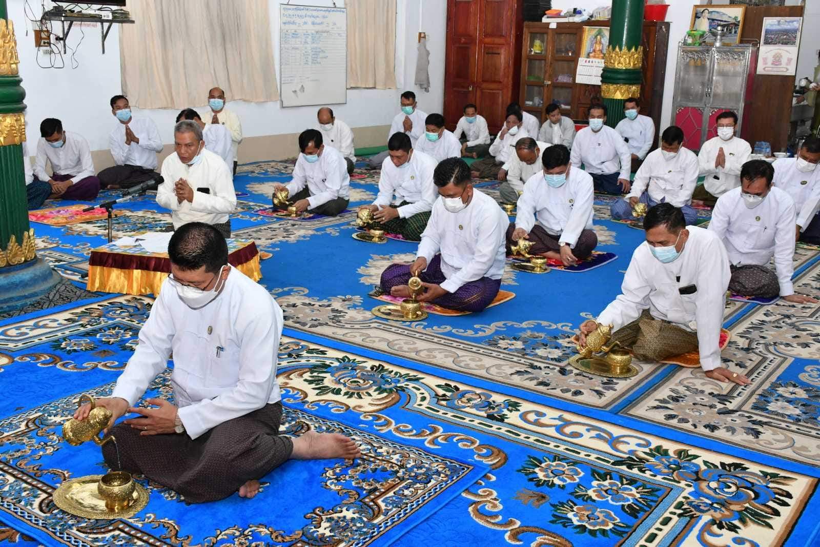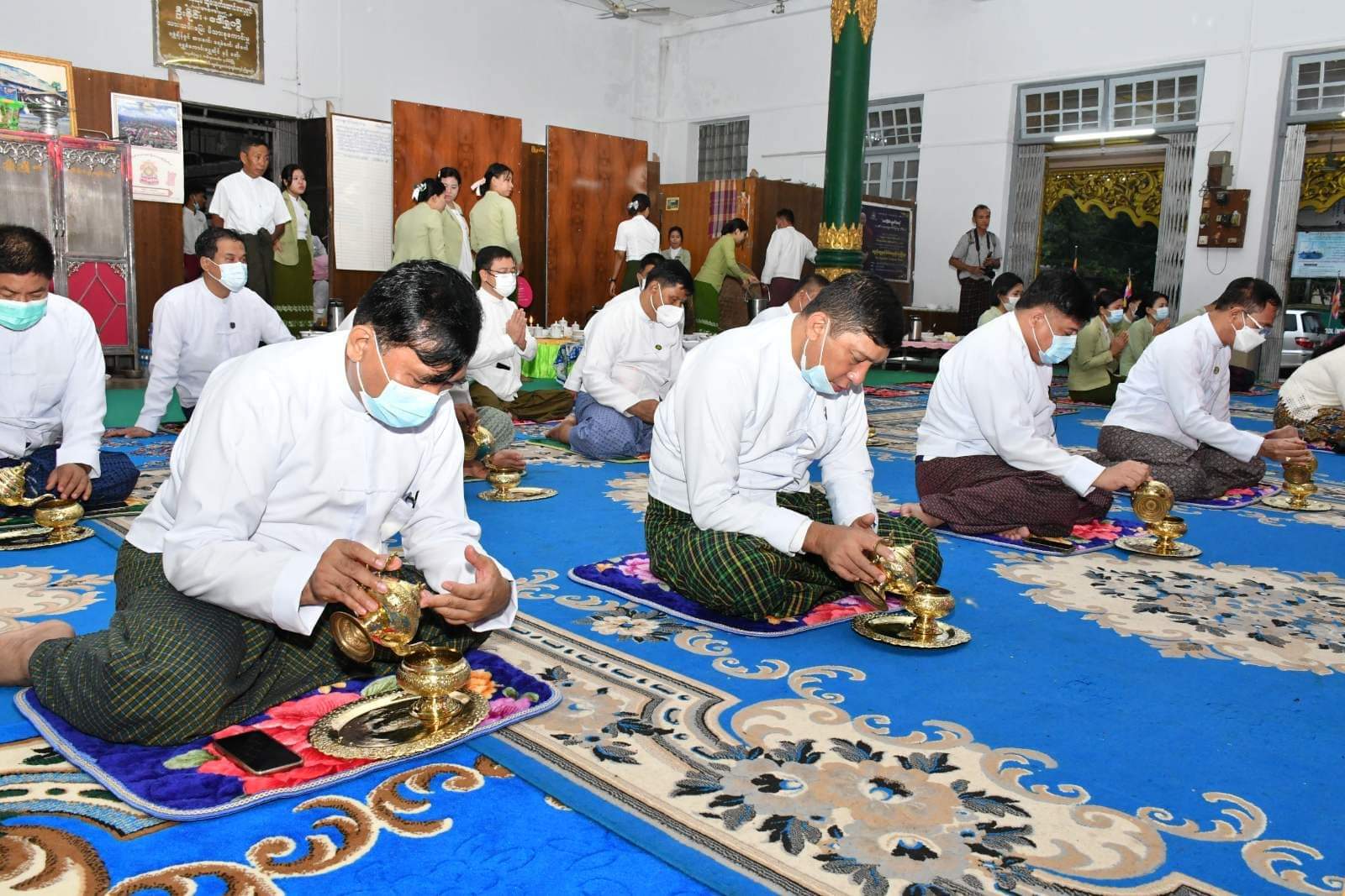 ဧရာဝတီတိုင်းဒေသကြီးအစိုးရအဖွဲ့မှ ဝါတွင်းကာလ မဟာသံဃိကဒါန အရုဏ်ဆွမ်းလောင်းလှူပူဇော်ပွဲကို ယနေ့နံနက် ၀၄း၃၀အချိန်တွင် ပုသိမ်မြို့ရွှေမုဋ္ဌောမဟာစေတီတော်မြတ်ကြီး၊ ဒေါ်လှယဥ် (ဝိသာခါ) ဓမ္မာရုံ၌ ပြုလုပ်ရာ ဧရာဝတီတိုင်းဒေသကြီးအစိုးရအဖွဲ့ဝန်ကြီးချုပ် ဦးတင်မောင်ဝင်းနှင့်ဇနီးဒေါ်ကြည်ကြည်ထွန်း၊ အစိုးရအဖွဲ့ဝင်ဝန်ကြီးများနှင့်ဇနီးများ၊ တိုင်းခရိုင်နှင့် မြို့နယ်အဆင့်ဌာနဆိုင်ရာများတက်ရောက်၍ အရုဏ်ဆွမ်းလောင်းလှူခဲ့ကြပါသည်။