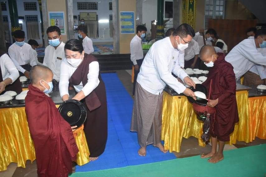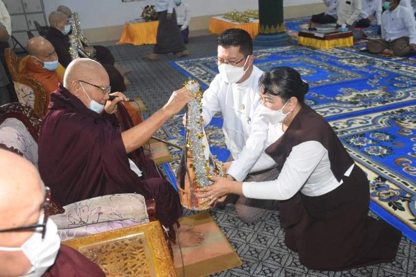 ဦးစွာ ပုသိမ်မြို့ရှိ ကျောင်းတိုက်အသီးသီးတွင် ဝါဆိုဝါကပ်တော်မူကြသောသံဃာတော်အရှင်သူမြတ်များမှ အရုဏ်ဆွမ်းခံကြွရောက်တော်မူလာကြကုန်သော သံဃာတော်(၁၉၃၄) ပါးတို့အား တိုင်းဒေသကြီးဝန်ကြီးချုပ် အမှူးပြုသော စေတနာရှင်အလှူရှင်များမှ အရုဏ်ဆွမ်းလောင်းလှုပူဇော်ခဲ့ကြသည်။ ထို့နောက် ပုသိမ်မြို့ရှိ ထေရ်ကြီးဝါကြီးသံဃာတော်အရှင်သူမြတ်ငါးပါးတို့ကို ဝါဆိုသက်န်းနှင့်လှူဖွယ်ပစ္စည်းများ ဆက်ကပ်ခြင်းနှင့် ဝါတွင်းကာလ အဋ္ဌာရသမ(၁၈)ကြိမ်မြောက် အရုဏ်ဆွမ်းလောင်းလှူပူဇော်ပွဲ ရေစက်ချမင်္ဂလာ အခမ်းအနား ဆက်လက်ပြုလုပ်ရာ ဆရာတော် အရှင်သူမြတ်များနှင့် ဧည့်ပရိတ်သတ်တို့မှ “နမောတဿ ” (၃)ကြိမ်ရွတ်ဆို ဘုရားကန်တော့၍ဖွင့်လှစ်ခဲ့ပြီး နိုင်ငံတော်ဩဝါဒစရိယ၊ ပုသိမ်မြို့၊ နိဂြောဓာရုံညောင်ပင်သာ ပရိယတ္တိစာသင်တိုက် ပဓာန နာယကဆရာတော် အဂ္ဂမဟာပဏ္ဍိတ၊အဂ္ဂမဟာသဒ္ဓမ္မဇောတိကဓဇ၊အဘိဓဇမဟာရဌဂုရု ဘဒ္ဒန္တဝိဿုတ မဟာထေရ် အရှင်သူမြတ်ထံမှ ဝန်ကြီးချုပ်နှင့်ဧည့်ပရိသတ်များက ငါးပါးသီလ ခံယူဆောက်တည်ကြကာ ဆရာတော်သံဃာတော်အရှင်သူမြတ်များ ရွတ်ပွားသရဇ္ဈာယ် ချီးမြှင့်တော်မူသော ပရိတ်တရားတော်များအား ဆက်လက်နာယူ ကြည်ညိုကြသည်။ ယင်းနောက် အခမ်းအနားသို့ ကြွရောက်တော်မူလာကြသော ဆရာတော်သံဃာတော် အရှင်သူမြတ်များအား တိုင်းဒေသကြီး ဝန်ကြီးချုပ်နှင့်ဇနီးတို့က ဝါဆိုသင်္ကန်းနှင့် လှူဖွယ်ဝတ္ထုပစ္စည်းများနှင့် အသီးသီး ဆက်ကပ်လှူဒါန်းခဲ့ကြသည်။