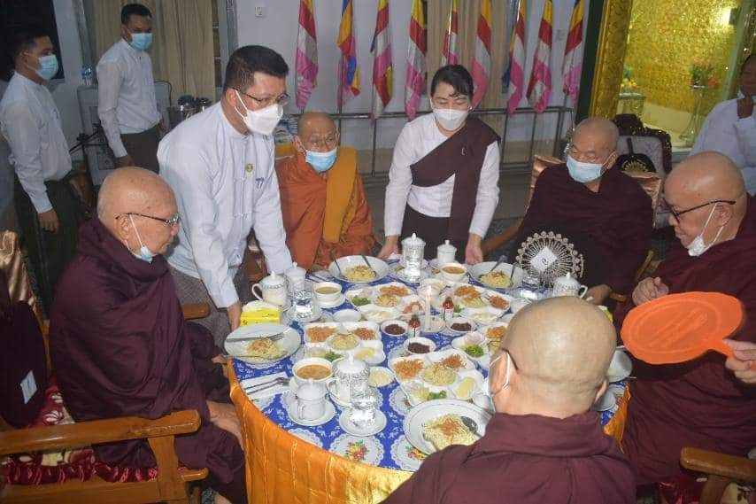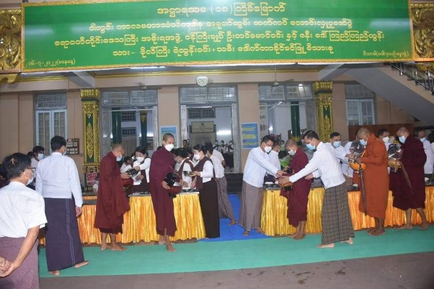 အဋ္ဌာရသမ(၁၈)ကြိမ်မြောက် ဝါတွင်းကာလ မဟာသံဃိကဒါန အရုဏ်ဆွမ်းလောင်းလှူပွဲကို ဇူလိုင်လ ၁၆ ရက်နေ့ နံနက် ၀၄း၃၀ အချိန်တွင်ပုသိမ်မြို့ရွှေမုဋ္ဌော မဟာစေတီတော်မြတ်ကြီး၊ ဒေါ်လှယဥ်(ဝိသာခါ)ဓမ္မာရုံ၌ပြုလုပ်ရာ ဧရာဝတီတိုင်းဒေသကြီးအစိုးရအဖွဲ့ဝန်ကြီးချုပ် ဦးတင်မောင်ဝင်းနှင့်ဇနီး၊ အစိုးရအဖွဲ့ဝင်ဝန်ကြီးများနှင့်ဇနီးများ၊တိုင်း၊ ခရိုင်နှင့်မြို့နယ်အဆင့်ဌာနဆိုင်ရာများ၊ စေတနာရှင်အလှူရှင်များတက်ရောက်၍အရုဏ် ဆွမ်းလောင်းလှူခဲ့ကြပါသည်။