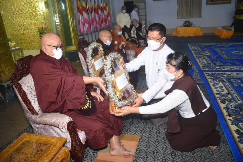 ဆက်လက်၍ ဧရာဝတီတိုင်းဒေသကြီး သံဃနာယကအဖွဲ့၊ ဥက္ကဌ (သုဓမ္မာ) မရမ်းချိုကျောင်းတိုက် ပဓာန နာယကဆရာတော် အဂ္ဂမဟာဂန္ထဝါစကပဏ္ဍိတ၊ အဂ္ဂမဟာသဒ္ဓမ္မဇောတိကဓဇ၊ ဘဒ္ဒန္တသောဘိတမဟာထေရ် အရှင်သူမြတ်ထံမှ အနုမောဒနာတရား နာကြား၍ လှူဒါန်းမှု အစုစုတို့အတွက် ရေစက်သွန်းချ အမျှပေးဝေခဲ့ကာ အခမ်းအနားအား “ဗုဒ္ဓသာသနံ စိရံ တိဌတု” (၃)ကြိမ်ရွတ်ဆို ဆုတောင်း၍ ရုပ်သိမ်းခဲ့ပြီး ဆရာတော်သံဃာတော် အရှင်သူမြတ်များအား အရုဏ်ဆွမ်းဆက်ကပ်လှူဒါန်းခဲ့ကြောင်းသိရသည်။