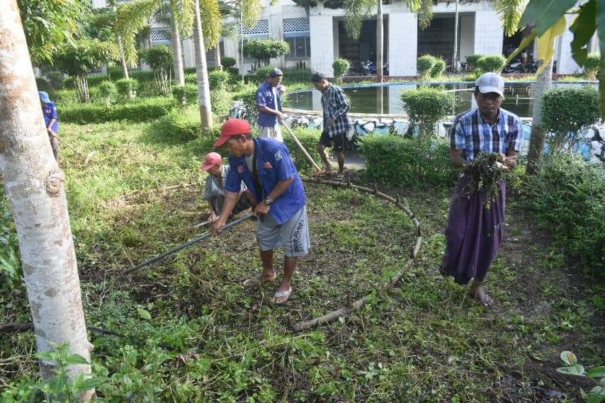 ဧရာဝတီတိုင်းဒေသကြီးဝန်ကြီးချုပ် ဦးတင်မောင်ဝင်းသည် တာဝန်ရှိသူများနှင့်အတူ ပုသိမ်တက္ကသိုလ်ဝင်း၌ ဌာနဆိုင်ရာဝန်ထမ်းများ၊ စည်ပင်သာယာရေးအဖွဲ့ဝန်ထမ်းများ၊ တက္ကသိုလ်ဝန်ထမ်းများ၊ ရပ်ကွက်နေပြည်သူလူထုများနှင့် နယ်မြေခံ တပ်ရင်း တပ်ဖွဲ့ဝင်များ စုစုပေါင်းအင်အား ၃၀၀ကျော်ဖြင့် ပုသိမ်တက္ကသိုလ် မိန်းလမ်းမတလျှောက် လမ်းဘေးဝဲယာ၊ လမ်းလယ်ကျွန်းများရှိ ခြုံနွယ်များရှင်းလင်းခြင်း၊ သစ်ပင်သစ်ကိုင်းများခုတ်ထွင်ရှင်းလင်းခြင်း၊ ပန်းအလှပင်များ ညီညာစွာရိတ်ဖြတ်ခြင်းများစသည့် စုပေါင်းသန့်ရှင်းရေး ဆောင်ရွက်နေမှုများအား ကြည့်ရှုအားပေးခဲ့ပြီး အမှိုက်များစနစ်တကျစွန့်ပစ်စေရေး၊ ပန်းအလှပင်များ၊ အရိပ်ရအပင်များစနစ်တကျ စိုက်ပျိုးရန်နှင့်ရေစီးရေလာကောင်းမွန်စေရေးနှင့် သန့်ရှင်းရေးလုပ်ငန်းများအား အပတ်စဉ် အလေးထားဆောင်ရွက်ရန် ပြောကြားခဲ့ပြီး အဝေးသင်တက္ကသိုလ် ဓာတုဗေဒဘာသာရပ်၊ ပထမနှစ်၊ ဒုတိယနှစ် နှင့် တတိယနှစ် ကျောင်းသား၊ကျောင်းသူများ တက်ရောက်ပညာသင်ကြားနေမှုအား ကြည့်ရှုအားပေးစကားများ ပြောကြားခဲ့ပါသည်။