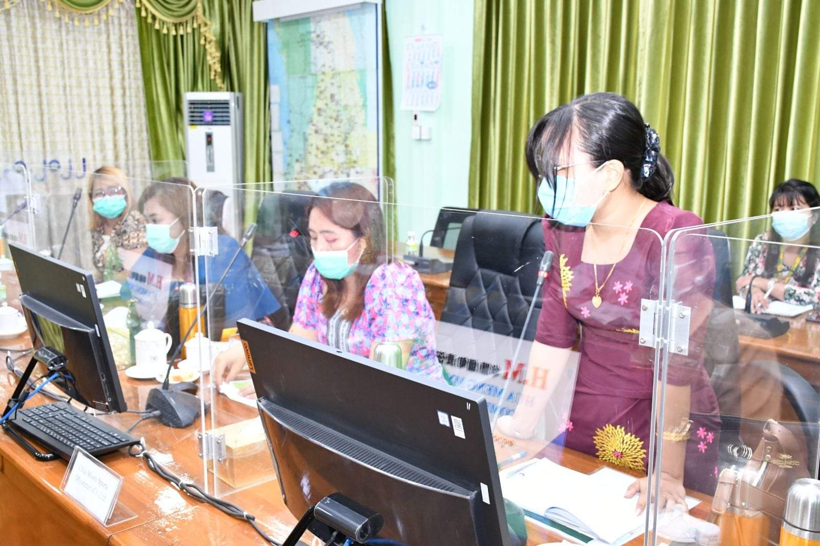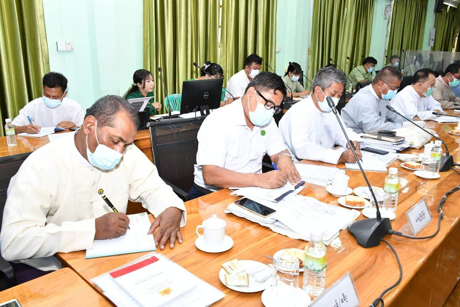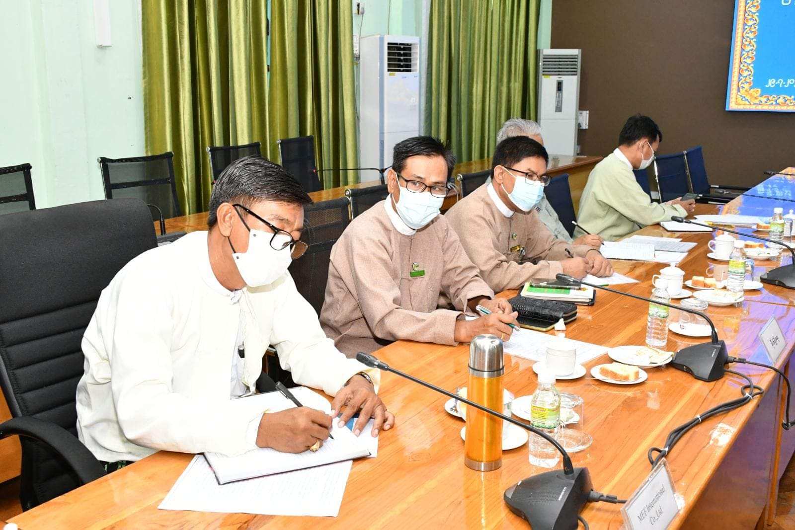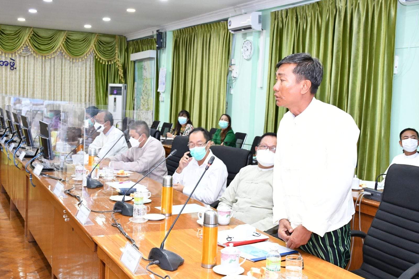 ဆက်လက်၍ Amava Apparel Ltd၊ Dong Long (Pathein)Garment Co.,Ltd၊ Chia Moon Sports (Myanmar)Co.,Ltd၊Hua Meng MyanmarCo.,Ltd၊Sea & LakeCo.,Ltd၊AAQSR Co.,Ltd၊Shwe Wah NadiCo.,Ltd၊Paddy StarCo.,Ltd၊International Green Land Co.,Ltd၊MEF International Co.,Ltdတို့မှ စီးပွားရေးလုပ်ငန်းရှင်များက အထည်ချုပ်လုပ်ငန်း၊ ဟိုတယ်လုပ်ငန်း၊တန်ဖိုးမြှင့်ဆန်ထုတ်လုပ်တင်ပို့ရောင်းချခြင်းလုပ်ငန်း၊ဂဏန်းပျော့ ထုတ်လုပ်တင်ပို့ရောင်းချခြင်းလုပ်ငန်းဆောင်ရွက်မှုများကို တိုင်းဒေသကြီးဝန်ကြီးချုပ်အားရှင်းလင်းတင်ပြခဲ့ကြသည်။ ယင်းနောက် တိုင်းဒေသကြီးရင်းနှီးမြှုပ်နှံမှုကော်မတီအဖွဲ့ဝင်များနှင့်စီးပွားရေးလုပ်ငန်းရှင်များကရင်းနှီးမြှုပ်နှံမှုလုပ်ငန်းများထပ်မံတိုးချဲ့မည့်အစီအမံများ၊ မြေအသုံးချမှုခွင့်ပြုချက်ရရှိရေး၊ လျှပ်စစ်မီးပိုမိုရရှိရေးဆွေးနွေးချက်များအပေါ် တိုင်းဒေသကြီးဝန်ကြီးချုပ်မှ ဌာနဆိုင်ရာများနှင့်ညှိနှိုင်းပေါင်းစပ်ပေးခဲ့ပြီးစိုက်ပျိုးမွေးမြူရေးအခြေခံသည့်စက်ရုံအလုပ်ရုံများ ပိုမိုတိုးတက်ရင်းနှီးမြှုပ်နှံလာစေရန်အတွက်အလားအလာကောင်းများကိုအကျယ်တ၀င့်ဆွေးနွေးခဲ့ကြောင်းသိရသည်။