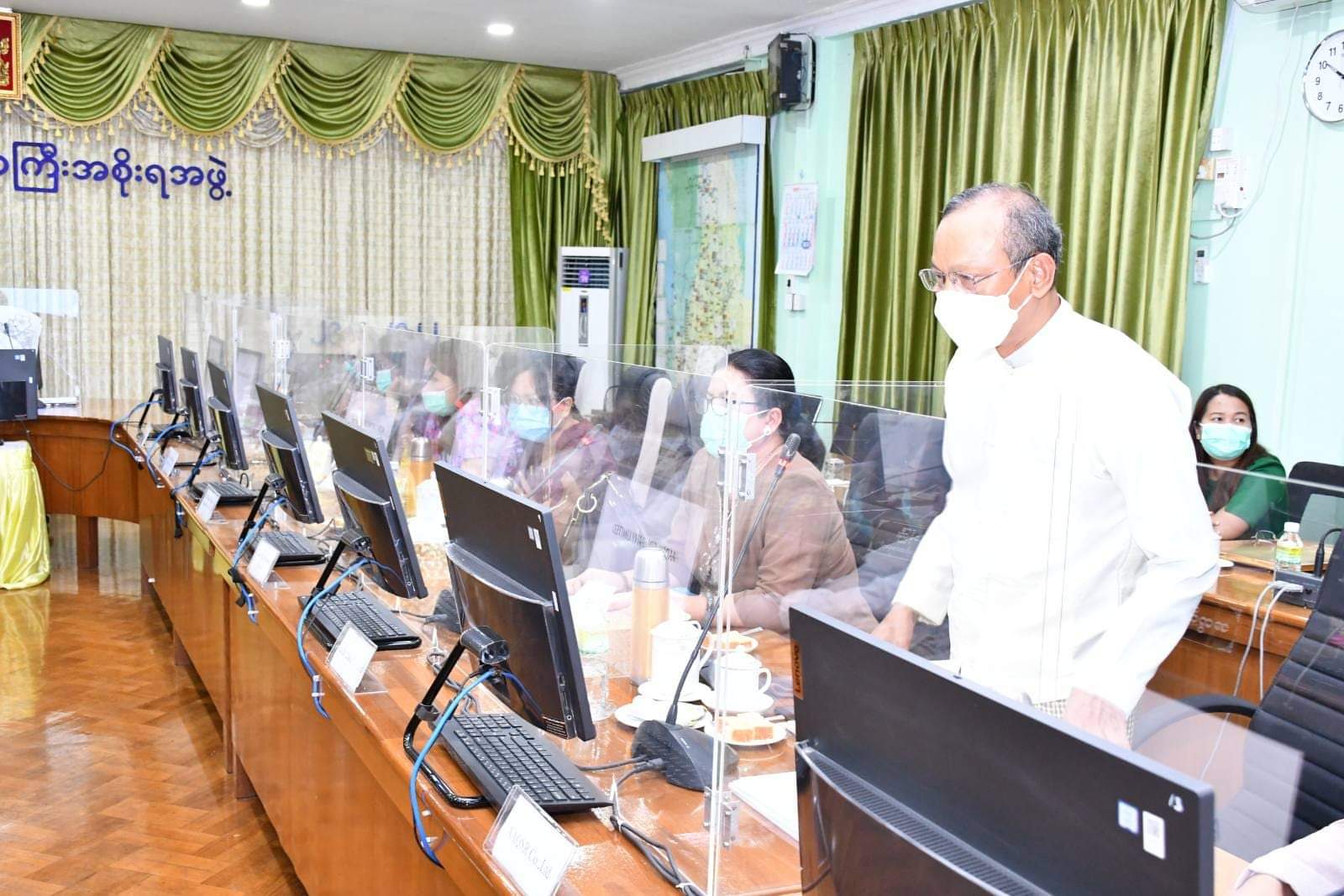 ယင်းနောက် တိုင်းဒေသကြီး ဝန်ကြီးချုပ်သည် ပုသိမ်ပြည်သူ့ဆေးရုံ ကိုးထပ်တိုးချဲ့ဆောင် ဆောက်လုပ်နေမှုအခြေအနေများအား သွားရောက်စစ်ဆေးခဲ့ရာ တာဝန်ရှိသူများက လုပ်ငန်းဆောင်ရွက်မှု အခြေအနေများအား ရှင်းလင်းတင်ပြခဲ့မှုအပေါ် တိုင်းဒေသကြီး ဝန်ကြီးချုပ်က သတ်မှတ်အရည်အသွေး စံချိန် စံညွှန်းများပြည့်မီရေး၊ လုပ်ငန်းခွင်အတွင်း အန္တရာယ်ကင်းရှင်းစေရေးနှင့် သတ်မှတ်ကာလများအတွင်း အချိန်မီပြီးစီးစေရေးတို့အား အလေးထားဆောင်ရွက်ကြရန် လမ်းညွှန်မှာကြားခဲ့ပြီး ဆေးရုံအတွင်းပတ်လမ်းခင်းခြင်းလုပ်ငန်းဆောင်ရွက်နေမှု၊ waste water Treatment ကန်ပြုလုပ်နေမှု၊ လူနာခန်းရှိToiletတွင်းလက်ကိုင်တန်းတပ်ဆင်ထားမှုနှင့် view pointတွင်compositeပြားများတပ်ဆင်ပြီးစီးမှုများကို လှည့်လည်ကြည့်ရှုစစ်ဆေးခဲ့ကြောင်းသိရသည်။