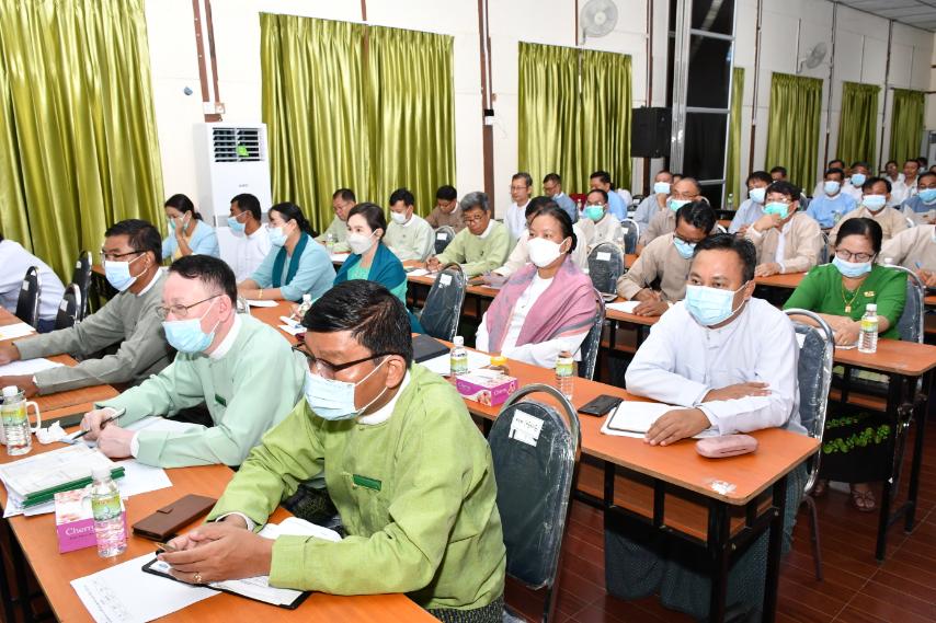 ဧရာဝတီတိုင်းဒေသကြီး၊ ပုသိမ်မြို့၊ ဧရာရွှေဝါခန်းမ၌ ၂၀၂၂ခုနှစ်၊ ဖေဖော်ဝါရီလမှ ဇူလိုင်လအထိ (၆)လတာ လုပ်ငန်းဆောင်ရွက်မှုများအပေါ် ညှိနှိုင်းအစည်းအဝေး ဒုတိယနေ့အား ယနေ့နံနက်ပိုင်းက ဆက်လက်ပြုလုပ်ရာ တိုင်းဒေသကြီး ဝန်ကြီးချုပ်ဦးတင်မောင်ဝင်း၊အစိုးရအဖွဲ့ဝင် ဝန်ကြီးများ၊တိုင်းအဆင့်ဌာနဆိုင်ရာများနှင့် ခရိုင်စီမံအုပ်ချုပ်ရေးအဖွဲ့ ဥက္ကဌများ တက်ရောက်ခဲ့ကြသည်။