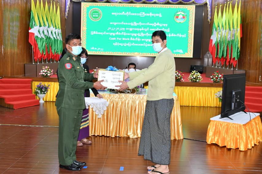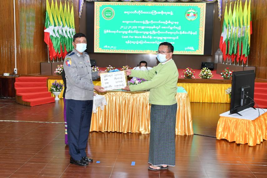ထို့နောက် တိုင်းဒေသကြီးဝန်ကြီးချုပ်မှ ပုသိမ်ခရိုင် မြစိမ်းရောင်၊ VDP၊ Cash For Work စီမံကိန်းလုပ်ငန်းများဆောင်ရွက်မည့် ကျေးရွာ ၉၀ အတွက် ကျပ်သန်း ၉၂၀၊ ကျုံပျော်ခရိုင် မြစိမ်းရောင်၊ VDP၊ Cash For Work စီမံကိန်းလုပ်ငန်း များဆောင်ရွက်မည့် ကျေးရွာ ၅၃ ရွာအတွက် ကျပ်သန်း ၅၆၀၊ ဟင်္သာတခရိုင် မြစိမ်းရောင်၊ VDP၊ Cash For Work စီမံကိန်းလုပ်ငန်းများဆောင်ရွက်မည့် ကျေးရွာ ၆၀ အတွက် ကျပ်သန်း ၆၄၀၊ မြန်အောင်ခရိုင် မြစိမ်းရောင်၊ VDP၊ Cash For Work စီမံကိန်းလုပ်ငန်းများဆောင်ရွက်မည့် ကျေးရွာ ၇၃ ရွာ အတွက် ကျပ်သန်း ၇၅၀ တို့ကိုသက်ဆိုင်ရာခရိုင်အုပ်ချုပ်ရေးမှူးများထံလည်းကောင်း၊ လုံခြုံရေးနှင့်နယ်စပ်ရေးရာဝန်ကြီးမှ မြောင်းမြခရိုင် မြစိမ်းရောင်၊ VDP၊ Cash For Work စီမံကိန်းလုပ်ငန်း များဆောင်ရွက်မည့် ကျေးရွာ ၅၁ ရွာအတွက် ကျပ်သန်း ၅၁၀၊ မအူပင်ခရိုင် မြစိမ်းရောင်၊ VDP၊ Cash For Work စီမံကိန်းလုပ်ငန်းများဆောင်ရွက်မည့် ကျေးရွာ ၇၄ ရွာ အတွက် ကျပ်သန်း ၇၄၀ကို သက်ဆိုင်ရာခရိုင်အုပ်ချုပ်ရေးမှူးများထံလည်းကောင်း၊ လမ်းပန်းဆက်သွယ်ရေးဝန်ကြီးမှ ဖျာပုံခရိုင်မြစိမ်းရောင်၊ VDP၊ Cash For Work စီမံကိန်းလုပ်ငန်း များဆောင်ရွက်မည့် ကျေးရွာ ၆၉ ရွာအတွက် ကျပ်သန်း ၇၅၀နှင့် လပွတ္တာခရိုင် မြစိမ်းရောင်၊ VDP၊ Cash For Work စီမံကိန်းလုပ်ငန်း များဆောင်ရွက်မည့် ကျေးရွာ ၃၅ရွာ အတွက် ကျပ်သန်း ၃၅၀ ကို သက်ဆိုင်ရာခရိုင်အုပ်ချုပ်ရေးမှူးများထံ အသီးသီးပေးအပ်ခဲ့ကြပါသည်။ ကျေးလက်ဒေသဖွံ့ဖြိုးတိုးတက်ရေးဦးစီးမှ ၂၀၂၂- ၂၀၂၃ ဘဏ္ဍာနှစ်တွင် မြစိမ်းရောင်ကျေးရွာစီမံကိန်း၊ကျေးရွာဖွံ့ ဖြိုးတိုးတက်ရေးလုပ်ငန်းစီမံကိန်း (VDP)နှင့် Cash for work စီမံကိန်းကျေးရွာများအတွက် ကျေးရွာစုစုပေါင်း ၅၀၅ရွာကို စီမံကိန်းရန်ပုံငွေ စုစုပေါင်းကျပ်သန်း ၅၂၂၀ အား လွှဲပြောင်းပေးအပ်ခဲ့ကြောင်းသိရှိရပါသည်။