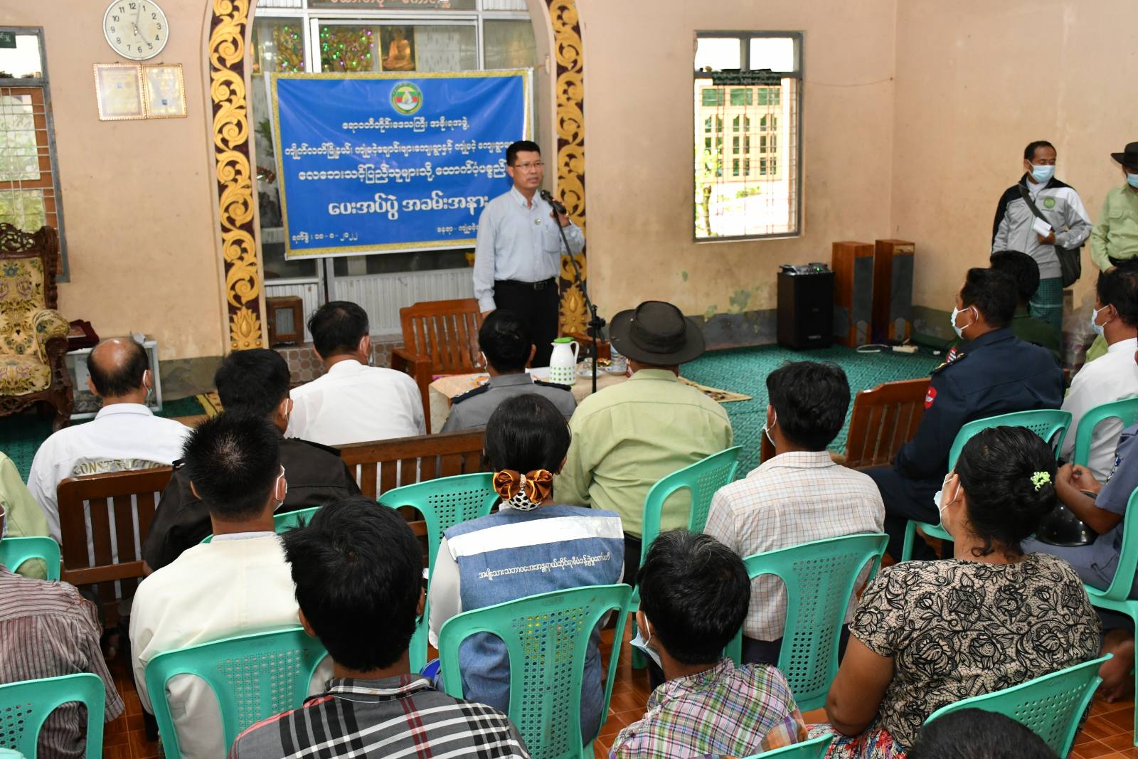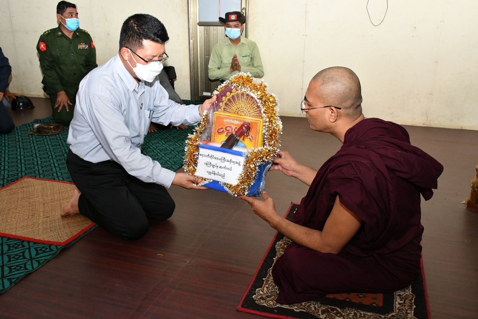ဆက်လက်၍ တိုင်းဒေသကြီးဝန်ကြီးချုပ်နှင့်အဖွဲ့သည် ဖျာပုံခရိုင်၊ကျိုက်လတ်မြို့နယ်၊ထရော်ရွာသစ်ကျေးရွာအုပ်စုနှင့် ကျုံမငဲ့ကျေးရွာအုပ်စုရှိ ကျေးရွာများတွင် ယခု ၁၆ရက်နေ့က လေပြင်းတိုက်ခတ်ခဲ့သဖြင့် လူနေအိမ်များနှင့်စာသင်ကျောင်းအမိုးလန်ခြင်း၊ ပြိုကျပျက်စီးခြင်းများဖြစ်ပွားခဲ့သည့်လေဘေးသင့်ပြည်သူများထံသွားရောက်၍ အားပေးထောက်ပံ့ခဲ့ပါသည်။ဦးစွာ တိုင်းဒေသကြီးဝန်ကြီးချုပ်သည် ချောင်းဖျားကျေးရွာ၌ လေပြင်းတိုက်ခတ်မှုကြောင့် ပျက်စီးခဲ့သည့် နေအိမ်များနှင့် အခြေခံပညာမူလတန်းကျောင်းအား လှည့်လည်ကြည့်ရှုစစ်ဆေးပြီး ကျောင်းအမိုးလန် ပျက်စီးမှုများအတွက် ထောက်ပံ့ငွေများ ပေးအပ်ခဲ့သည်။ ယင်းနောက် ရတနာစလင်း ဘုန်းတော်ကြီးကျောင်းဓမ္မာရုံ၌ လေဘေးသင့်ပြည်သူများအတွက် ထောက်ပံ့ရေးပစ္စည်းများ ပေးအပ်ပွဲ အခမ်းအနားအား တက်ရောက်၍ အားပေးစကားပြောကြားရာတွင် လေပြင်းတိုက်ခတ်ခြင်း၊မိုးအဆက်မပြက်ရွာသွန်းခြင်း၊ မြစ်ရေကြီးခြင်းအပါအဝင် သဘာဝဘေးအန္တရာယ်များကျရောက်ခဲ့ပါက ထိခိုက်မှုအနည်းဆုံးဖြစ်စေရေး ကြိုတင်ကာကွယ်ရေးလုပ်ငန်းများဆောင်ရွက်ထားရန်လိုပါကြောင်း၊ မိုးလေဝသနှင့်ဇလဗဒ ညွှန်ကြားမှုဦးစီးဌာနမှ ထုတ်ပြန်သည့် မိုးလေဝသ သတင်းများကိုလည်းဂရုတစိုက် နားထောင်မှတ်သားပြီးကြိုတင်ပြင်ဆင်ခြင်းများဆောင်ရွက်ကြရမှာဖြစ်ပါကြောင်း၊ အုပ်ချုပ်ရေးအဖွဲ့များကလည်း မိုးလေဝသသတိပေးထုတ်ပြန်ချက်များနှင့်ပတ်သက်၍ အများပြည်သူများသိရှိစေရေး၊ ကြိုတင်ပြင်ဆင်ခြင်းလုပ်ငန်းများဆောင်ရွက်နိုင်စေရေးအတွက် လိုက်လံနှိုးဆော်ကြေညာပေးရန်လိုပါကြောင်းနှင့် လေပြင်းတိုက်ခတ်ပျက်စီးဆုံးရှုံးမှုများအတွက် ကူညီကယ်ဆယ်ရေး၊ ပြန်လည်တည်ဆောက်ရေးလုပ်ငန်းများကိုအုပ်ချုပ်ရေးအဖွဲ့များ၊ နယ်မြေခံတပ်ရင်းတပ်ဖွဲ့များ၊ ဌာနဆိုင်ရာများက အ မြန်ဆုံး ဝိုင်းဝန်းကူညီဆောင်ရွက်ပေးသွားမှာဖြစ်ကြောင်းပြောကြားခဲ့ပြီး ဘေးသင့် အိမ်ထောင်စု (၅၀)နှင့်စာသင်ကျောင်းအတွက် ထောက်ပံ့ငွေများ၊ စားသောက်ဖွယ်ရာများ၊ ကယ်ဆယ်ရေးပစ္စည်း ၁၇ မျိုးပါ ပုံး (၃၁)ပုံး တို့ကို ဘေးသင့်ပြည်သူများထံထောက်ပံ့ပေးအပ်ခဲ့ရာ ကျေးရွာအုပ်ချုပ်ရေးမှူးက ကျေးဇူးတင်စကားပြန်လည်ပြောကြားခဲ့ပါသည်။ ထို့နောက် တိုင်းဒေသကြီးဝန်ကြီးချုပ်နှင့်အဖွဲ့သည် ရတနာစလင်းဘုန်းတော်ကြီးကျောင်း၊ ကျောင်းထိုင် ဆရာတော်အား ဖူးမြော်ကြည်ညို၍ လှူဖွယ်ပစ္စည်းနှင့်ဝတ္ထုငွေများဆက်ကပ်လှူဒါန်းခဲ့ပြီး လေဘေးကယ်ဆယ်ရေးဆောင်ရွက်မှုများကိုလျှောက်ထားတင်ပြခဲ့ကြောင်းသိရှိရပါသည်။