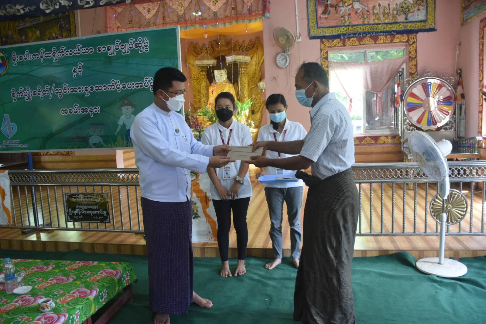 ဆက်လက်၍ တိုင်းဒေသကြီးဝန်ကြီးချုပ်နှင့် တာဝန်ရှိသူများက ဒေသခံတောင်သူများထံ စိုက်ပျိုးစရိတ်/သွင်းအားစုများထောက်ပံ့ပေးအပ်ခဲ့ရာ တောင်သူတစ်ဦးမှ ကျေးဇူးတင်စကားပြန်လည်ပြောကြားခဲ့ပြီးနောက် တိုင်းဒေသကြီးဝန်ကြီးချုပ်မှ ပိုက်ဆံလျှော်များတိုးချဲ့စိုက်ပျိုးနိုင်ရေး၊ သဘာဝမြေသြဇာ၊ ဓာတ်မြေသြဇာများအချိုးကျသုံးစွဲစေရေး၊ စိုက်ပျိုးရေးနည်းစနစ်များမှန်ကန်စွာအသုံးပြုနိုင်ရေး နိဂုံးချုပ် အမှာစကားပြောကြားခဲ့ပါသည်။ အဆိုပါမိုးစပါးကန်ထရိုက်လယ်ယာ စာချုပ်ချုပ်ဆိုပွဲနှင့် စိုက်ပျိုးစရိတ်/သွင်းအားစုများထောက်ပံ့ပေးအပ်ပွဲတွင် ရေကြည်မြို့နယ်၊နွားရေတိုက်ကျေးရွာအုပ်စုရှိ တောင်သူ (၈၀)ဦး၊ စိုက်ဧက ၁၀၀၀အတွက် စိုက်ပျိုးစရိတ်/သွင်းအားစုများထောက်ပံ့ငွေကျပ်သိန်း ၁၅၀၀ ကိုပေးအပ်ထောက်ပံ့ခဲ့ကြောင်းသိရသည်။