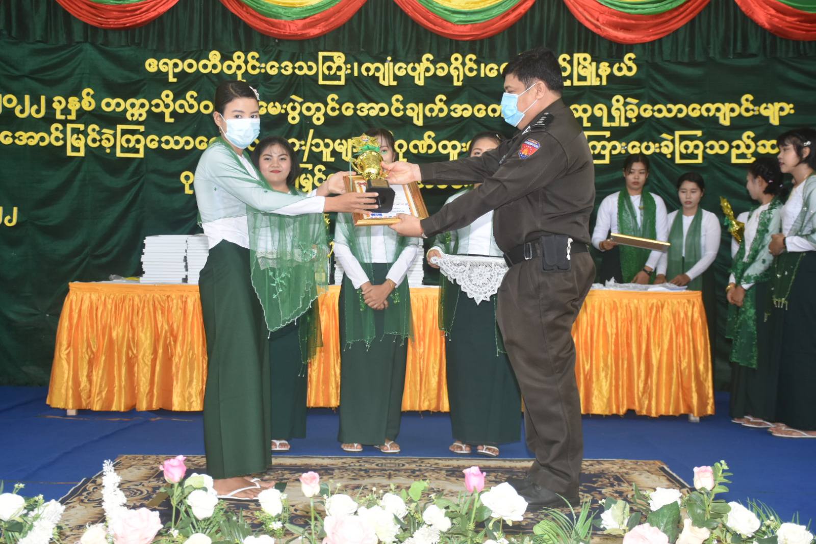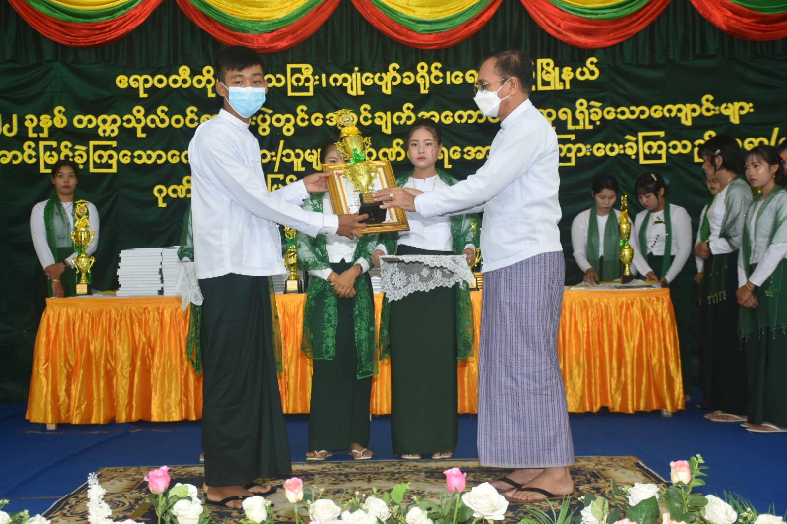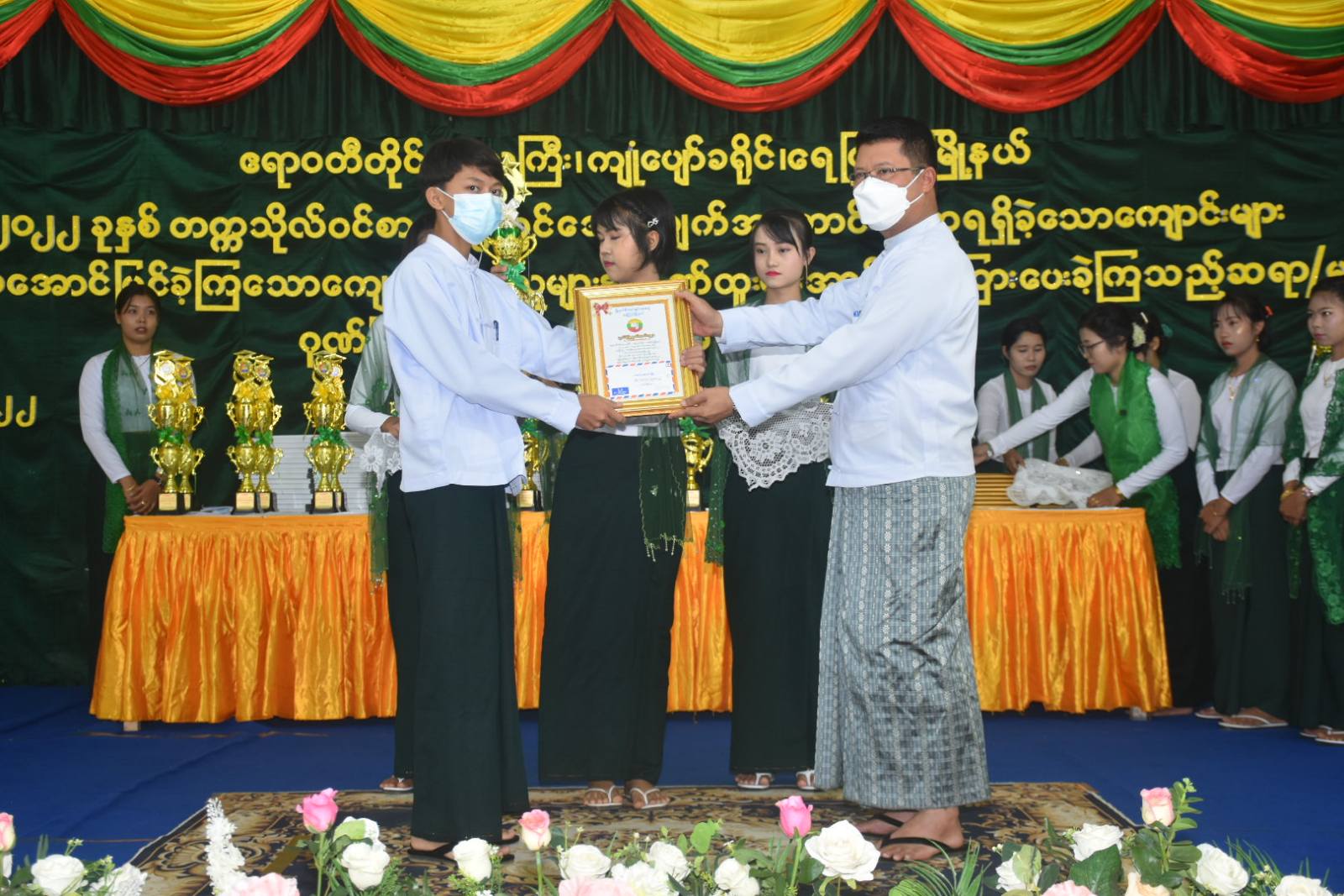 ဆက်လက်၍ ဆုချီးမြှင့်ပွဲအခမ်းအနားအား ပြုလုပ်ရာ တိုင်းဒေသကြီးဝန်ကြီးချုပ်မှ ရေကြည်မြို့နယ်ရှိ တက္ကသိုလ်ဝင်စာမေးပွဲတွင် အောင်ချက်အကောင်းဆုံး ကျောင်း(၃)ကျောင်း၊ သိပ္ပံဘာသာတွဲတွင် တစ်နိုင်ငံလုံးအဆင့်(၆)၊တိုင်းဒေသကြီးအတွင်း အဆင့်(၁)၊ (၆)ဘာသာဂုဏ်ထူးရှင်(၁)ဦးအပါအဝင် (၆)ဘာသာဂုဏ်ထူးရှင်(၄) ဦးတို့အား လည်းကောင်း၊ တိုင်းဒေသကြီးဝန်ကြီးချုပ်၏ ဇနီးမှ (၅)ဘာသာဂုဏ်ထူးရရှိသူ(၄)ဦးအားလည်းကောင်း၊ တိုင်းဒေသကြီးအစိုးရအဖွဲ့ စီးပွားရေးရာဝန်ကြီးမှ (၅)ဘာသာဂုဏ်ထူးရရှိသူ(၄)ဦးအားလည်းကောင်း၊ သယံဇာတရေးရာဝန်ကြီး၊လူမှုရေးရာဝန်ကြီး၊ တိုင်းဒေသကြီးအစိုးရအဖွဲ့ အတွင်းရေးမှူးတို့မှ (၄)ဘာသာဂုဏ်ထူးရရှိသူများအား လည်းကောင်း၊ တိုင်းဒေသကြီးအစိုးရအဖွဲ့ စီးပွားရေးရာဝန်ကြီး၏ဇနီး၊ သယံဇာတရေးရာဝန်ကြီး၏ဇနီး၊ အစိုးရအဖွဲ့ အတွင်းရေးမှူး၏ ဇနီး၊ တိုင်းဒေသကြီးပညာရေးမှူး၊ တိုင်းဒေသကြီးလမ်းဦးစီးဌာနမှူး၊ တိုင်းဒေသကြီး ကျန်းမာရေးဒုတိယတိုင်းဦးစီးမှူး၊ ကျုံပျော်ခရိုင်အုပ်ချုပ်ရေးမှူး၊ ရေကြည်မြို့နယ်စီမံအုပ်ချုပ်ရေးအဖွဲ့ဥက္ကဋ္ဌနှင့် မြို့နယ်ပညာရေးမှူးတို့က ဂုဏ်ထူးဖြင့်အောင်မြင်အောင်သင်ကြားပေးခဲ့သည့် ဆရာ၊ဆရာမများအားလည်းကောင်း ဂုဏ်ပြုဆုများအသီးသီးပေးအပ်ချီးမြှင့်ခဲ့ကြသည်။