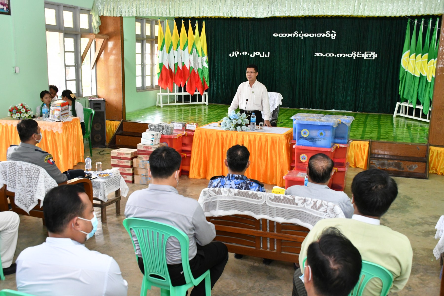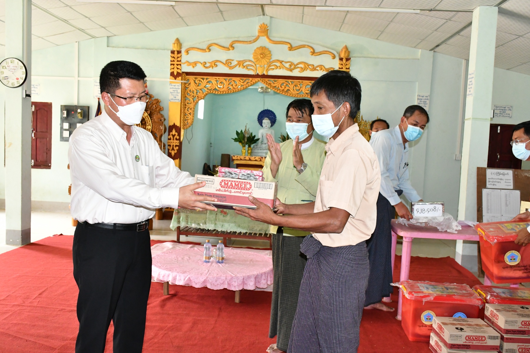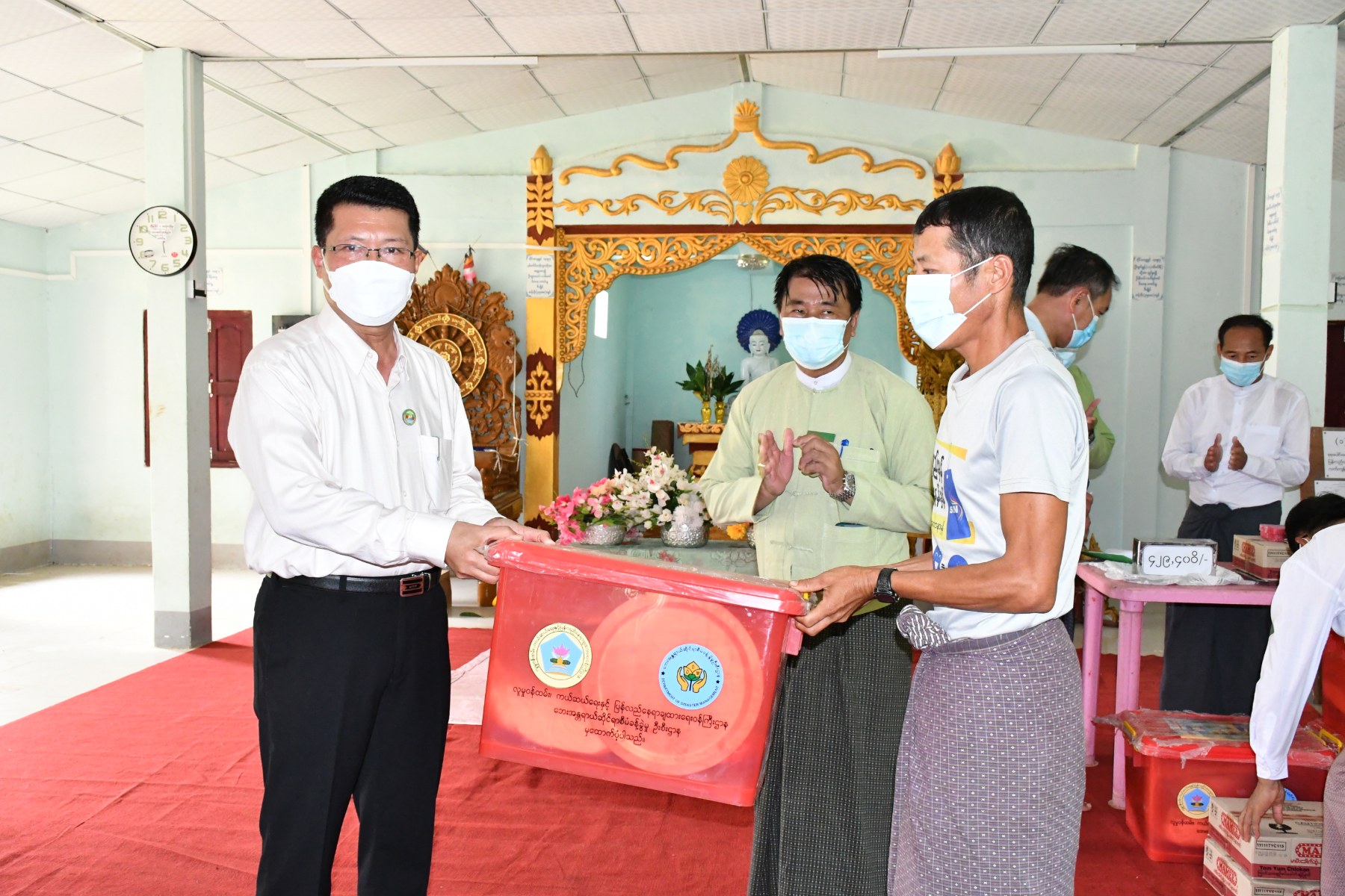 ဧရာဝတီတိုင်းဒေသကြီးအစိုးရအဖွဲ့ ဝန်ကြီးချုပ် ဦးတင်မောင်ဝင်းသည် တိုင်းဒေသကြီးအစိုးရအဖွဲ့ဝင် ဝန်ကြီးများနှင့် တိုင်းဒေသကြီး / ခရိုင်/ မြို့နယ်အဆင့် ဌာနဆိုင်ရာ တာဝန်ရှိသူများလိုက်ပါလျှက် သြဂုတ်လ ၂၃ ရက်နေ့ နံနက်ပိုင်းအချိန်တွင် ငပုတောမြို့နယ်၊ ငရုပ်ကောင်းမြို့၊ လမ်းဦးစီးဌာနရိပ်သာ၌ ကွင်းဘတ်ကျွေးရွာအုပ်စုတွင် မိုးသည်းထန်စွာရွာသွန်း၍ တောင်ကျချောင်းရေစီးဆင်းမှုကြောင့် နေအိမ်ပျက်စီးခဲ့သည့် အိမ်ထောင်စုများအတွက် ကယ်ဆယ်ရေးပစ္စည်းများကို ဘေးသင့်အိမ်ထောင်စုများကိုယ်စား ငရုပ်ကောင်းမြို့အုပ်ချုပ်ရေးမှူးထံ ပေးအပ်ခဲ့ပါသည်။