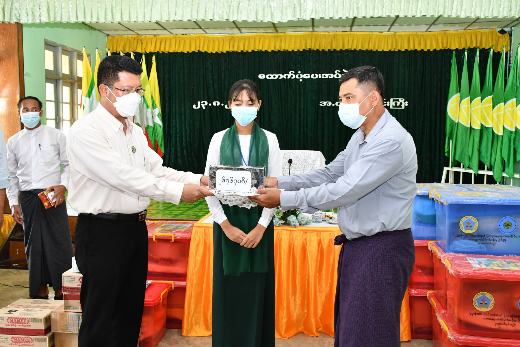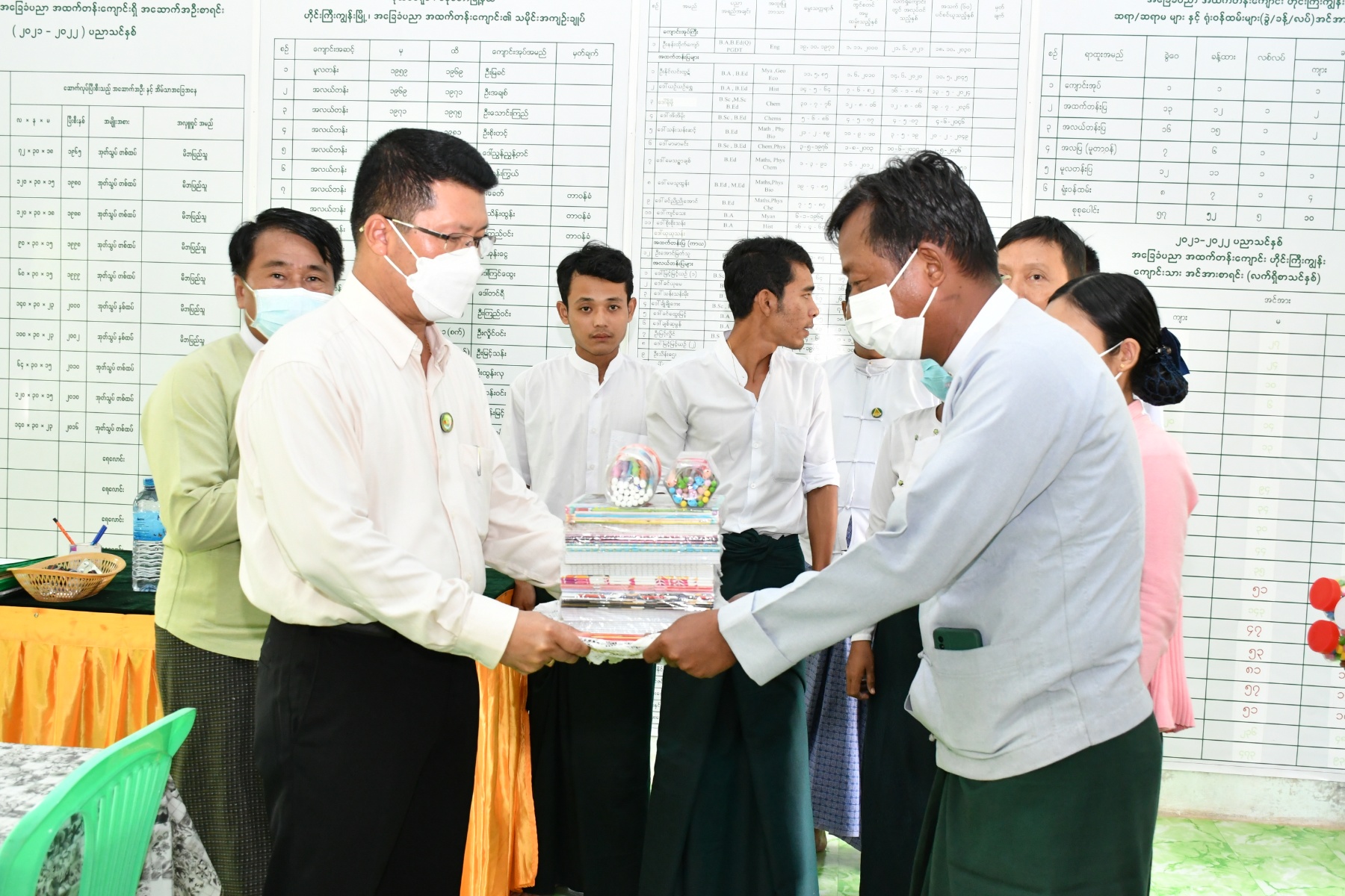 ထို့နောက် ဟိုင်းကြီးအခြေခံပညာအထက်တန်းကျောင်း၌ မိုးသည်းထန်စွာရွာသွန်း၍ တောင်ကျချောင်းရေစီးဆင်းမှုကြောင့် နေအိမ်ပျက်စီးခဲ့သည့် အိမ်ထောင်စုများအတွက် ထောက်ပံ့ရေးပစ္စည်းများ ပေးအပ်ပွဲ အခမ်းအနားတက်ရောက်၍ ထောက်ပံ့ငွေများ၊ စားသောက်ဖွယ်ရာများ၊ ကယ်ဆယ်ရေးပစ္စည်းတို့ကို ပြည်သူများထံ ထောက်ပံ့ပေးအပ်ခဲ့ရာ ဒေသခံပြည်သူတစ်ဦးက ကျေးဇူးတင်စကားပြန်လည်ပြောကြားခဲ့ပါသည်။ ထို့နောက် တိုင်းဒေသကြီးဝန်ကြီးချုပ်နှင့်အဖွဲ့သည် ဟိုင်းကြီး အခြေခံပညာအထက်တန်းကျောင်း၊ ဆရာ၊ ဆရာမများနှင့်တွေ့ဆုံခဲ့ပြီး ကျောင်းတက်ရောက်မှုများ၊ ပညာသင်ကြားမှုများမေးမြန်းခဲ့ကာ ရာနှုန်းပြည့်ကျောင်းတက်ရောက်နိုင်စေရေး၊ ကျောင်းနေမြဲစေရေး၊ အမှန်တကယ်စာတတ်မြောက်စေရေး လေ့ကျင့်သင်ကြားပေးရန်မှာကြားခဲ့ပြီး ကျောင်းသုံးပစ္စည်းများ၊ ကျန်းမာရေးသုံးပစ္စည်းများနှင့် ထောက်ပံ့ငွေများ ပေးအပ်ခဲ့ပါသည်။
