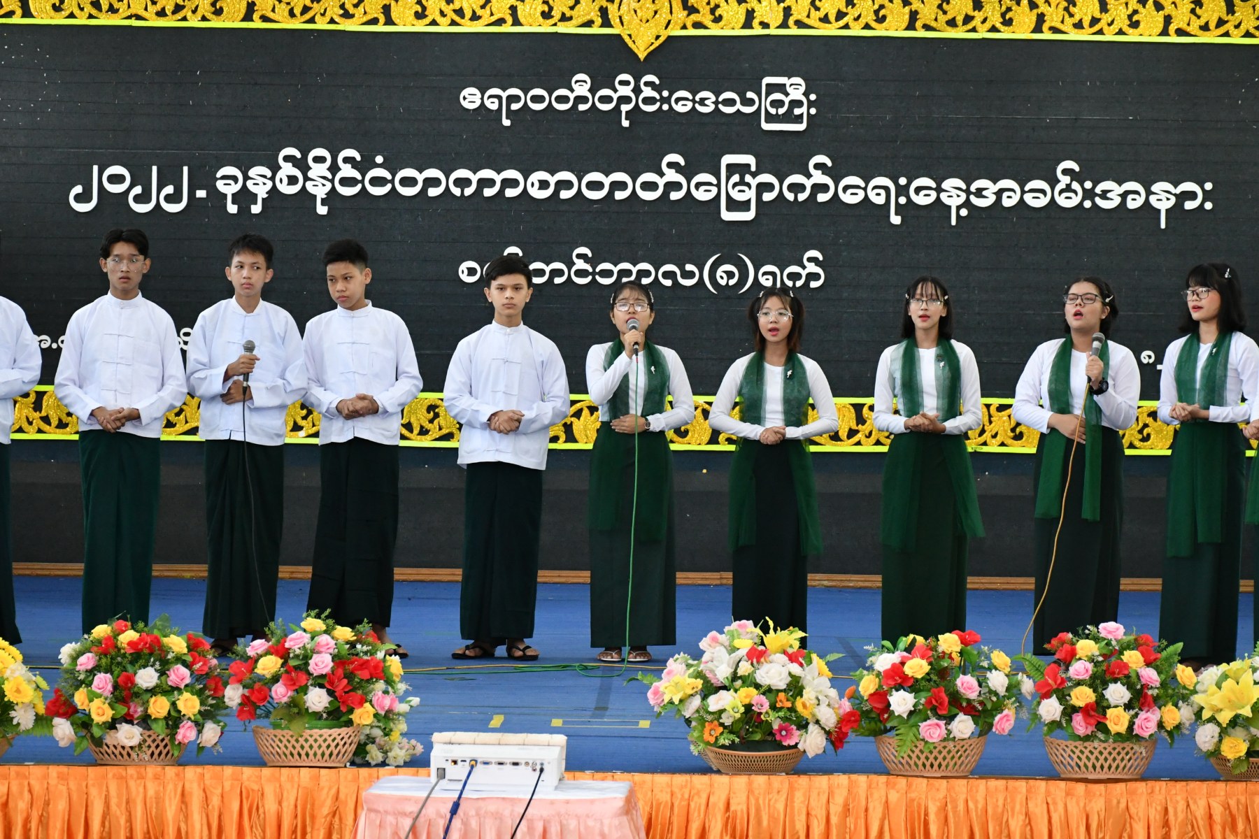 ဦးစွာ အမှတ်(၁) အခြေခံပညာအထက်တန်းကျောင်း(ပုသိမ်)မှ ကျောင်းသား ၊ ကျောင်းသူများက“ဝ.ထ.က.သ.လ” သီချင်းဖြင့် သီဆိုဂုဏ်ပြု၍ အခမ်းအနားအား ဖွင့်လှစ်ပေးပြီး တိုင်းဒေသကြီးဝန်ကြီးချုပ်က နိုင်ငံတကာတွင် စာတတ်မြောက်ရေးလုပ်ငန်းများကို အားသွန်ခွန်စိုက်ကြိုးပမ်းဆောင်ရွက်သကဲ့သို့ မြန်မာနိုင်ငံတွင်လည်း စာတတ်မြောက်ရေးလုပ်ငန်းများကို ခေတ်အဆက်ဆက် ကြိုးပမ်းဆောင်ရွက်ခဲ့ပါကြောင်း၊ ပညာရေးဝန်ကြီးဌာနအနေဖြင့် စာမတတ်သူများပပျောက်ရေး၊ ကျောင်းနေအရွယ်ကလေးအားလုံးကျောင်းနေရေးလုပ်ငန်းစဉ်များကို ဦးတည်ဆောင်ရွက်လျက်ရှိပြီး ကျောင်းတွင်းပညာရေး၊ ကျောင်းပြင်ပပညာရေး၊ ကိုယ်တိုင်သင်ယူပညာရေးဟူ၍ ပညာရယူနည်း နည်းလမ်းသုံးသွယ်ဖြင့် လူတိုင်းပညာသင်ခွင့် ရရှိနိုင်ရေးအလေးထားဆောင်ရွက်လျက်ရှိပါကြောင်း၊ ကျောင်းနေအရွယ်ကလေးအားလုံးကျောင်းနေမြဲမှ အရွယ်လွန်သက်ကြီးစာမတတ်သူများ ပပျောက်ရေး၊ စာမတတ်သူပပျောက်ရေးမှ စာမဖတ်သူပပျောက်ရေး အဆင့်ဆင့်ဆောင်ရွက်သွားကြရမှာဖြစ်ပါကြောင်း၊ ထိုသို့ဆောင်ရွက်ရာတွင် အခြေခံပညာကျောင်းများမှ စတင်ဆောင်ရွက်ကြရမှာဖြစ်ပါကြောင်း၊ မိမိတို့တိုင်းဒေသကြီးအနေဖြင့်လည်း ကျောင်းနေအရွယ်ကလေးအားလုံး ကျောင်းဝင်းအတွင်းရောက်ရှိစေရေးနှင့် ကျောင်းနေမြဲရေး ကြိုးစားဆောင်ရွက်လျက်ရှိရာ ၂၀၂၂ခုနှစ် တက္ကသိုလ်ဝင်စားမေးပွဲတွင် တစ်နိုင်ငံလုံးအောင်ချက်အကောင်းဆုံး ဒုတိယနှင့် ဂုဏ်ထူးရကျောင်းသားကျောင်းသူများများစွာထွက်ပေါ်ခဲ့ပြီး ယခုပညာသင်နှစ်တွင်လည်း အခြေခံပညာကျောင်းများတွင် ကျောင်းအပ်နှံမှုနှင့်ကျောင်းတက်ရောက်မှုအများဆုံးတိုင်းဒေသကြီးဖြစ်ခဲ့ပါကြောင်း၊ ယခုနှစ်တက္ကသိုလ်ဝင်စာမေးပွဲအောင်ချက်ရာနှုန်းမြင့်မားစေရေးယခင်နှစ်ထက်ပိုမိုသာလွန်စေရေး ကျောင်းသား၊မိဘ၊ဆရာများနှင့် သက်ဆိုင်ရာဌာနဆိုင်ရာများကကြိုတင်ပြင်ဆင်ဆောင်ရွက်ခြင်းလုပ်ငန်းများကို ဝိုင်းဝန်းကြိုးစားပေးကြစေလိုကြောင်း၊ လူတိုင်းအတွက်ပညာရေး ရည်မှန်းချက်များနှင့်အညီ လူတိုင်းစာတတ်မြောက်နိုင်စေရန် အမျိုးသားရေးအသိ၊ အမျိုးသားရေးအမြင်၊ အမျိုးသားရေးဆန္ဒ၊ အမျိုးသားရေးအားမာန်တို့ဖြင့် စာတတ်မြောက်ရေးလုပ်ငန်းများကိုအကောင်အထည်ဖော် ဆောင်ရွက်သွားကြရန်ပြောကြားခဲ့ပါသည်။