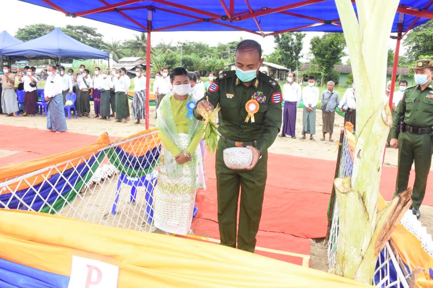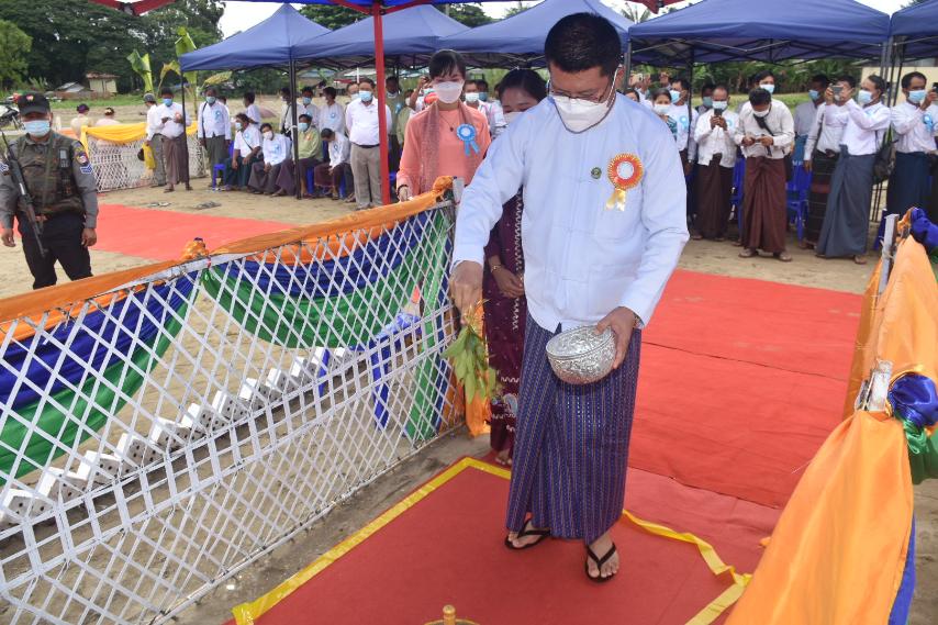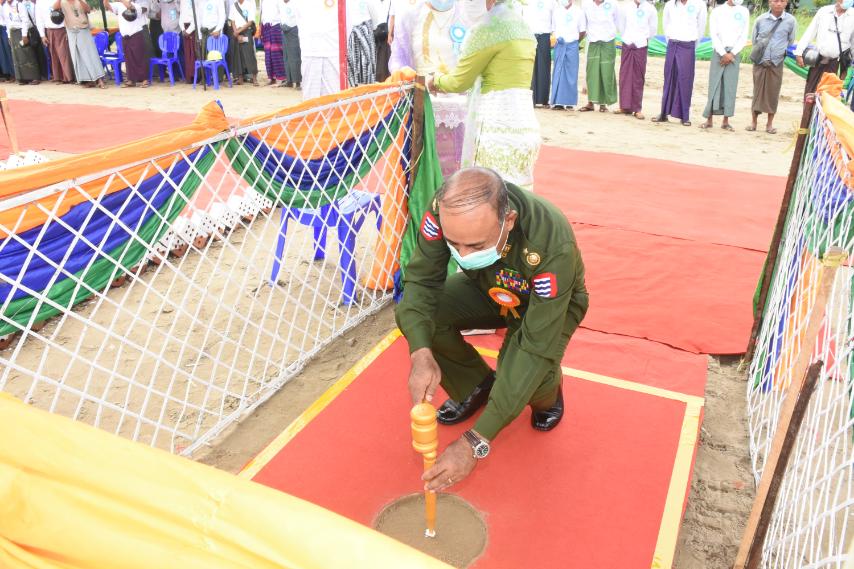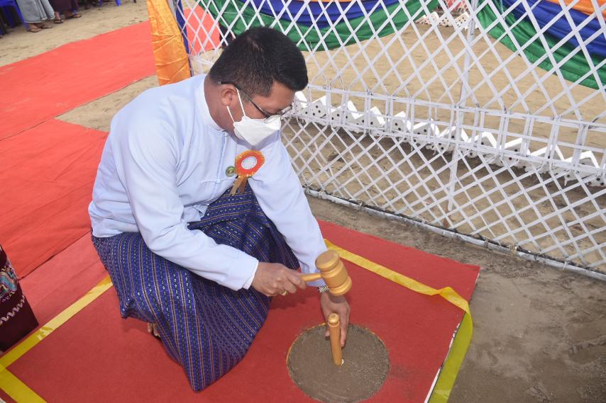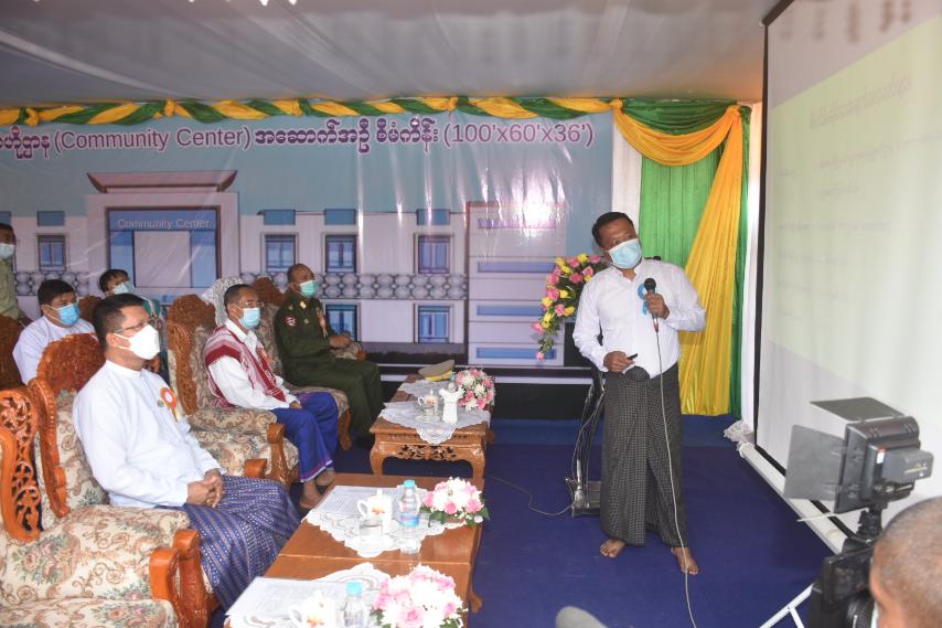 ဦးစွာ နိုင်ငံတော်စီမံအုပ်ချုပ်ရေးကောင်စီအဖွဲ့ဝင် ဖဒိုမန်းငြိမ်းမောင်၊ညတိုင်းဒေသကြီးဝန်ကြီးချုပ် ဦးတင်မောင်ဝင်း၊ အနောက်တောင်တိုင်းစစ်ဌာနချုပ်တိုင်းမှူးဗိုလ်ချုပ်အောင်အောင်၊ တိုင်းဒေသကြီးအစိုးရအဖွဲ့ဝင်များနှင့် တာဝန်ရှိသူများက မင်္ဂလာအချိန်ကျရောက်ချိန်တွင်သတ်မှတ်နေရာများ၌ မင်္ဂလာပန္နက်တိုင်များစိုက်ထူပေးခဲ့ပြီးအမွှေးနံ့သာရည်များဖြန်းပတ်ပေးခဲ့ကြပါသည်။ ထို့နောက် လူထုအခြေပြုဗဟိုဌာန(Community Centre) ဆောက်လုပ်ရေးကုမ္ပဏီတာဝန်ခံမှ လုပ်ငန်းဆောင်ရွက်မှုအခြေအနေများရှင်းလင်းတင်ပြပါသည်။ ဆက်လက်၍ နိုင်ငံတော်စီမံအုပ်ချုပ်ရေးကောင်စီအဖွဲ့ဝင် ဖဒိုမန်းငြိမ်းမောင်က တိုင်းဒေသကြီးအကျိုးပိုမိုသယ်ပိုးနိုင်သည့် လူ့စွမ်းအားအရင်းအမြစ်များပိုမိုမွေးထုတ်ပေးနိုင်မယ့် လူထုအခြေပြုဗဟိုဌာနကို တိုင်းဒေသကြီးတွင် တည်ဆောက်နိုင်ရေး တည်ဆောက်ကြိုးပမ်းဆောင်ရွက်ခဲ့ပါကြောင်း၊ လူထုအခြေပြုဗဟိုဌာနဆိုသည်မှာ ပြည်သူလူထုကစိတ်ဝင်စားသော၊ အကူအညီတောင်းခံနိုင်သော၊ ပေါင်းစပ်လုပ်ကိုင်ဆောင်ရွက်ပေးနိုင်သော၊ အသိပညာဗဟုသုတများဆည်းပူးဖလှယ်နိုင်သော၊ ဒေသအတွက်အကျိုးရှိရာရှိကြောင်းဆွေးနွေးနိုင်ရန်သတင်းအချက်အလက်များရယူနိုင်သော၊ ပြည်သူများအပန်းဖြေရန်နှင့်အသိပညာဗဟုသုတများတည်ရှိရာနေရာဖြစ်ပါကြောင်း၊ လူထုအခြေပြုဗဟိုဌာနတွင် စာကြည့်တိုက်၊ အစည်းအဝေးခန်းမ၊သင်တန်းခန်းမ၊ ကလေးစာဖတ်ခန်း၊ အားကစားခန်းစသည့် ကဏ္ဍစုံပါဝင်ပါသဖြင့် ဒေသခံပြည်များအတွက် များစွာအကျိုးရှိပါကြောင်း၊ လူထုအခြေပြုဗဟိုဌာန သတ်မှတ်အရည်အသွေးများပြည့်မီစေရေး၊ ရေရှည်တည်တံ့ခိုင်မြဲစေရေးနှင့်ပိုမိုတိုးတက်ဖွံံ့ဖြိုးစေရေး အုပ်ချုပ်ရေးအဖွဲ့အစည်းများ၊ ဌာနဆိုင်ရာများ၊ ဒေသခံပြည်သူများ၊အားလုံးဝိုင်းဝန်းကူညီဆောင်ရွက်ကြရမှာဖြစ်ပါကြောင်းနှင့် လူထုအခြေပြုဗဟိုဌာန(Community Centre)တည်ဆောက်နိုင်ရေးအဘက်ဘက်မှ ကူညီဆောင်ရွက်ပေးကြသူများအားကျေးဇူးတင်ရှိကြောင်း ပြောကြားခဲ့ပါသည်။