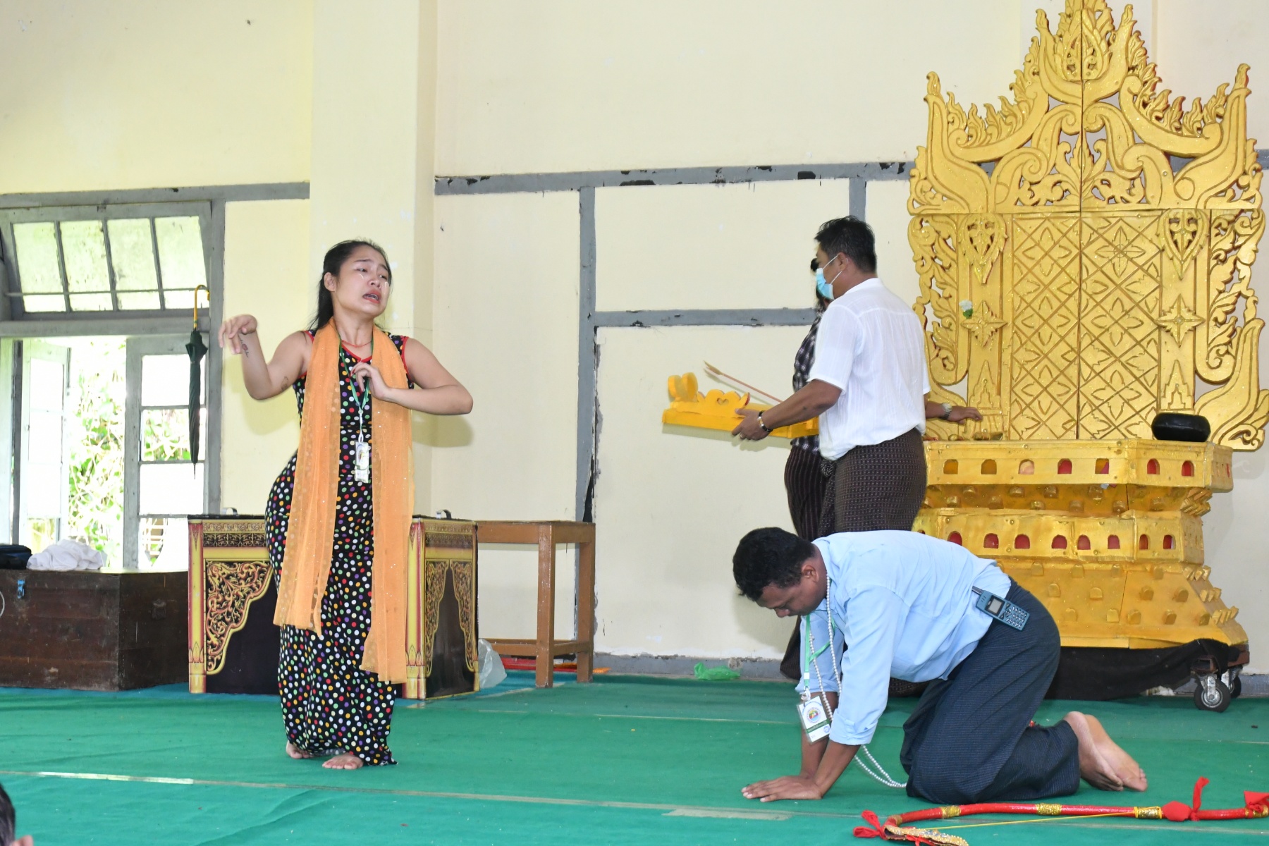 ဧရာဝတီတိုင်းဒေသကြီးဝန်ကြီးချုပ်နှင့်အဖွဲ့သည် (၂၃)ကြိမ်မြောက်မြန်မာ့ရိုးရာယဉ်ကျေးမှုအဆို၊အက၊အရေး၊အတီးပြိုင်ပွဲဗဟိုအဆင့်တွင်ပါဝင်ယှဉ်ပြိုင်နိုင်ရေး တိုင်းဒေသကြီးကိုယ်စားပြု အဆို၊ အက၊ အရေး၊ အတီးပြိုင်ပွဲဝင်များ၏စခန်းသွင်းလေ့ကျင့်နေမှုများကို ကြည့်ရှုအားပေးပါသည်။
