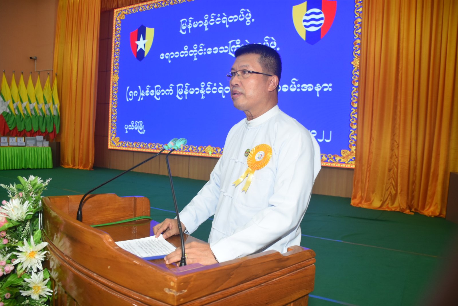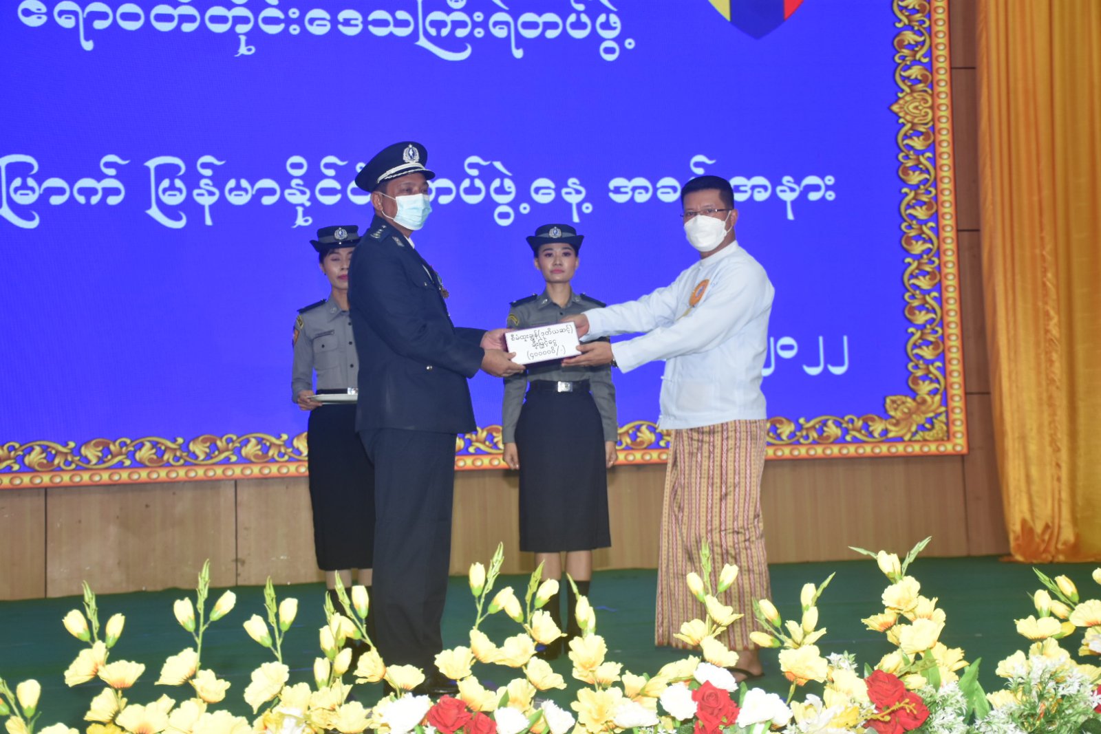 ထို့နောက် တိုင်းဒေသကြီးဝန်ကြီးချုပ်မှ မြန်မာနိုင်ငံရဲတပ်ဖွဲ့ကို ၁၈၈၇ခုနှစ်တွင်စတင်ဖွဲ့စည်းခဲ့ကာ အဆင့်ဆင့်ပြောင်းလဲဖွဲ့စည်းခဲ့ပြီး ၁၉၉၅ အောက်တိုဘာလ၁ရက်နေ့ကို မြန်မာနိုင်ငံရဲတပ်ဖွဲ့နေ့အဖြစ်ပြောင်းလဲဖွဲ့စည်းခဲ့၍ ပြည်သူ့အကျိုးစီးပွားကို တရားဥပဒေနှင့်အညီ ကာကွယ်စောင့်ရှောက်ဆောင်ကြဉ်းနိုင်စေရေး အသွင်သဏ္ဍာန်ရောအနှစ်သာရပါပြောင်းလဲလာအောင်အစီအမံများချမှတ်ဆောင်ရွက်ခဲ့ရာ ယနေ့ဆိုရင် (၅၈)နှစ်မြောက်မြန်မာနိုင်ငံရဲတပ်ဖွဲ့နေ့ကိုရောက်ရှိခဲ့ပြီဖြစ်ပါကြောင်း၊ မြန်မာနိုင်ငံရဲတပ်ဖွဲ့ဟာ ရည်မှန်းချက်တာဝန်(၄)ရပ်ဖြစ်တဲ့ ပြည်တွင်းလုံခြုံရေး၊ ရပ်ရွာအေးချမ်းသာယာရေးနှင့်တရားဥပဒေစိုးမိုးရေး၊ မူးယစ်ဆေးဝါးအန္တရာယ်တားဆီးကာကွယ်ရေးနှင့် ပြည်သူ့အကျိုးပြုလုပ်ငန်းများဆောင်ရွက်ရေးတို့ကိုအကောင်အထည် ဖော်ဆောင်ရွက်လျက်ရှိပါကြောင်း၊ မြန်မာနိုင်ငံရဲတပ်ဖွဲ့အနေဖြင့် ခေတ်နှင့်အညီ တိုးချဲ့ပြင်ဆင်ဖွဲ့စည်းလျက်ရှိရာ (Interpol) အဖွဲ့ဝင်ဖြစ်ပြီး အဖွဲ့ချုပ်နှင့် အဖွဲ့ဝင်နိုင်ငံများတွင် နိုင်ငံတကာရဲလုပ်ငန်းဆိုင်ရာများပူးပေါင်းဆောင်ရွက်မှု၊မှုခင်းသတင်းအ ချက်အလက် များဖလှယ်မှုအပြင် နိုင်ငံဖြတ်ကျော်မှုခင်းတိုက်ဖျက်ရေးဆိုင်ရာလုပ်ငန်းစဉ်များကိုလည်း ပူးပေါင်းဆောင်ရွက်လျက်ရှိ ပါကြောင်းနှင့် တရားဥပဒေစိုးမိုးရေးလုပ်ငန်းများတွင်အဓိကအကျဆုံးဖြစ်တဲ့ မြန်မာနိုင်ငံရဲတပ်ဖွဲ့ဝင်အားလုံးဟာ တာဝန်ခံမှုတာဝန်ယူမှုပြုနိုင်တဲ့ ရဲတပ်ဖွဲ့ဝင်ကောင်းများဖြစ်ကြပြီး ပြည်သူလူထုရဲ့အကျိုးစီးပွားကို ကာကွယ်စောင့်ရှောက်ရာတွင် ရဲလုပ်ငန်း၊ဥပဒေလုပ်ထုံးလုပ်နည်း၊ ကျွမ်းကျင်မှု၊ ရိုးသားဖြောင့်မတ်မှု၊ သမာသမတ်ရှိမှုတို့နဲ့ဖြည့်ဆည်းဆောင်ရွက်ပေးနိုင်ရေးအစဉ်ကြိုးပမ်းလုပ်ဆောင်သွားရန်ပြောကြားခဲ့ပြီး တိုင်းဒေသကြီးရဲတပ်ဖွဲ့မှူးက မြန်မာနိုင်ငံရဲတပ်ဖွဲ့ရဲချုပ်၏သဝဏ်လွှာအားဖတ်ကြားပါသည်။