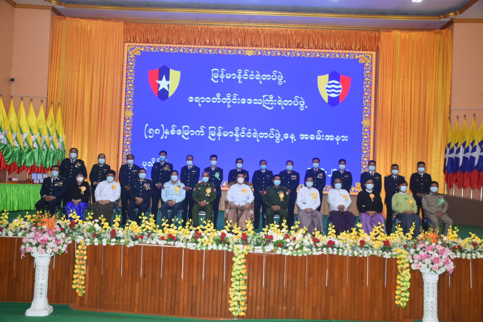 ဧရာဝတီတိုင်းဒေသကြီးအစိုးရအဖွဲ့ ဝန်ကြီးချုပ်နှင့်အဖွဲ့သည် ပုသိမ်မြို့၊ မြို့တော်ခန်းမတွင်ကျင်းပပြုလုပ်သည့် (၅၈)နှစ်မြောက် မြန်မာနိုင်ငံရဲတပ်ဖွဲ့နေ့အခမ်းအနားတက်ရောက်ခဲ့ပါသည်။ အခမ်းအနားကို ဧရာဝတီတိုင်းဒေသကြီးရဲတပ်ဖွဲ့ရှိအရာရှိများမှ မြန်မာ့ရဲသီချင်းဖြင့် ဂုဏ်ပြသီဆိုဖွင့်လှစ်ခဲ့ပါသည်။