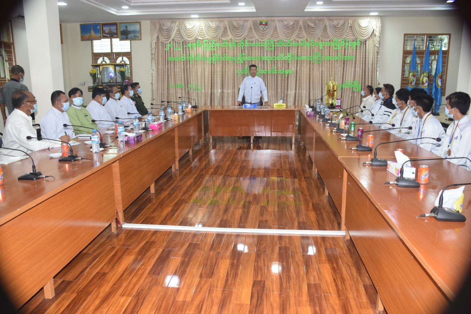 ဦးစွာ ပြည်နယ်နှင့်တိုင်းဒေသကြီး ဘိလိယက်နှင့်စနူကာပြိုင်ပွဲတွင်ရရှိခဲ့သည့် အသင်းလိုက်တံခွန်စိုက်ဆုဖလားအား တာဝန် ရှိသူများမှ တိုင်းဒေသကြီးဝန်ကြီးချုပ်ထံအပ်နှံခဲ့ပြီး တိုင်းဒေသကြီးဝန်ကြီးချုပ်မှဂုဏ်ပြုအမှာစကားပြောကြားရာ ပြည်နယ်နှင့်တိုင်းဒေသကြီး ဘိလိယက်နှင့်စနူကာပြိုင်ပွဲတွင်အသင်းလိုက်တံခွန်စိုက်ဆုဖလားရရှိအောင်ကြိုးစားခဲ့ကြသည့် အားကစားသမားများ၊ နည်းပြအုပ်ချုပ်သူများကို ယခုကဲ့သို့တိုင်းဒေသကြီး၏ ဂုဏ်ဆောင်နိုင်ခဲ့သည့်အတွက် များစွာဝမ်းမြောက်ဂုဏ်ယူပါကြောင်းနှင့် ထိုက်သင့်သည့်ဂုဏ်ပြုချီးမြှင့်ခြင်းများကိုဆောင်ရွက်ပေးသွားမှာဖြစ်ပါကြောင်း၊ ထို့ပြင် တိုင်းဒေသကြီးအားကစားကဏ္ဍ တိုးတက်လာစေရေးအတွက်အားကစားသိပ္ပံကျောင်းရရှိစေရေး ဆောင်ရွက်လျက်ရှိပါကြောင်း၊ တိုင်းဒေသကြီးသည် လူးစွမ်းအားအရင်းအမြစ်များများစွာရှိပြီး မျိုးဆက်သစ်အားကစားသမားများပေါ်ထွန်းလာစေရေး မြို့နယ်၊ ခရိုင်၊ အခြေခံပညာ၊ အဆင့်မြင့်ပညာအလိုက် စနစ်တကျလေ့ကျင့်ပျိုးထောင်ပေးကြရမှာဖြစ်ပါကြောင်း၊ဆက်လက်ယှဉ်ပြိုင်ရမည့် အားကစားပြိုင်ပွဲများတွင်လည်း ယခုကဲ့သို့ တံခွန်စိုက်ဆုဖလားများရရှိစေရေးဆက်လက်ကြိုးပမ်းဆောင်ရွက်ရန်လိုပါကြောင်း၊ အားကစားသမားများအနေဖြင့်လည်း တိုင်းဒေသကြီးကိုယ်စားပြုမှ နိုင်ငံ့ဂုဏ်ဆောင်အားကစားသမားဖြစ်လာစေရေး ကြိုးစားကြရန်ပြောကြားခဲ့ပြီးနောက် ပြည်နယ်နှင့်တိုင်းဒေသကြီး ဘိလိယက်နှင့်စနူကာပြိုင်ပွဲတွင် အသင်းလိုက်တံခွန်စိုက်ဆုဖလားရရှိခဲ့သည့် တိုင်းဒေသကြီးဘိလိယက်နှင့်စနူကာအသင်းအား ဂုဏ်ပြုငွေများချီးမြှင့်ပေးအပ်ခဲ့ပါတယ်။ ထို့နောက် တိုင်းဒေသကြီးဘိလိယက်နှင့်စနူကာအသင်းနည်းပြနှင့် အားကစားသမားများက ပြိုင်ပွဲအတွေ့အကြုံများ၊ ယှဉ်ပြိုင်အနိုင်ရရှိမှုများနှင့် လိုအပ်သည်များအားရှင်းလင်းတင်ပြခဲ့ရာ တိုင်းဒေသကြီးဝန်ကြီးချုပ်မှ ပေါင်းစပ်ဖြည့်ဆည်းဆောင်ရွက်ပေးခဲ့ကြောင်းသိရှိရပါသည်။