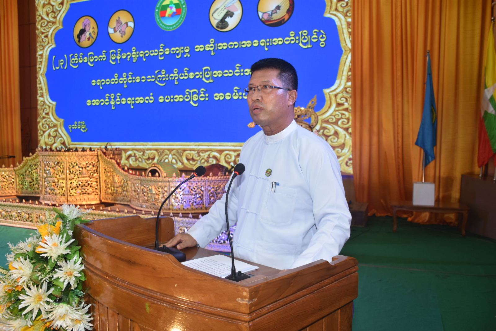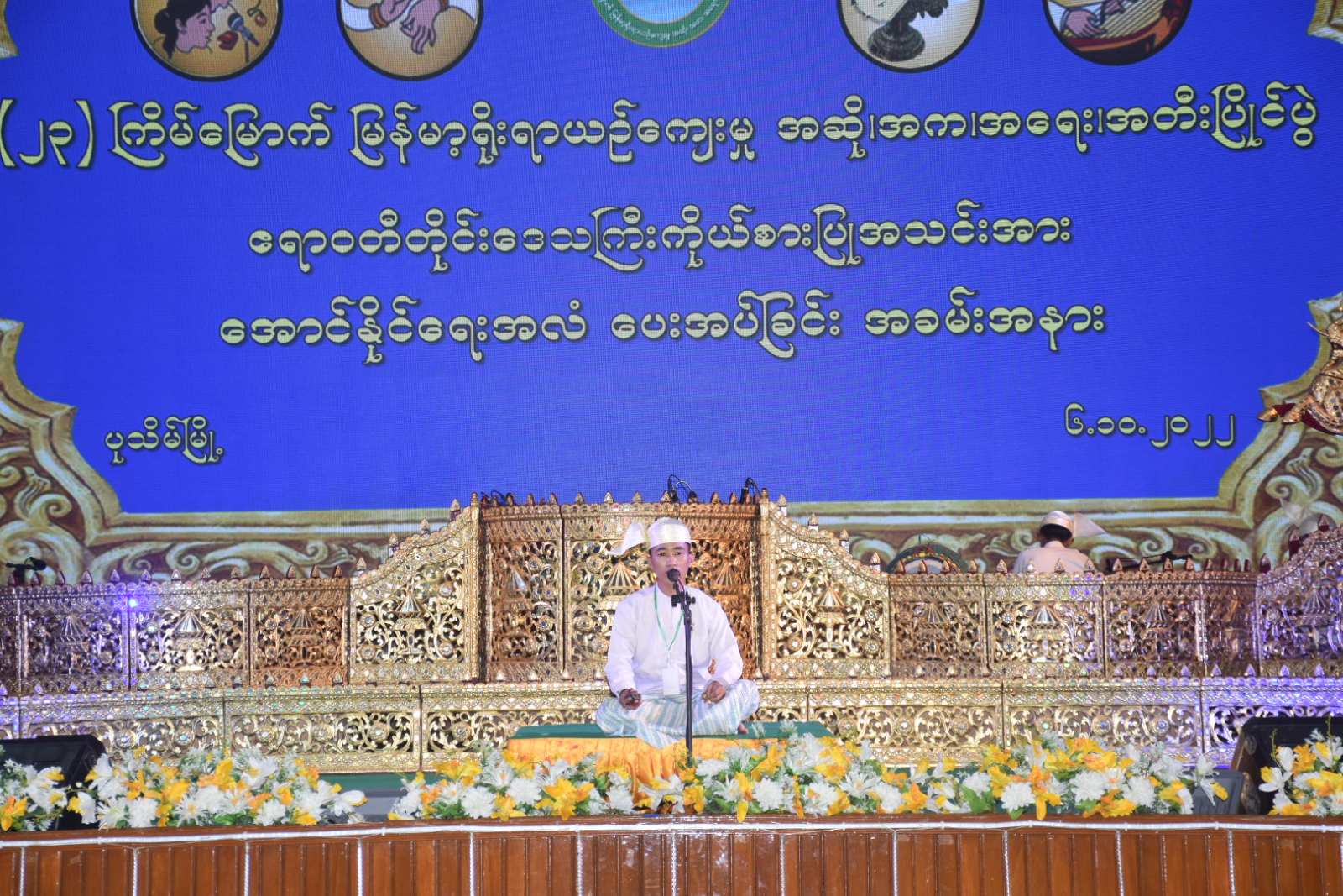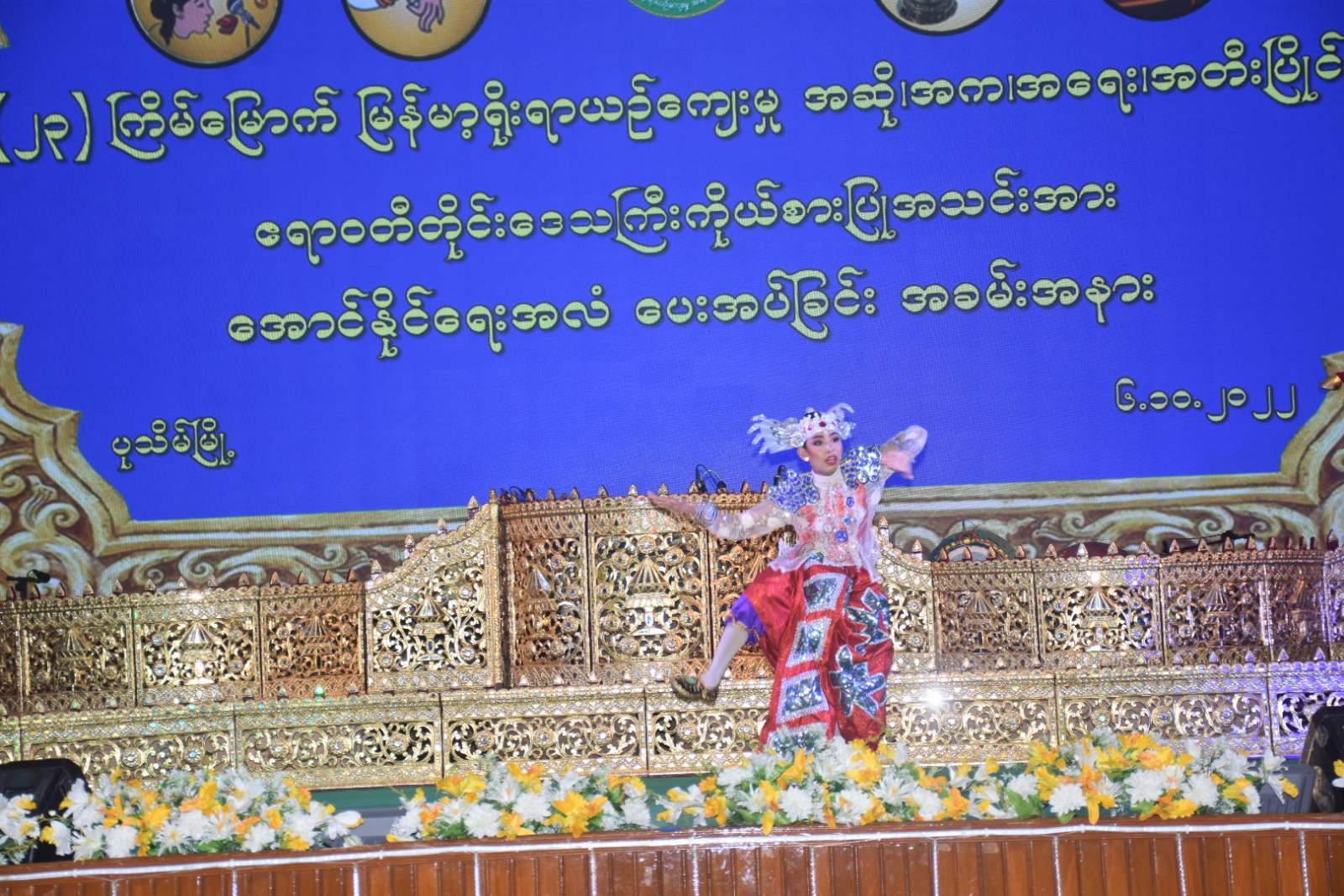 ဦးစွာ တိုင်းဒေသကြီးဝန်ကြီးချုပ်က“ (၂၃)ကြိမ်မြောက် မြန်မာ့ရိုးရာယဥ်ကျေးမှု အဆို၊အက၊အရေး၊အတီးဗဟိုအဆင့်ပြိုင်ပွဲ ဝင်ရောက်ယှဉ်ပြိုင်နိုင်ရေး ခရိုင်အဆင့်၊ တိုင်းဒေသကြီးအဆင့် ပြိုင်ပွဲများပြုလုပ်၍ အရည်အချင်းပြည့်မီသူများအား စနစ်တကျရွေးချယ်စခန်းသွင်းလေ့ကျင့်ပေးခဲ့ပါကြောင်း၊ ပြိုင်ပွဲဝင်များအနေဖြင့် ပညာရှင်များ၊ အကဲဖြတ်ဒိုင်များ၏ အကြံပြုသုံးသပ်ချက်များကို ကောင်းစွာနာယူမှတ်သားလိုက်နာပြီး ပြိုင်ပွဲဝင်သွားရမှာဖြစ်ပါကြောင်း၊ တစ်ဦးချင်းပြိုင်ပွဲများတွင် မိမိတို့၏ ပြိုင်ပွဲဝင်ဘာသာရပ်အားကျွမ်းကျင်ပိုင်နိုင်စွာ ယှဉ်ပြိုင်နိုင်ရေး၊ အဖွဲ့လိုက်ပြိုင်ပွဲများတွင် စည်းလုံးညီညွတ်မှု၊ အပေးအယူမျှတမှုရှိစေရေး၊ ပံ့ပိုးသူများအနေဖြင့်လည်းမိမိတို့ပြိုင်ပွဲဝင်အတွက်အကောင်းဆုံးဖြစ်စေရေး ကြိုးစားဆောင်ရွက်ပေးကြရမှာဖြစ်ပါကြောင်း၊ (၂၂) ကြိမ်မြောက် ဗဟိုအဆင့်ပြိုင်ပွဲတွင် တိုင်းဒေသကြီးအနေဖြင့် ပြိုင်ပွဲဝင် ၁၂၅ဦးပါဝင်ယှဉ်ပြိုင်ခဲ့ပြီး တိုင်းဒေသကြီး/ပြည်နယ် ဆုရရှိမှုတန်းစီဇယား စတုတ္ထနေရာရရှိခဲ့ပါကြောင်း၊ (၂၃)ကြိမ်မြောက် မြန်မာ့ရိုးရာယဉ်ကျေးမှု အဆို၊အက၊အရေး၊အတီး ဗဟိုအဆင့်ပြိုင်ပွဲကို ပြိုင်ပွဲဝင် ၁၉၃ဦးဖြင့် ပြိုင်ပွဲဘာသာရပ် များအားပါဝင်ယှဉ်ပြိုင်သွားမှာဖြစ်ပြီး ယခင်နှစ်ထက် အောင်မြင်မှုများပိုမိုရရှိစေရေးကြိုးစားဆောင်ရွက် နေသည်ကိုတွေ့ရှိရပါကြောင်း၊ ပြိုင်ပွဲဝင်ကာလတစ်လျှောက်လုံးကျန်းမာရေးအထူးဂရုပြုကြရန်နှင့် ဗဟိုအဆင့်ပြိုင်ပွဲတွင် ဆုတံဆိပ်များစွာရရှိ၍ အောင်ပွဲနှင့်အတူ တိုင်းဒေသကြီးဂုဏ်ဆောင်နိုင်ရေး ပြိုင်ပွဲဝင်များ၊ နည်းပြအုပ်ချုပ်အဖွဲ့များ ဝိုင်းဝန်းကြိုးပမ်းကြရန်”ပြောကြားသည်။