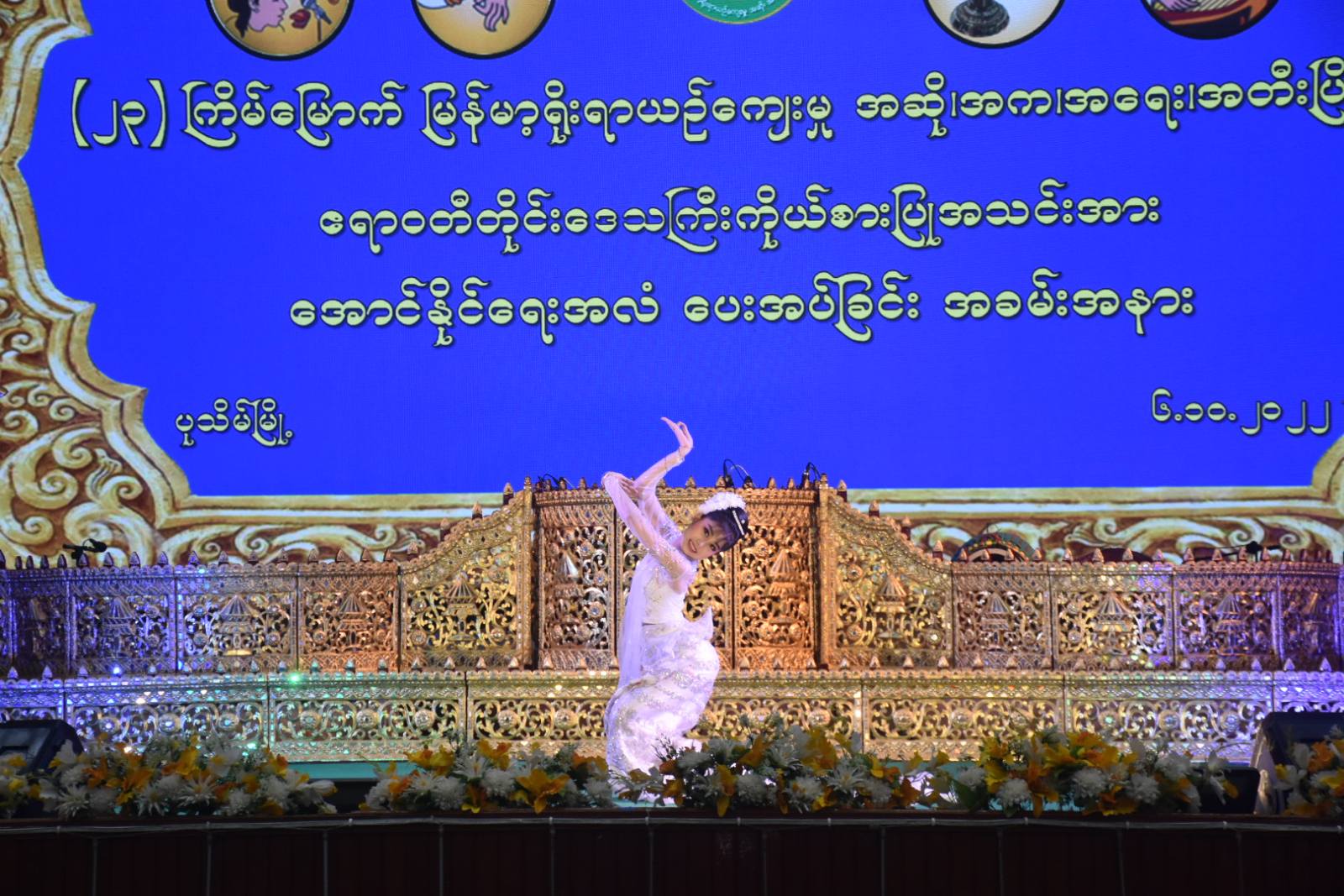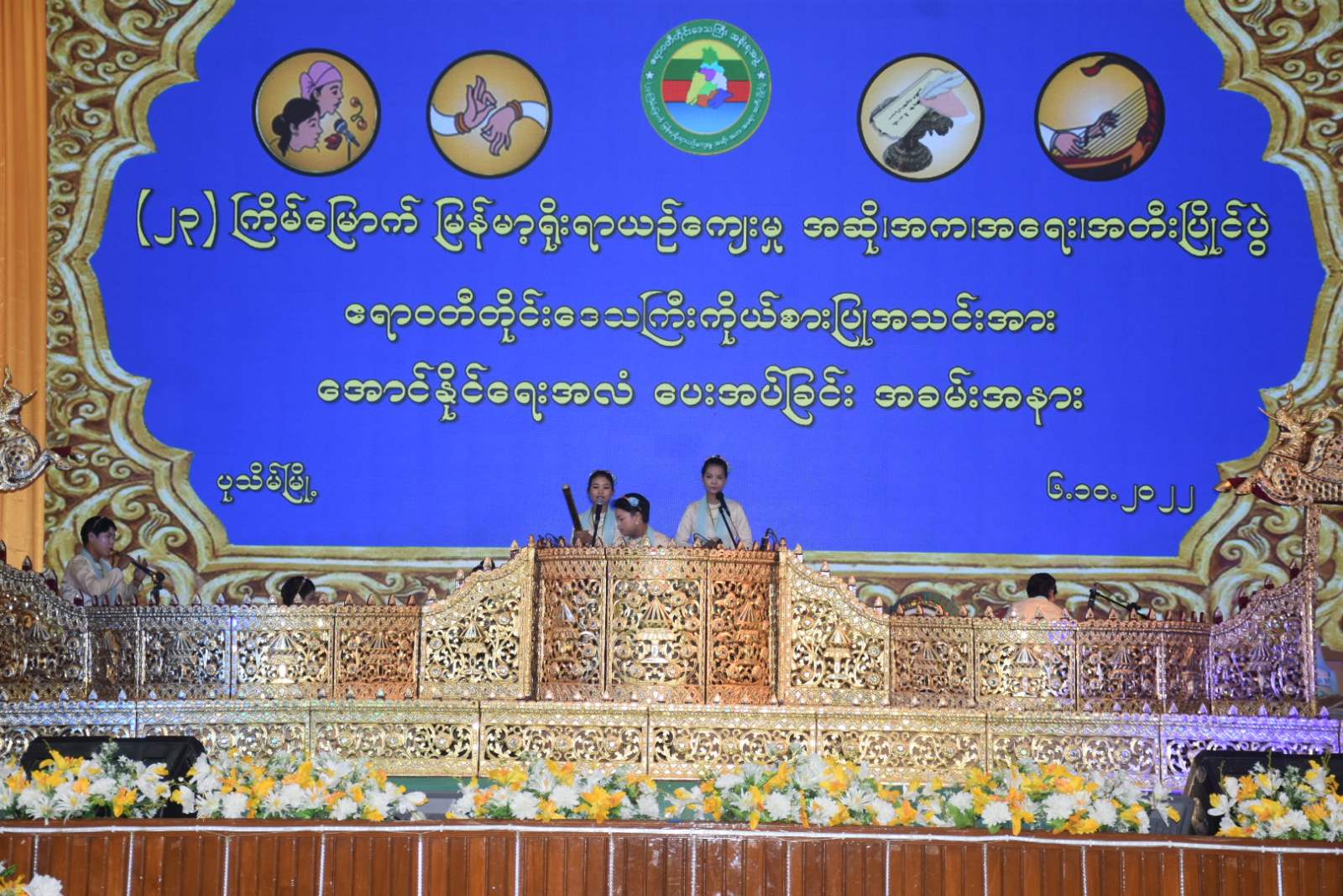 ဆက်လက်၍ (၂၃)ကြိမ်မြောက် မြန်မာ့ရိုးရာယဉ်ကျေးမှု အဆို၊အက၊အရေး၊အတီး ဗဟိုအဆင့် ပြိုင်ပွဲဝင်ရောက်ယှဉ်ပြိုင်မည့် တိုင်းဒေသကြီးကိုယ်စားပြု ပြိုင်ပွဲဝင်များ၏ ဝါသနာရှင်(ဒုတိယတန်း) ခေတ်ဟောင်းကာလပေါ်၊ ဝါသနာရှင် (ဒုတိယတန်း)အမျိုးဂုဏ်၊ဇာတိဂုဏ်၊ အဆင့်မြင့်ပညာ ခေတ်ဟောင်းကာလပေါ်၊ အခြေခံပညာ(၁၅-၂၀) ခေတ်ဟောင်းကာလပေါ်တေးများဖြင့်လည်းကောင်း၊ အခြေခံပညာ(၁၀-၁၅)တစ်ဦးချင်းအကများကိုလည်းကောင်း၊ ဝါသနာရှင်ဒုတိယတန်းဆိုင်းတစ်ဦးချင်း၊ ဝါသနာရှင်ဒုတိယတန်း စောင်း၊ အဆင့်မြင့်ပညာ ဂီတာ၊ အခြေခံပညာ(၁၅-၂၀) မယ်ဒလင်၊ အခြေခံပညာ(၁၀-၁၅)စန္ဒရား၊ အခြေခံပညာ (၁၅-၂၀)ဆိုင်းအဖွဲ့လိုက်တို့၏ အနုပညာစွမ်းရည်များပြသမှုများကို ကြည့်ရှုအားပေးခဲ့ပြီး တိုင်းဒေသကြီးဝန်ကြီးချုပ်မှ (၂၃) ကြိမ်မြောက် မြန်မာ့ရိုးရာယဉ်ကျေးမှု အဆို၊အက၊အရေး၊အတီး ဗဟိုအဆင့်ပြိုင်ပွဲ ဝင်ရောက်ယှဉ်ပြိုင်မည့် ဧရာဝတီတိုင်းဒေသကြီးကိုယ်စားပြုအသင်းအား အောင်နိုင်ရေးအလံနှင့် ဂုဏ်ပြုထောက်ပံ့ငွေများပေးအပ်ခဲ့ပါသည်။ ထို့နောက် တေးရေးဆရာဦးသန်းရှိန်ရေးစပ်သီကုံးသည့် လက်တွဲညီညီရှေ့သို့ချီ သီချင်းသီဆို၍ အခမ်းအနားရုပ်သိမ်းခဲ့ပြီး တိုင်းဒေသကြီးဝန်ကြီးချုပ်မှ တိုင်းဒေသကြီးကိုယ်စားပြု အဆို၊ အက၊ အရေး၊ အတီးပြိုင်ပွဲဝင်များ၊ နည်းပြအုပ်ချုပ်သူများနှင့်ရင်းရင်းနှီးနှီးတွေ့ဆုံအားပေးခဲ့ကြောင်းသိရသည်။