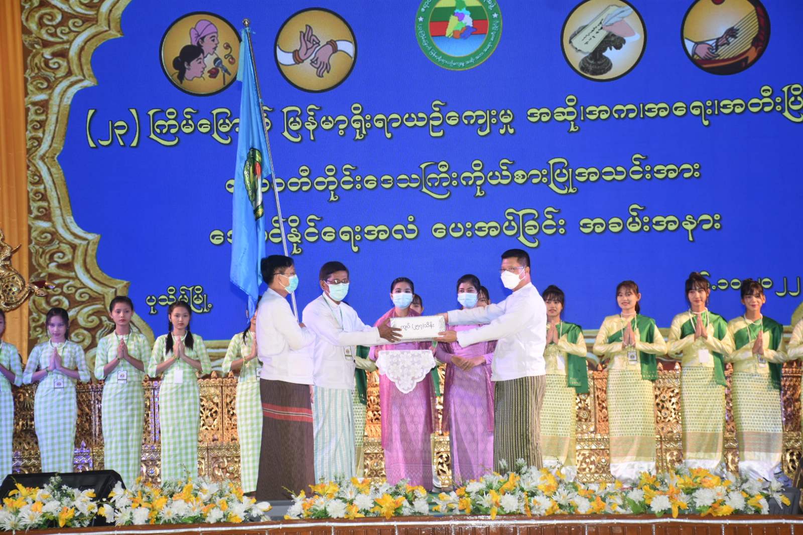 (၂၃)ကြိမ်မြောက်မြန်မာ့ရိုးရာယဉ်ကျေးမှု အဆို၊အက၊အရေး၊အတီး ဗဟိုအဆင့်ပြိုင်ပွဲဝင် ဧရာဝတီတိုင်းဒေသကြီးကိုယ်စားပြုအသင်းအား အောင်နိုင်ရေးအလံပေးအပ်ပွဲ အခမ်းအနားကို ယနေ့နေ့လည်က ပုသိမ်မြို့၊မြို့တော်ခန်းမ၌ကျင်းပပြုလုပ်ရာ တိုင်းဒေသကြီး ဝန်ကြီးချုပ်ဦးတင်မောင်ဝင်းနှင့်ဇနီး၊အစိုးရအဖွဲ့ဝင် ဝန်ကြီးများ နှင့်၎င်းတို့၏ဇနီး များ၊ တိုင်း၊ ခရိုင်၊ မြို့နယ်ဌာနဆိုင်ရာများ၊တိုင်းဒေသ ကြီးကိုယ်စားပြု ပြိုင်ပွဲဝင်များနှင့် ဖိတ်ကြားထားသူများ တက်ရောက်အားပေးခဲ့ကြသည်။