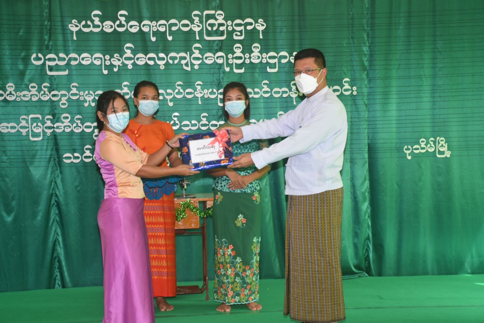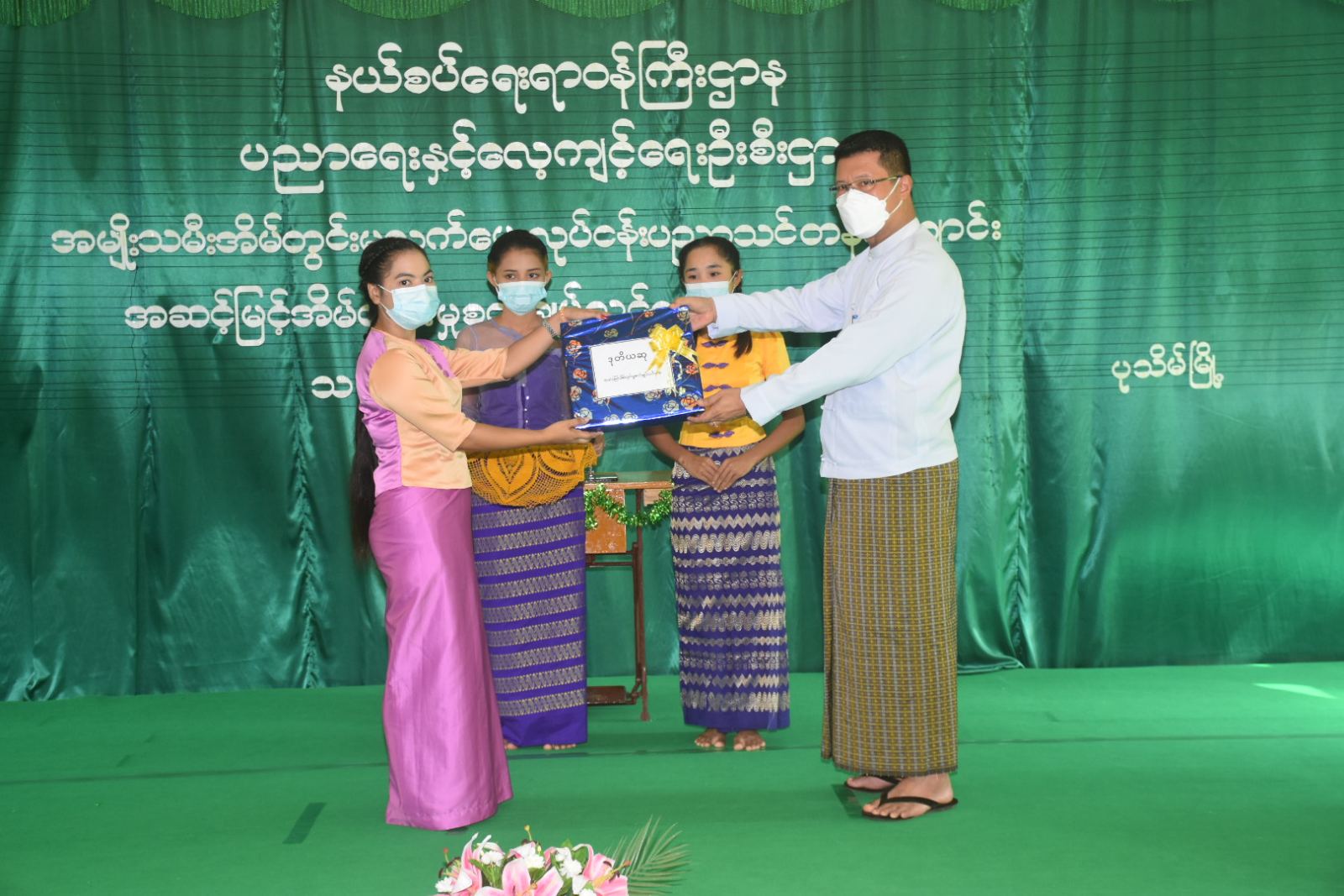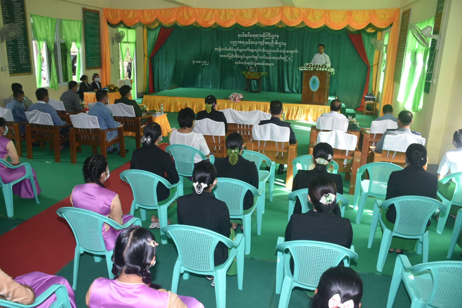 အခမ်းအနားတွင် တိုင်းဒေသကြီးဝန်ကြီးချုပ်မှ အမျိုးသမီးအိမ်တွင်းမှုသက်မွေးလုပ်ငန်းပညာသင်တန်းကျောင်း(ပုသိမ်) အနေဖြင့် အခြေခံသင်တန်း၊ အဆင့်မြင့်သင်တန်း၊ ဟိုတယ်ဝန်ဆောင်မှုဆိုင်ရာသင်တန်း၊ အဆင့်မြင့်အိမ်တွင်းမှုစက်ချုပ်သင်တန်းစသည်ဖြင့် သင်တန်းစုစုပေါင်း (၂၆) ကြိမ်ဖွင့်လှစ်ခဲ့ပြီး သင်တန်းသူ ၁၂၀၀ဦးတို့ကို အသက်မွေးဝမ်းကြောင်းပညာရပ်များသင်ကြားပေးနိုင်ခဲ့ပါကြောင်း၊ တိုင်းဒေသကြီးတွင် လူငယ်လူရွယ်များပြားပြီး ယခုကဲ့သို့ သင်တန်းများဖွင့်လှစ်နိုင်ခြင်းကြောင့် အလုပ်အကိုင်အခွင့်အလမ်းများ ပိုမိုရရှိလာပါကြောင်း၊ သင်တန်းနည်းပြများအုပ်ချုပ်သူများမှ စနစ်တကျသင်ကြားပြသမှုများကို မမေ့မလျော့ဘဲ ဆည်းပူးလေ့လာ၍ လက်တွေ့ဘဝနယ်ပယ်တွင် မိသားစုဝင်ငွေရရှိပြီး လူမှုစီးပွားဘဝဖွံ့ဖြိုးတိုးတက်စေရေး ကြိုးစားကြရမှာဖြစ်ပါကြောင်းနှင့် သင်တန်းကျောင်းရည်ရွယ်ချက်များကိုကောင်း စွာသိရှိနားလည်ပြီး မိမိတို့ဒေသဖွံံ့ဖြိုးတိုးတက်ရေးဝိုင်းဝန်းကြိုးစားကြရန် ပြောကြားခဲ့ပြီး သင်တန်းတွင်ထူးချွန်ဆုနှင့် သင်တန်းဆင်းအောင်လက်မှတ်များချီးမြှင့်ပေးခဲ့ပါသည်။