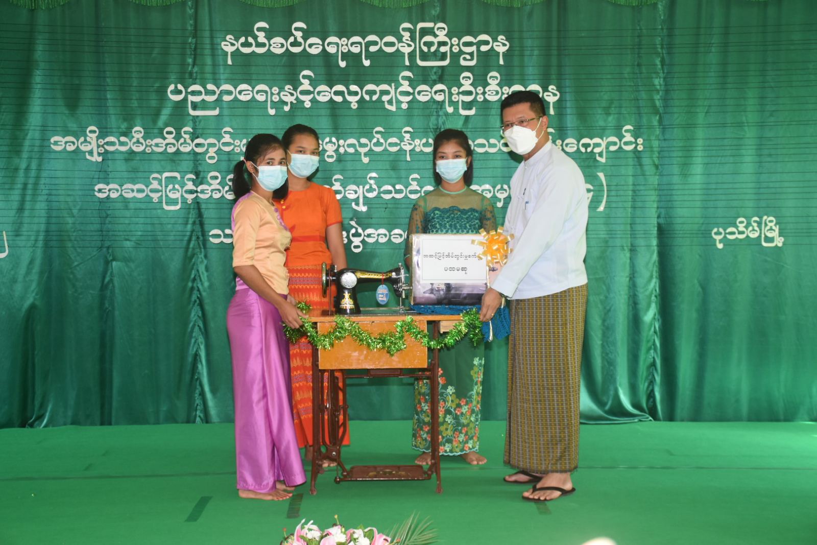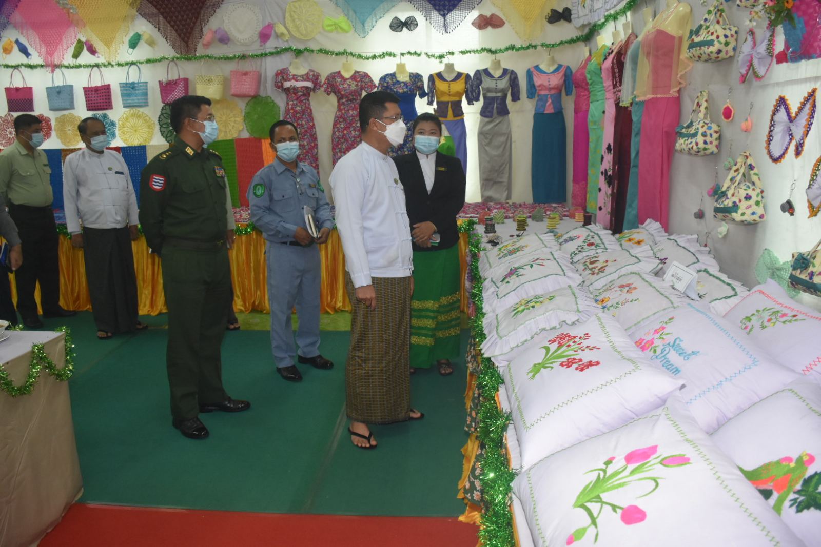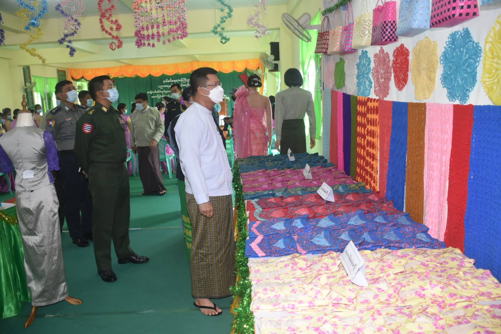 ထို့နောက် သင်တန်းသူများကိုယ်စား သင်တန်းသူတစ်ဦးမှ ကျေးဇူးတင်စကားပြန်လည်ပြောကြားခဲ့ပြီး တိုင်းဒေသကြီးဝန်ကြီးချုပ်နှင့်အဖွဲ့သည် သင်တန်းဆင်းသင်တန်းသူများချုပ်လုပ်ထားရှိသည့်လက်ရာများအား ကြည့်ရှုအားပေးခဲ့ပါသည်။ အဆင့်မြင့်အိမ်တွင်းမှုစက်ချုပ်သင်တန်းကို သင်တန်းကာလ (၂၂)ပတ်ကြာသင်ကြားပို့ချခဲ့ပြီး သင်တန်းသူ ၃၅ ဦးကို သင်တန်းဆင်းပေးနိုင်ခဲ့ကြောင်းသိရသည်။