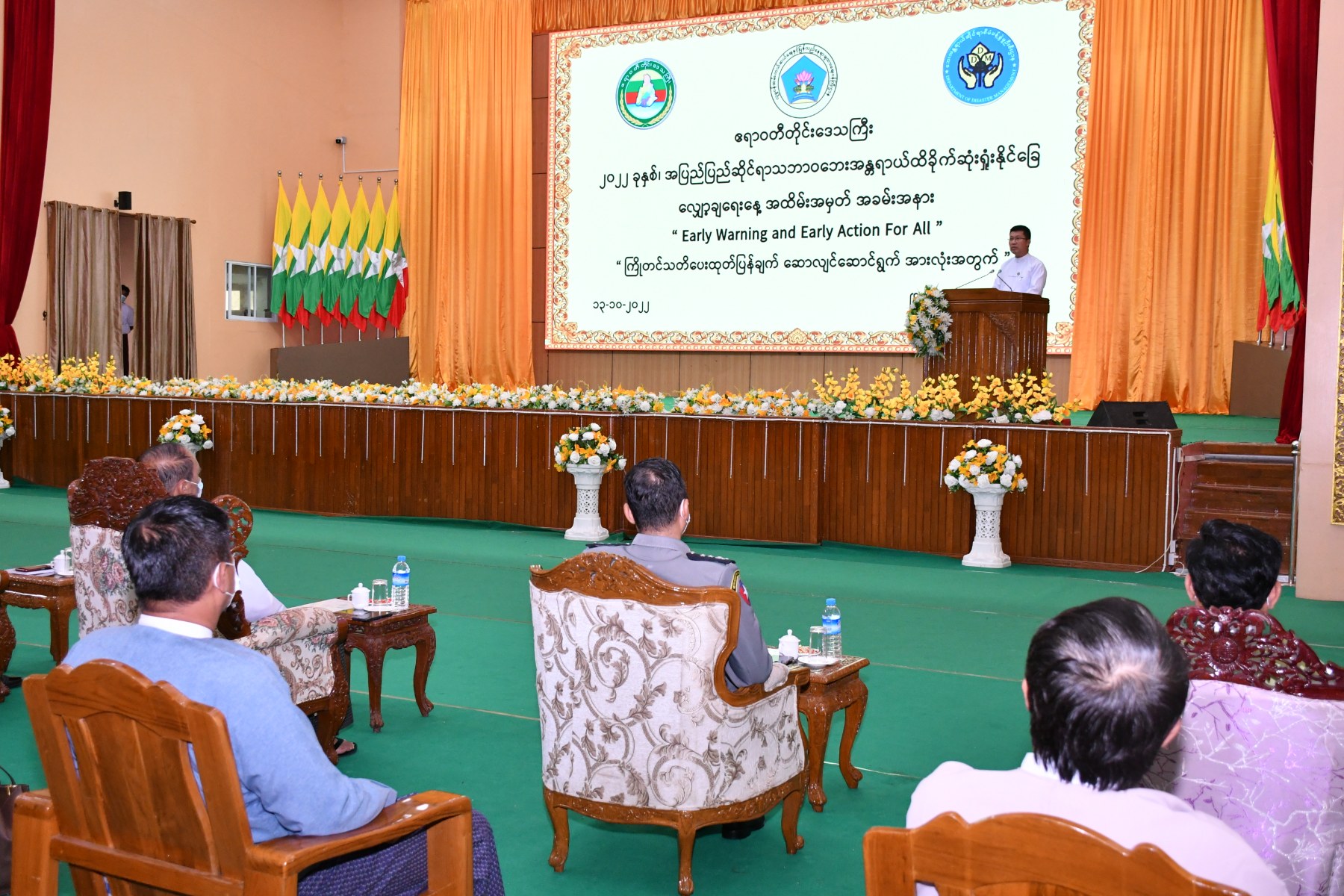 ၂၀၂၂ခုနှစ် အပြည်ပြည်ဆိုင်ရာသဘာဝဘေးအန္တရာယ်ထိခိုက်ဆုံးရှုံးနိုင်ခြေလျှော့ချရေးနေ့ အထိမ်းအမှတ် အခမ်းအနားကို ယနေ့နံနက်ပိုင်းက ပုသိမ်မြို့၊ မြို့တော်ခန်းမ၌ ကျင်းပပြုလုပ်ရာ ဧရာဝတီတိုင်းဒေသကြီးဝန်ကြီးချုပ် ဦးတင်မောင်ဝင်း၊ အစိုးရအဖွဲ့ဝင်ဝန်ကြီးများ၊ တိုင်း၊ခရိုင်၊ မြို့နယ်ဌာနဆိုင်ရာများနှင့် လူမှုရေးအသင်းအဖွဲ့များ တက်ရောက်ကြပါသည်။