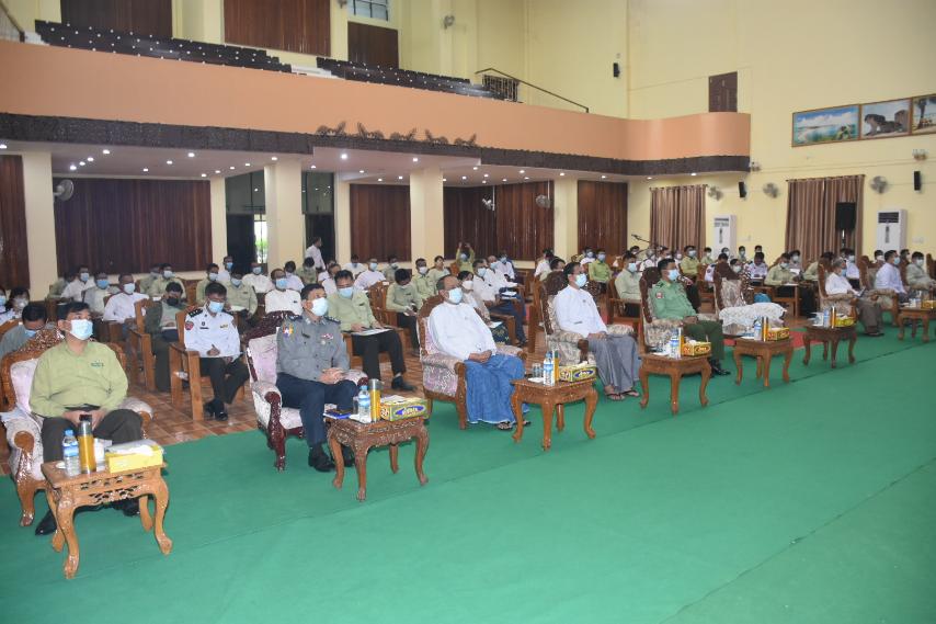 အခမ်းအနားတွင် တိုင်းဒေသကြီးဝန်ကြီးချုပ်က အခြေခံမဲဆန္ဒရှင်စာရင်းများ ပြည့်စုံမှန်ကန်ရေးအတွက် အရေးကြီး လုပ်ငန်းတစ်ခုဖြစ်သည့် မြေပြင်လူဦးရေစာရင်းတိုက်ဆိုင်စစ်ဆေးခြင်းလုပ်ငန်းများကို တိုင်းဒေသကြီးအတွင်း (၁၀-၃-၂၀၂၂) ရက်နေ့တွင် စတင်ခဲ့ပြီး မြို့နယ်(၂၆) မြို့နယ်လုံး ဆောင်ရွက်ပြီးစီးပြီဖြစ်ကြောင်း၊ စိစစ်ပြီးမဲဆန္ဒရှင် စာရင်းများကိုလည်း သက်ဆိုင်ရာ မြို့နယ်ရွေးကောက်ပွဲကော်မရှင်အဖွဲ့ခွဲများက လစဉ် Update ဖြစ်အောင်ဆောင်ရွက်လျက်ရှိကြောင်း၊ ဆန္ဒမဲပေးခွင့်ရရန်အတွက် နိုင်ငံသားစိစစ်ရေးကတ်ရှိဖို့လိုပါကြောင်း၊ သက်ဆိုင်ရာဌာနများက မဲဆန္ဒရှင်ပြည်သူများ ပုံစံ (၆၆/၆) ရရှိရေး၊ နိုင်ငံသားစိစစ်ရေးကတ်ရရှိရေးတို့ကို စိစစ်ဆောင်ရွက်ပေးကြဖို့ မှာကြားလိုပါကြောင်း၊တိုင်းဒေသကြီးမှလည်း မဲစာရင်းများတိုက်ဆိုင်စစ်ဆေးခြင်းလုပ်ငန်းများကို မှန်ကန်မြန်ဆန်စွာဆောင်ရွက်နိုင်ရေး ကြပ်မတ်ဆောင်ရွက် ခဲ့ပါကြောင်း၊ စာရင်းသွင်းသူနှင့် မှတ်တမ်းတင်သူလွဲမှားမှုမရှိစေရေးအတွက် မှန်ကန်တိကျစွာ ဆောင်ရွက်နိုင်ရေးတာဝန်ရှိသူများမှ ပေါင်းစပ်ညှိနှိုင်းချိတ်ဆက်ဆောင်ရွက် ပေးရန်နှင့် စစ်ဆေးကြပ်မတ်ရန်လည်းလိုပါကြောင်း၊ အဆင့်ဆင့်တာဝန်ယူမှု တာဝန်ခံမှုဖြင့် ရွေးကောက်ပွဲ ကျင်းပတဲ့နေ့မှာ လိုအပ်ချက်မရှိအောင် အဆင်ပြေအောင် အလေးထားဆောင်ရွက်ကြဖို့မှာကြားလိုကြောင်း၊ ယခုဆောင်ရွက်လျက်ရှိတဲ့ မဲစာရင်းများပြည့်စုံမှန်ကန်စေရေးစိစစ်ခြင်းနှင့် မဲရုံများလျာထားသတ်မှတ်ခြင်းကိစ္စရပ်များတွင် တာဝန်ရှိကော်မရှင် အဖွဲ့ခွဲအဆင့်ဆင့်က တာဝန်ရှိသူများ၊ လူဝင်မှုကြီးကြပ်ရေးနှင့်ပြည်သူ့အင်အားဝန်ကြီးဌာနမှ တာဝန်ရှိသူများ၊ အထွေထွေအုပ်ချုပ်ရေးဦးစီးဌာနမှ တာဝန်ရှိသူများက ဝိုင်းဝန်းပူးပေါင်းဆောင်ရွက်ကြဖို့နှင့်အခက်အခဲရှိပါက တိုင်းဒေသကြီးအစိုးရအဖွဲ့ထံ အချိန်နှင့်တစ်ပြေးညီတင်ပြကြရန် လိုကြောင်းပြောကြားသည်။