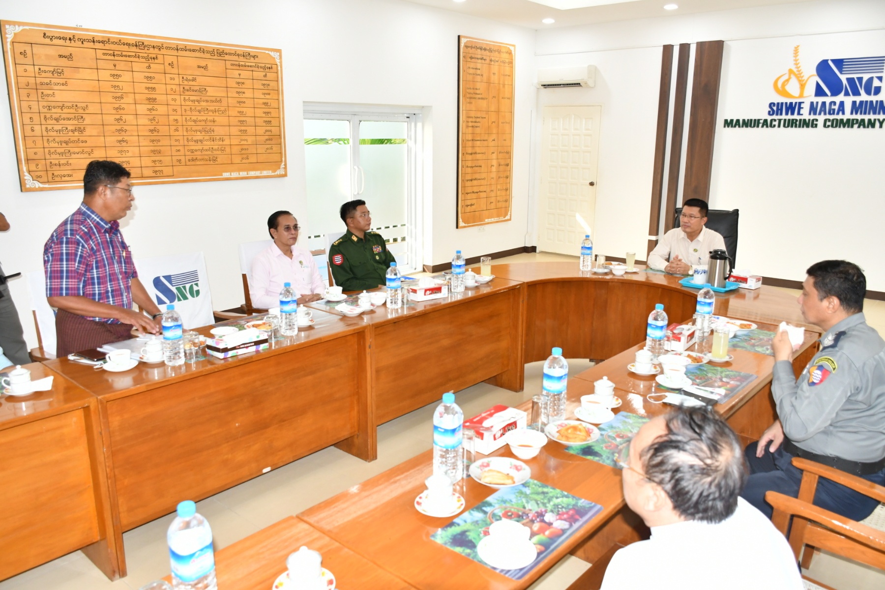 ထို့နောက် ရွှေနဂါးမင်း Manufacturing Co.Ltd သို့သွားရောက်ခဲ့ရာ ကုမ္ပဏီမန်နေဂျာမှ မွေးမြူရေးလုပ်ငန်းများဆောင်ရွက်ထားရှိမှုနှင့်ဆက်လက်ဆောင်ရွက်မည့်လုပ်ငန်းများနှင့် လိုအပ်ချက်များရှင်းလင်းတင်ပြရာ တိုင်းဒေသကြီးဝန်ကြီးချုပ်မှ သက်ဆိုင်ရာဌာနများနှင့်ပေါင်းစပ်ဆောင်ရွက်ပေးခဲ့ပါသည်။