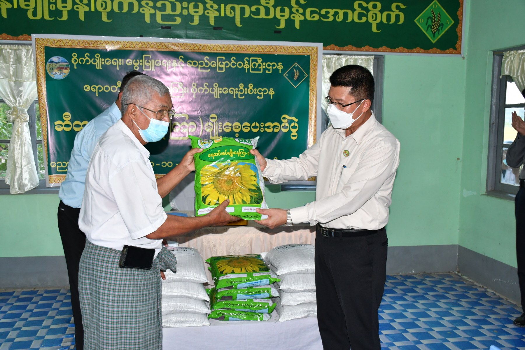 ထို့နောက် ညောင်တုန်းမြို့နယ်၊ ဆားမလောက်ကျေးရွာရှိ ဘက်စုံအဆင့်မြင့်နည်းပညာသုံးစံပြကျေးရွာ တစ်ဧက တင်း ၁၀၀ ထွက်ရှိရေး ဧက ၁၀၀ စံပြကွက်ရှိ ပိုက်ဆံလျှော်(သစ်စိမ်းမြေသြဇာ)ထည့်သွင်းစိုက်ပျိုးထားရှိသည့် ဦးကျော်ဇောလင်း၏ ဆင်းသုခ စပါး စံကွက်ရိတ်သိမ်းပွဲတက်ရောက်ခဲ့ပြီး ရိတ်သိမ်းခြွေ လှေ့စက်ဖြင့် ရိတ်သိမ်းေခြွလှေ့ခဲ့ရာ တစ်ဧကလျှင် အသားတင်စပါးတင်း၁၄၀ ထွက်ရှိမှုကို ကြည့်ရှုအားပေးခဲ့ပြီး ပိုက်ဆံလျှော်(သစ်စိမ်းမြေသြဇာ) သဘာဝမြေသြဇာအား ကျယ်ကျယ်ပြန့်ပြန့်သုံးစွဲစေရေးတောင်သူများထံအသိပညာပေးလုပ်ငန်းများ တွန်းအားပေးဆောင်ရွက်ရန်မှာကြားခဲ့ကာ ဆားမလောက်ေကျးရွာအုပ်စုနည်းပညာပြန့်ပွားရေးစင်တာတွင် ညောင်တုန်းမြို့နယ်ရှိ ကျေးရွာအုပ်စု (၅)စု၏နေကြာ စိုက်ဧက ၁၉၂၀ဧကအတွက် ရေဆင်းစပ်မျိုးနေကြာ-၁ နှင့် ဆင်းရွှေကြာ-၂ နေကြာမျိုးစေ့များ ထောက်ပံ့ပေးအပ်ခဲ့ပြီးနောက် တောင်သူများနှင့်ရင်းရင်းနှီးနှီးတွေ့ဆုံ၍ ဆီထွက်သီးနှံ(နေကြာ) ဖြစ်ထွန်းအေဘာင်မြင်စေရေးကြိုးစားဆောင်ရွက်ကြရန်မှာကြားခဲ့ကြောင်းသတင်းရရှိသည်။ တိုင်းဒေသကြီးအနေဖြင့် မိုးစပါးဧက ၃၇သိန်းကျော်စိုက်ပျိုးထားရှိပြီး ယနေ့အထိဧက (၂) သိန်းကျော်ရိတ်သိမ်းပြီးစီးပြီဖြစ်ကြောင်းသိရှိရပါသည်။
