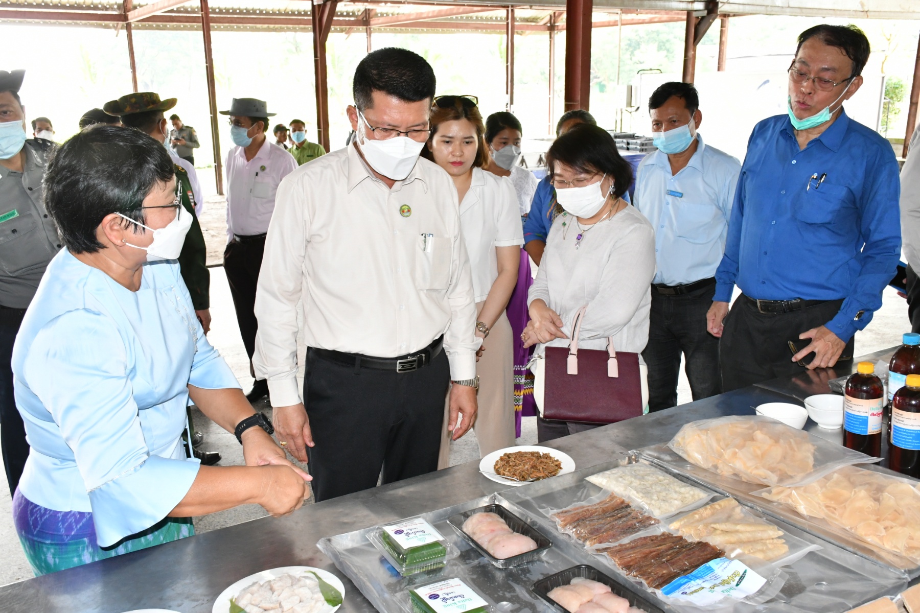 ဦးစွာ မအူပင်မြို့နယ်၊ ခတ္ထိယကျေးရွာရှိ ဝါဝါဝင်းစိုက်ပျိုးမွေးမြူရေးကုမ္ပဏီသို့သွားရောက်ခဲ့ပြီး ရှင်းလင်းဆောင်တွင် ကုမ္ပဏီမန်နေဂျာမှ အအေးခန်းစက်ရုံ၊ နို့စားနွားမွေးမြူမှု၊ နွားနို့၊ ဒိန်ချဉ်ထုတ်လုပ်မှု၊ သဘာဝမြသြဇာထုတ်မှု၊ ပိုးရည်ထုတ်လုပ်မှု၊ ငါးတန်၊ ငါးခြောက်နှင့် ငံပြာရည်ထုတ်လုပ်မှုနှင့် ငါးချဉ်၊ငါးခြစ်ထုတ်လုပ်မှုအခြေအနေများရှင်းလင်းတင်ပြခဲ့ပြီး အအေးခန်းစက်ရုံထုတ်ကုန်များ၊ Lactobacillusပိုးမွေးမြူ၍ အကျိုးပြု (Probiotic)ပိုးရည်ထုတ်လုပ်မှု၊ နို့စားနွားမွေးမြူထားရှိမှုနှင့် နွားနို့ထုတ်လုပ်မှု၊ ငါးမြစ်ချင်း၊ ငါးတန်မွေးမြူထားရှိမှုနှင့် နေဗီယာမြက်စိုက်ပျိုးထားရှိမှုများအား လှည့်လည်ကြည့်ရှုစစ်ဆေးခဲ့ပြီး ထုတ်ကုန်များပိုမိုထုတ်လုပ်၍ ပြည်တွင်းပြည်ပစျေးကွက်များသို့ ပို့ဆောင်နိုင်ရေး၊ ထုတ်ပိုးမှုစနစ်များသေသပ်စေရေးမှာကြားခဲ့ပါသည်။