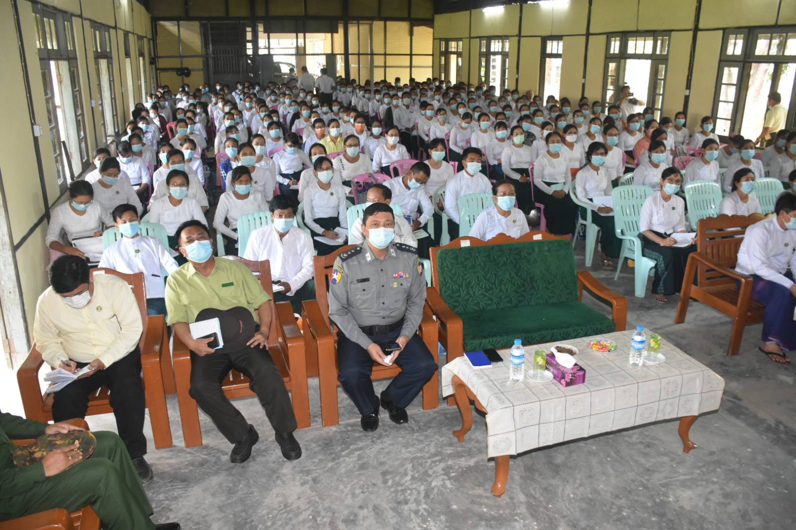 လိုအပ်သည်များဖြည်းဆည်းဆောင်ရွက်ပေးလျက်ရှိရာ ကျောင်းအုပ်ကြီးများအနဖြင့် မိမိတို့ကျောင်း၏ လိုအပ်ချက်များကိုလည်း တစ်ပါတည်းတင်ပြပေးစေလိုကြောင်းနှင့် တက္ကသိုလ်စာမေးပွဲအောင်ချက်မြင့်မားစေရေး အားသွန်ခွန်စိုက်ဆောင်ရွက်ပေးကြရန်ပြောကြားခဲ့ပြီး ကျောင်းအုပ်ကြီးများနှင့် ရင်းရင်းနှီးနှီးတွေ့ဆုံခဲ့ပါသည်။ ဆက်လက်၍ ငါးသိုင်းချောင်းမြို့၊ အခြေခံပညာအထက်တန်းကျောင်းသို့သွားရောက်၍ တက္ကသိုလ်ဝင်တန်းအောင်ချက်မြင့်မားရေးအတွက် ပြင်ပဖြေဆိုကြမည့် ကျောင်းသားကျောင်းသူများနှင့်တွေ့ဆုံအားပေးစကားများပြောကြားခဲ့ပြီး ကျောင်းသုံးဗလာစာအုပ်များ၊စာရေးကိရိယာများထောက်ပံ့ပေးအပ်ခဲ့ပါသည်။